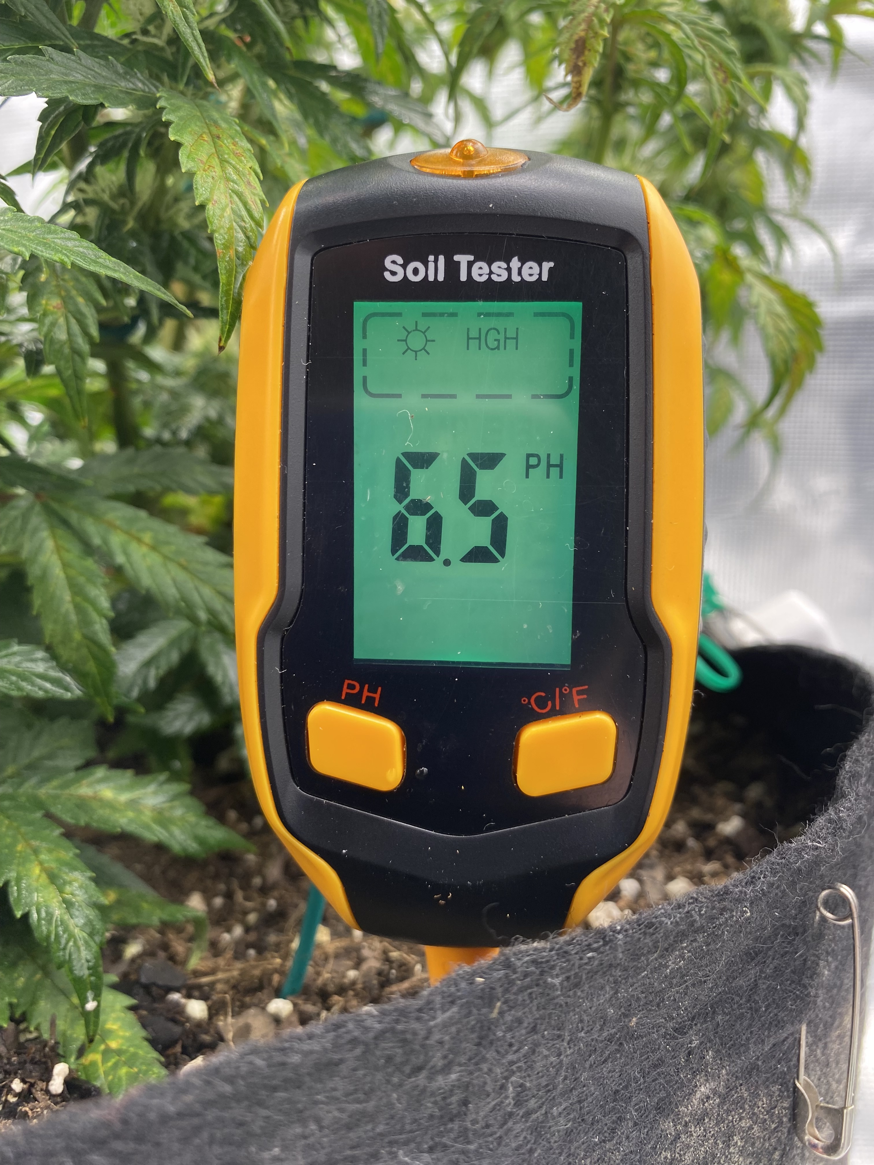 When I put the Ph meter in the soil I’m still getting 4&5 readings in the very bottom so the nutes are still high I believe. I’ve only been watering since I did the flush a week and a half ago… It’s already in a 7Gal bag and I don’t have anything larger.