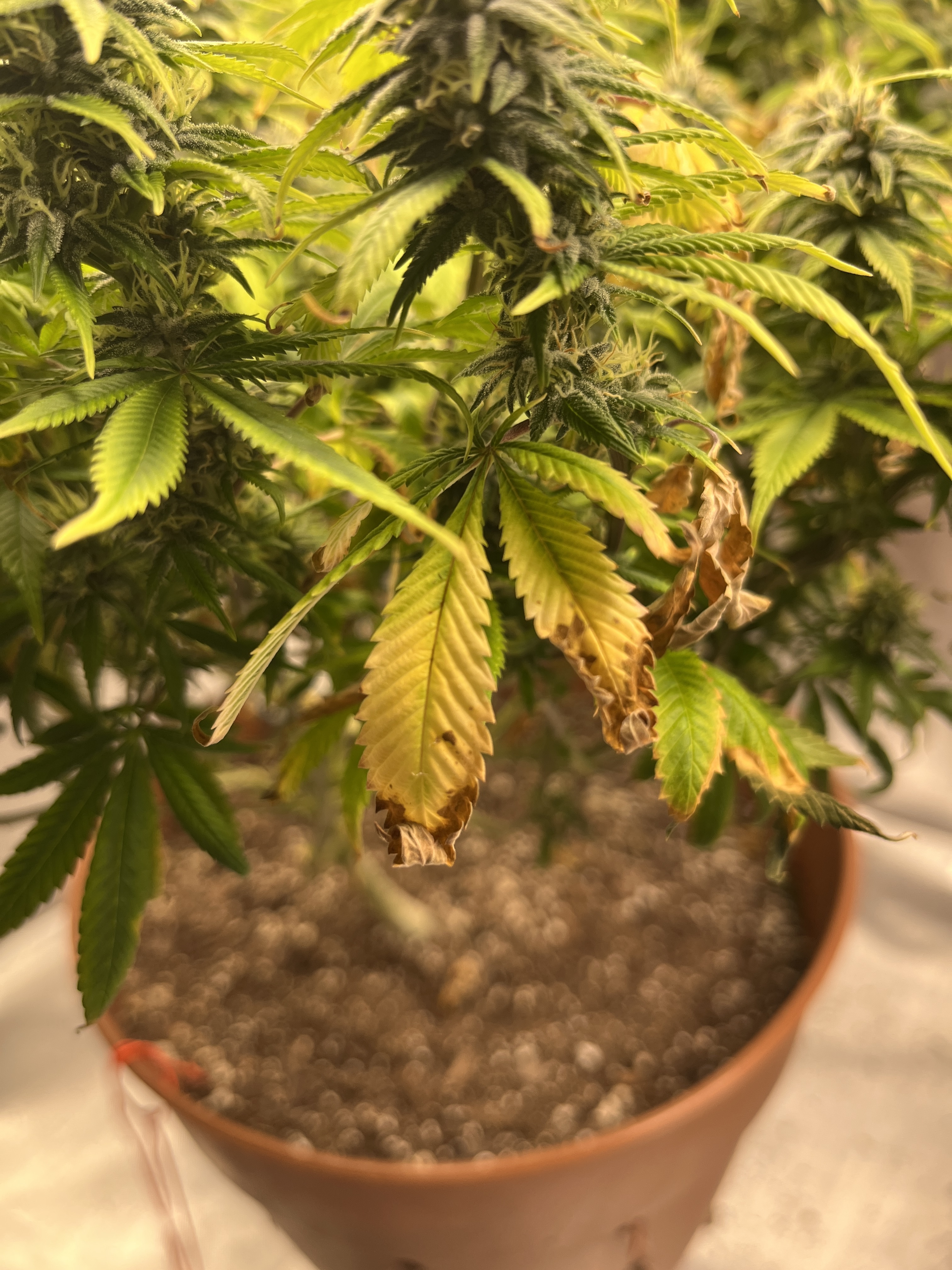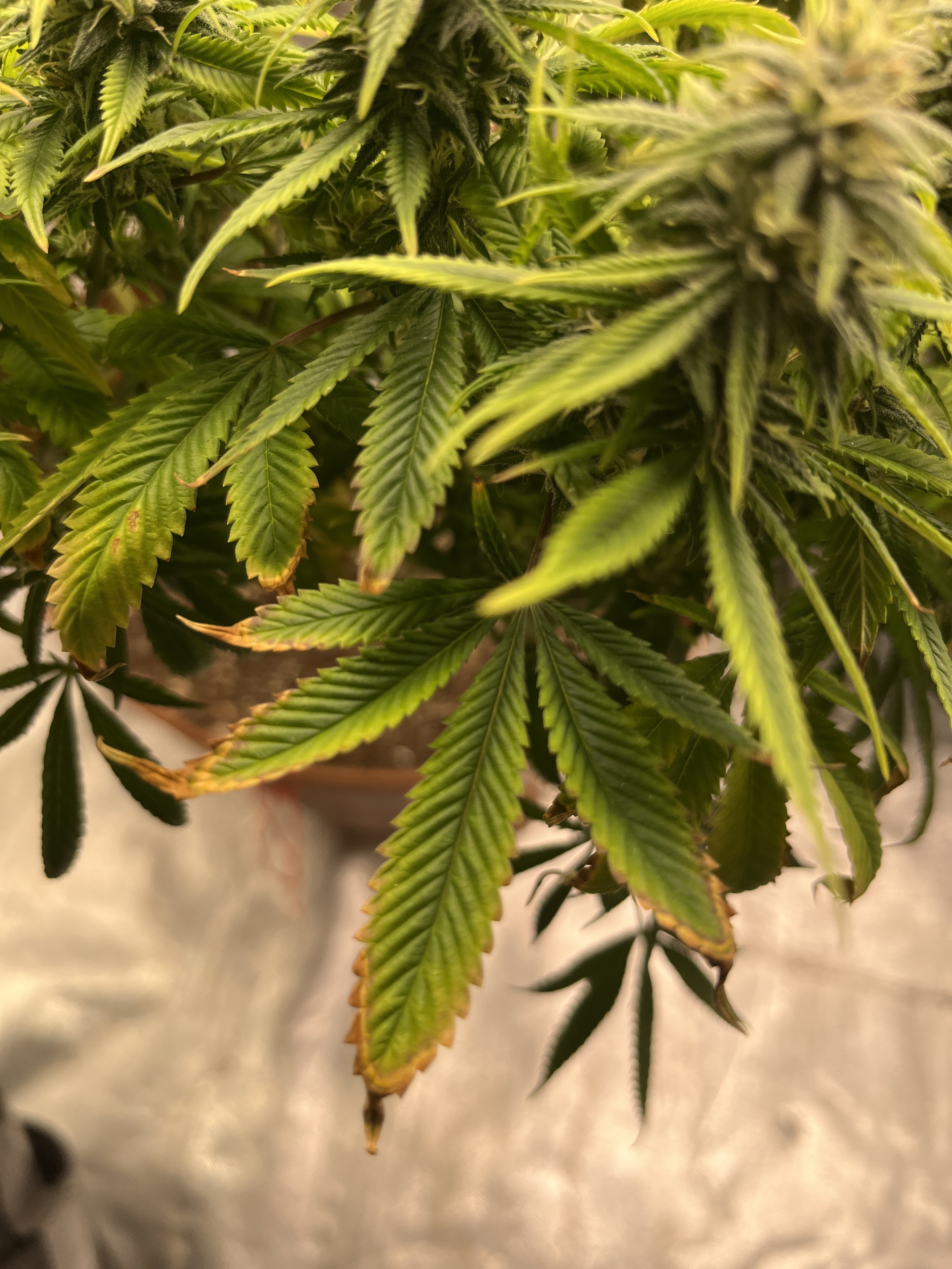It looks to me like it’s possibly a potassium deficiency. I flushed with PH’d water in case it was nutrient lockout. Waiting to give more nutrients. Wanted to see if anyone agrees or if they think it’s something else. Thanks!