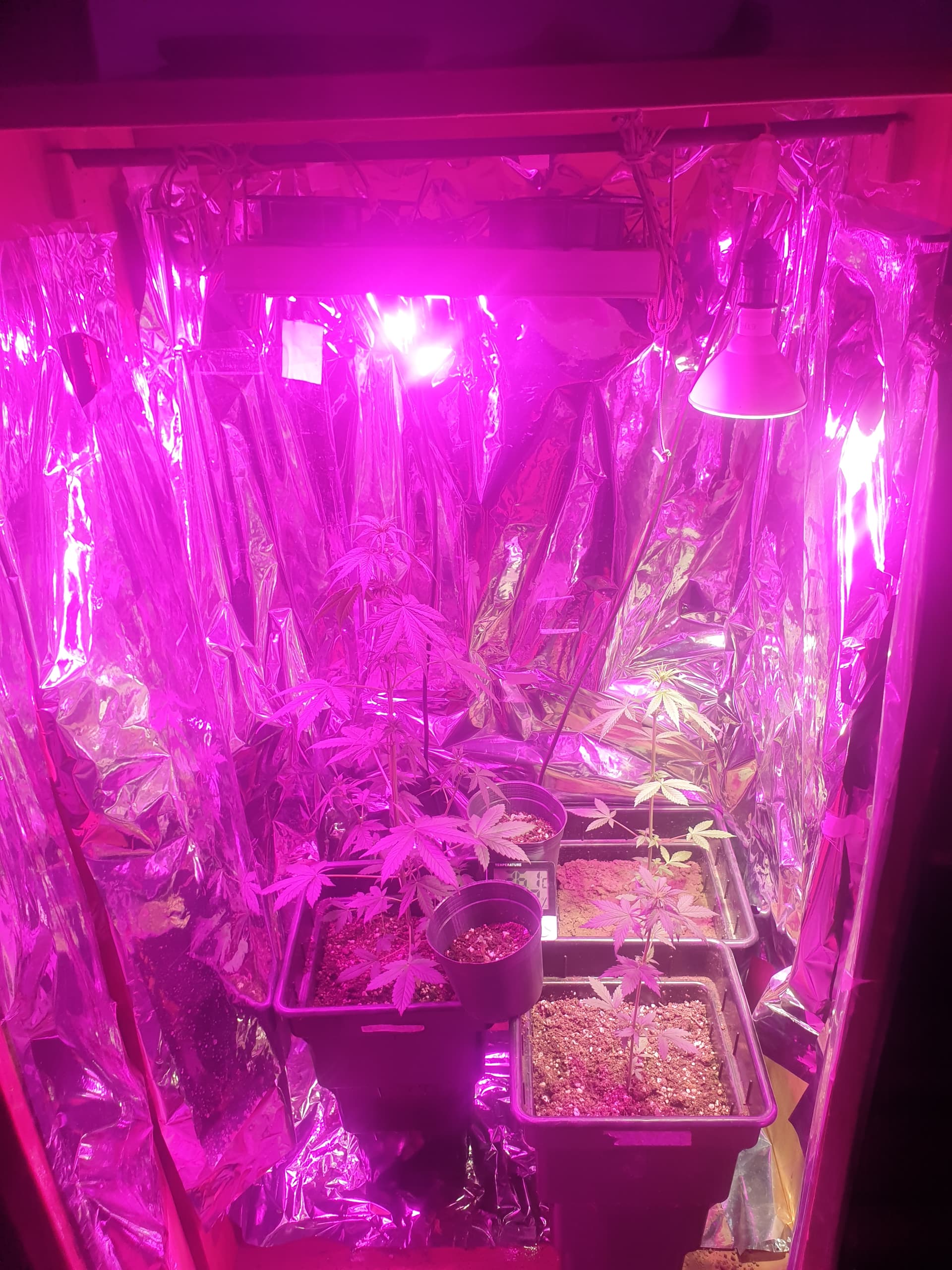 Mi nombre es mauro y recien estoy iniciando en cultivo indoor. Les voy a mostrar mi indoor 100% casero. Estoy por la 5 semana (32 dias) que la tengo. Arme un led cob con 4 chips de 50w cada uno, (es lo que alcanze) la planta mas alta tiene tierra nueva. En la otra maceta use tierqra reciclada de un cultivo anterior y el la tercer maceta use tierra normal de patio. El indoor es un ropero de 1.40 de largo. 80 de ancho y 50 de profundidad. Lo forre de papel millar y listo. La habitacion donde esta esta climatizada con aire acondicionado por las temperaturas altas que hay en santa fe.