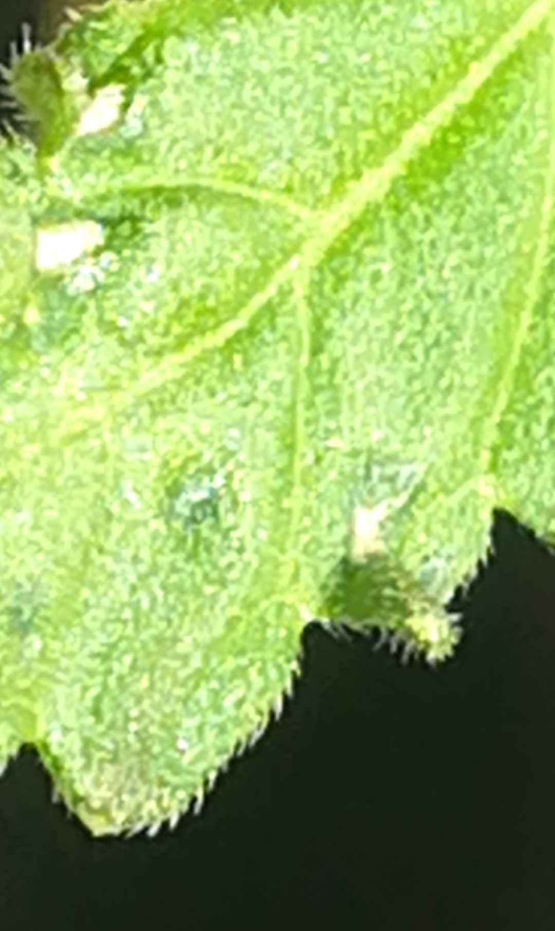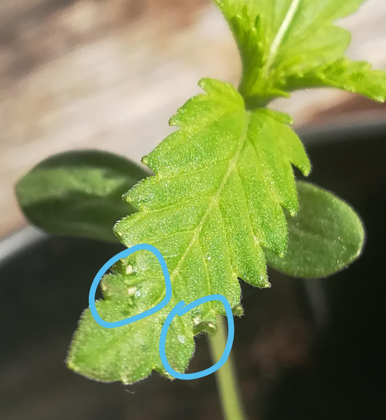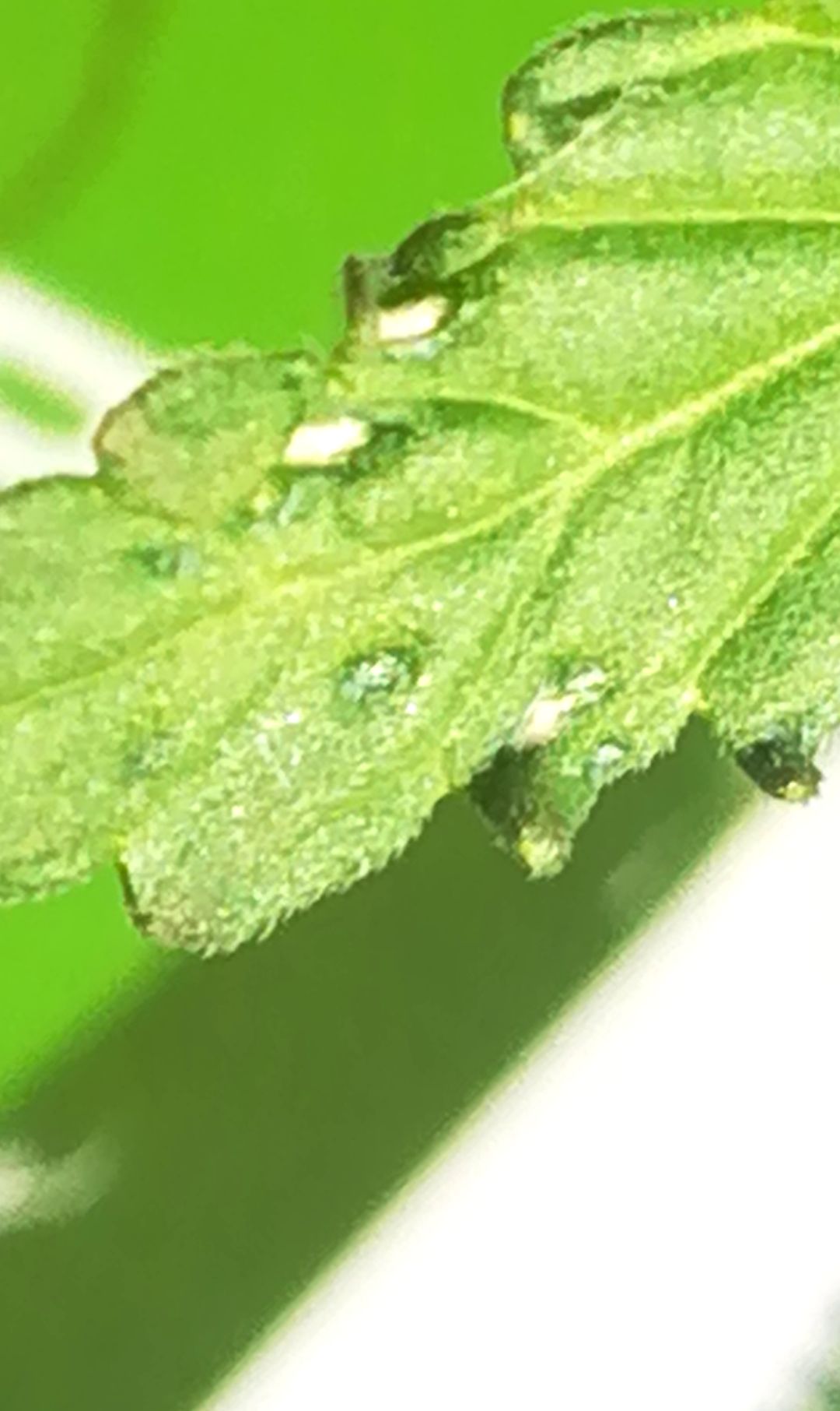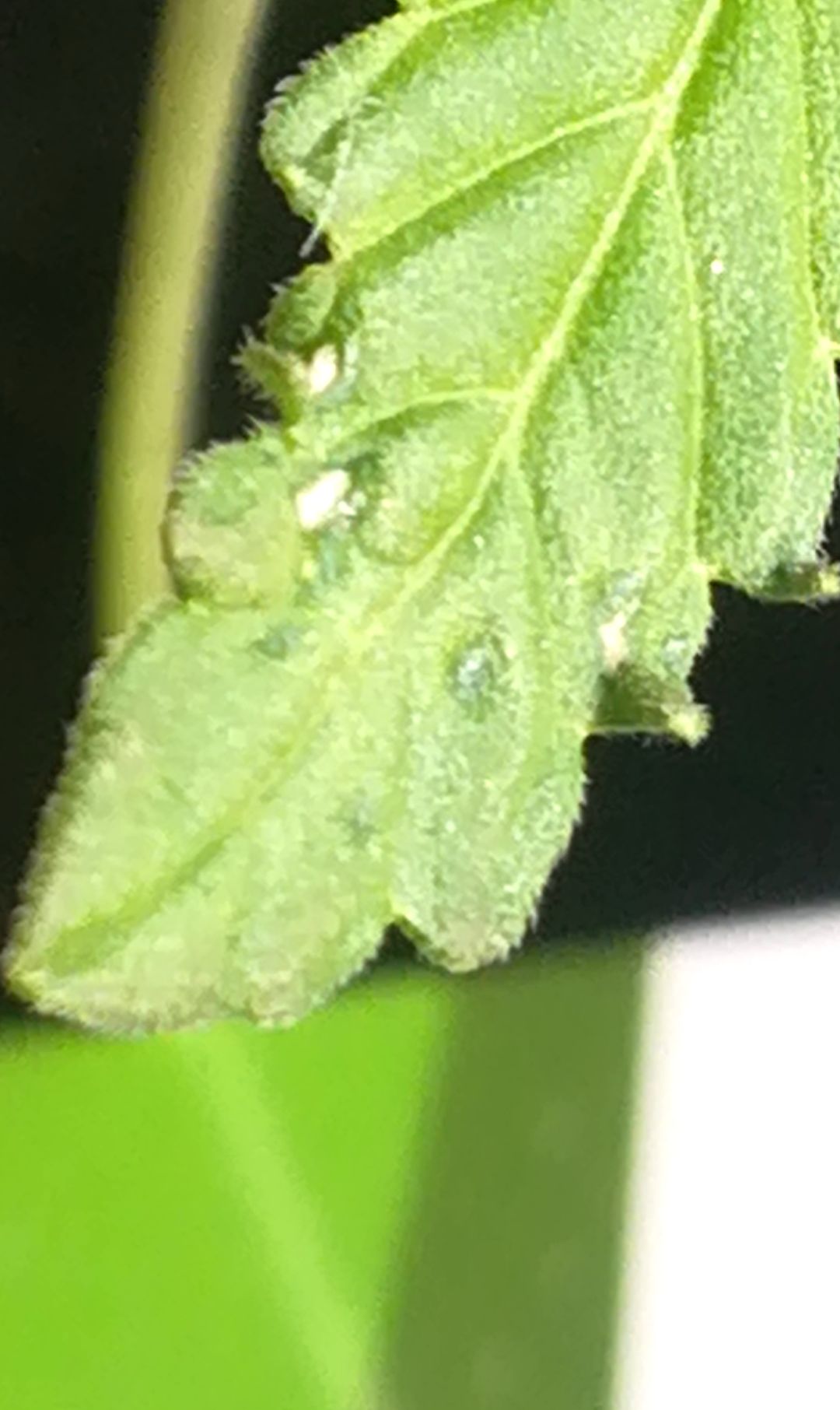 No me parece nada importante la verdad me parece más que algún bichito se a posado y a picado la hoja en ese punto y de ello esas manchitas aunque el estado general de las hojas en sí es buena y no parece que sea de ninguna paga del canabis. Aunque si tienes una lupa o microscopio de 30x100 aumentos puedes mirar en las hojas si hubiera algún bicho acampando en ellas… Pero ya te digo no me lo parece.