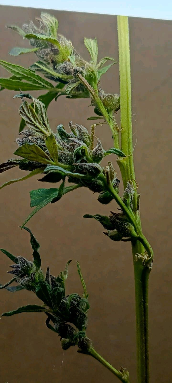 Dear grower friends from the cannabis world… it is my pleasure to introduce you to the mother of this small purple strain of my own genetics (named and baptized as purple frost Burgos) due to its high resin concentration even in a pollinated female. It was from here that I obtained my harvest of 4 seeds that were shared with me for using my tent for drying it after having to discard my entire grow… it was from this harvest that I was able to extract 35 semi-mature seeds and 5 fully mature ones, plus one in the process of growing that I will leave here…. A pleasure, grower friends, greetings and good smokes and gamma 3 missiles ![]()
