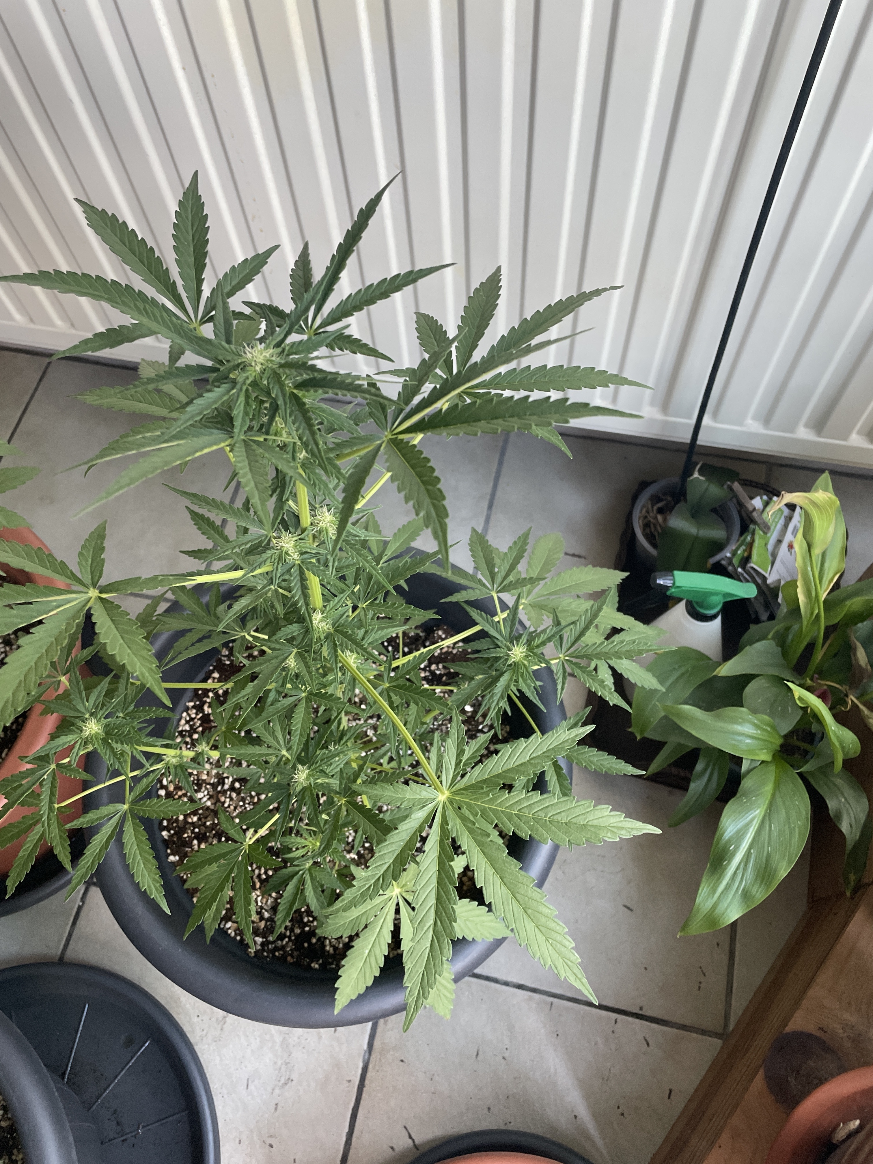 Hi @Vedermieck, you day she has about 3 or so weeks left, to me and I ain’t no pro, but I’m growing autos to and your fans don’t block your sites and with autos, you try not to take there energy sorse “fans” some autos grow different and block most sites and till I get good structure on each bud site with some small leafs on the bud then it I can not tuck them under I take them off only if blocking, but yours looks ok i would leave them for the moment,