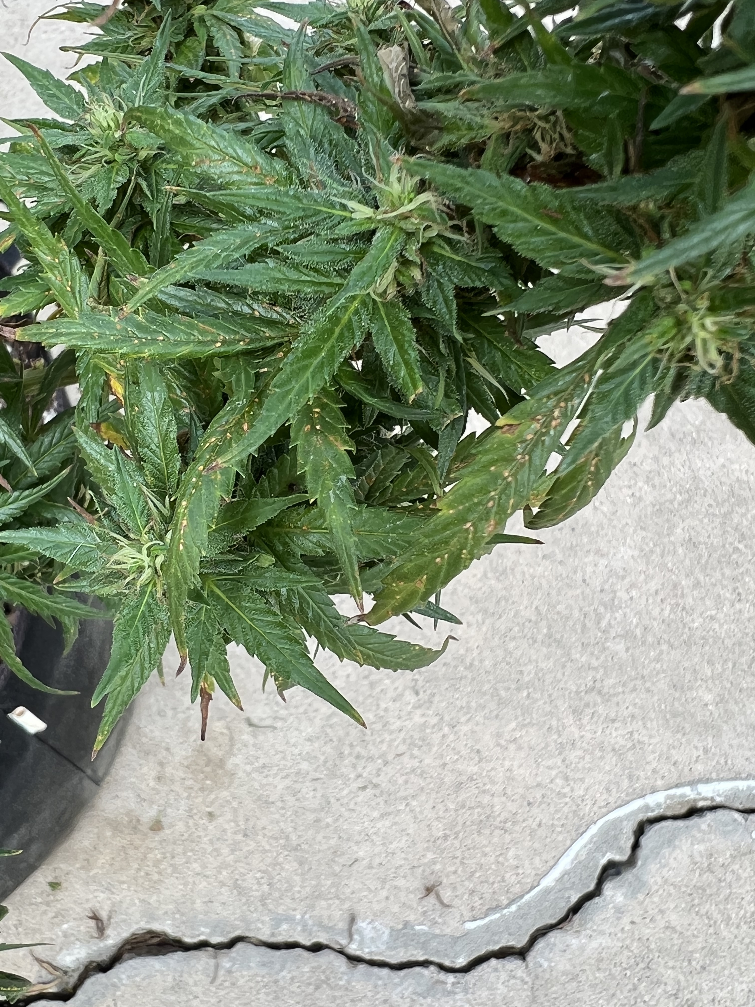Hi guys I can see the finish line and harvest is a few weeks away and one of my plants has this issue on it’s tan leaves. Basically the have rust color spots then the tips dry up and basically die. I have been trimming them off the plant and just leaving the healthy leaves and the buds. I have two questions.
