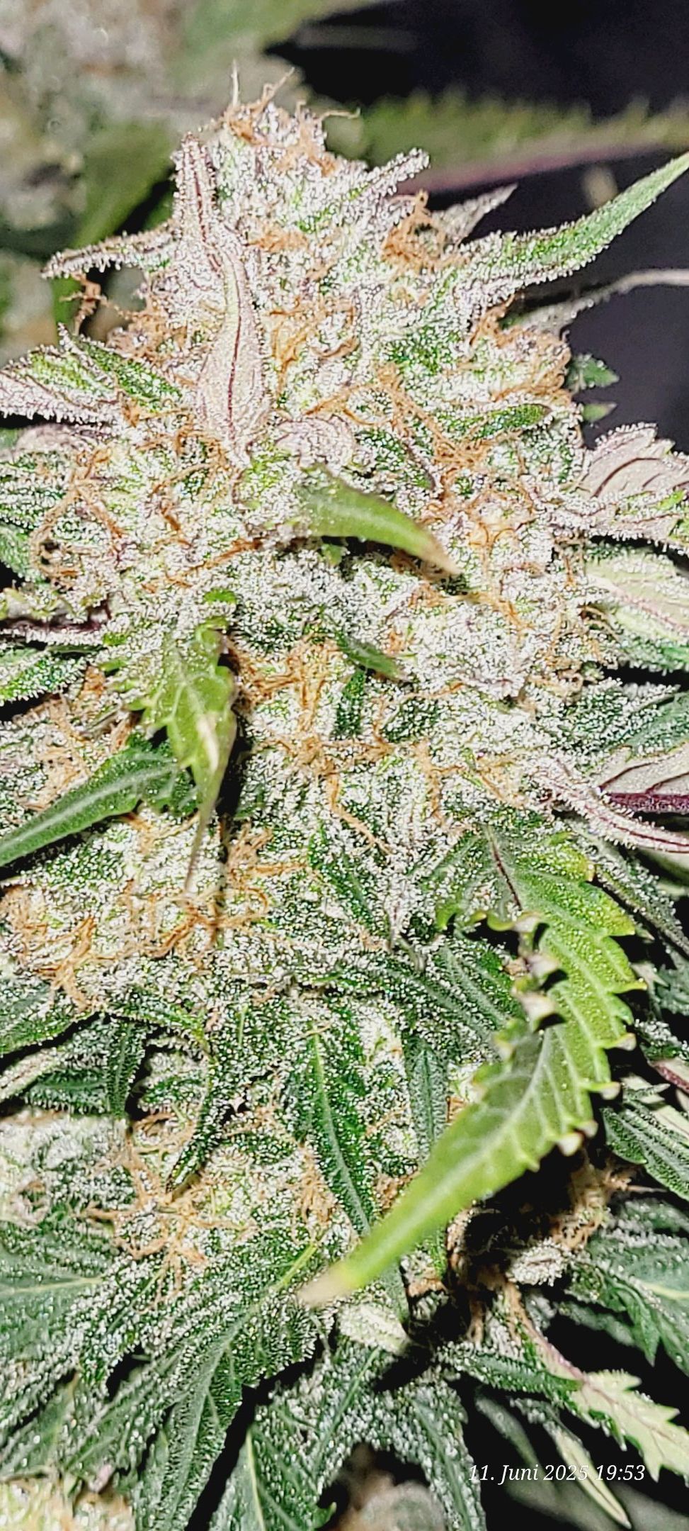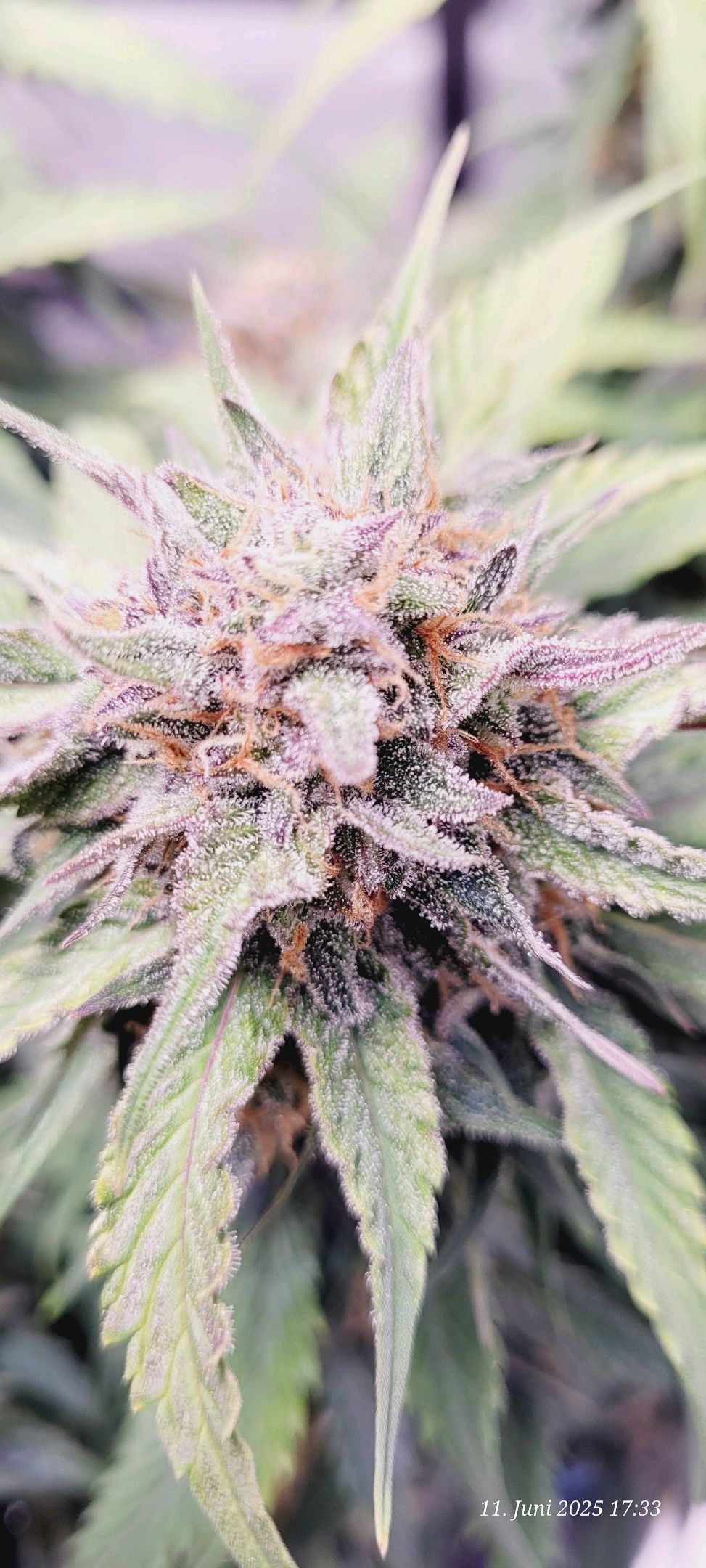 Die Bilder von ihr sind von Vorgestern und sie zeigt auch schon verdammt viel Trichome .