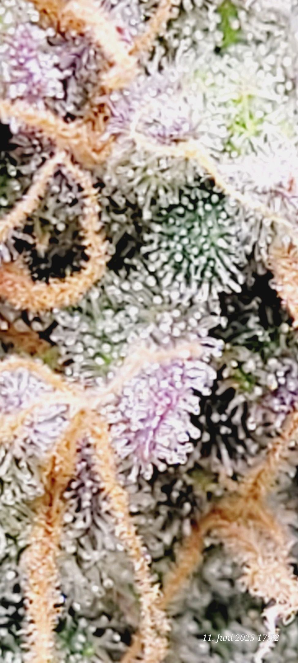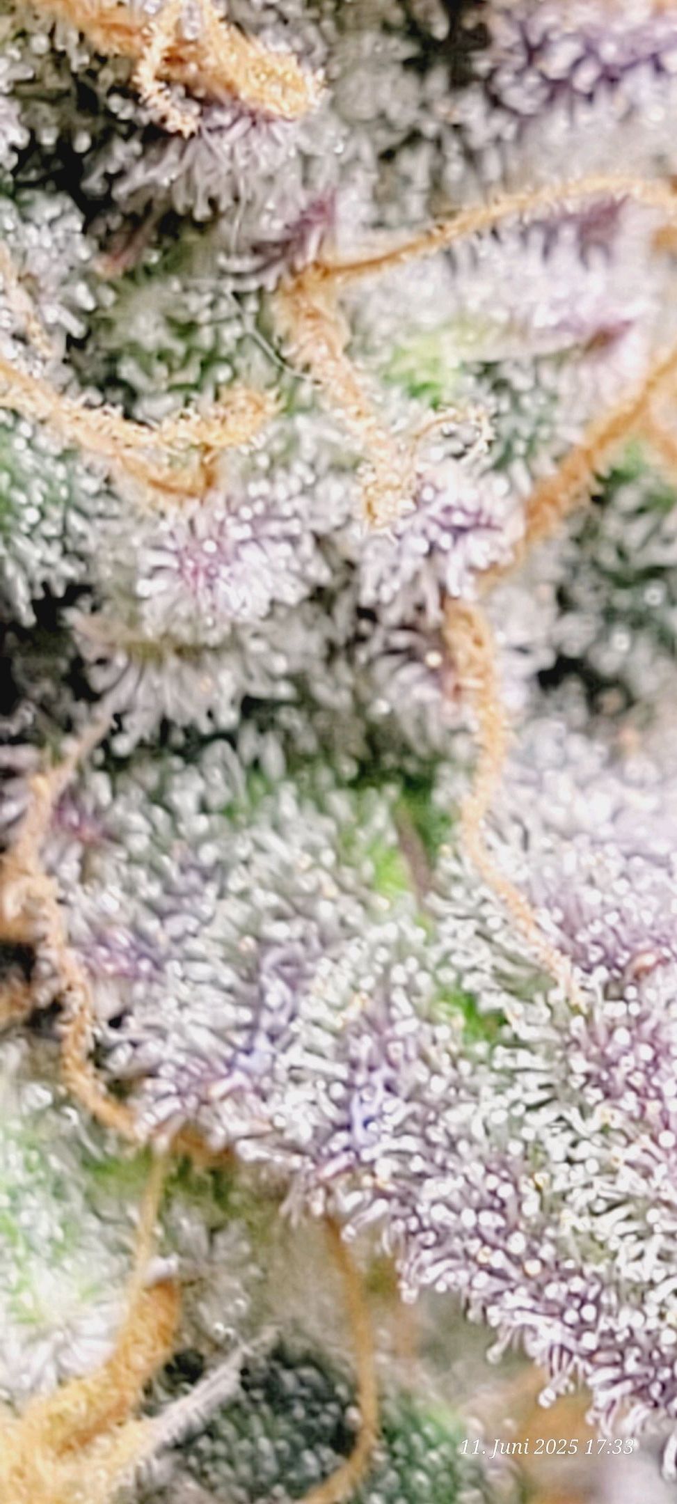 The pictures of her are from the day before yesterday, and sheâs already showing a hell of a lot of trichomes.