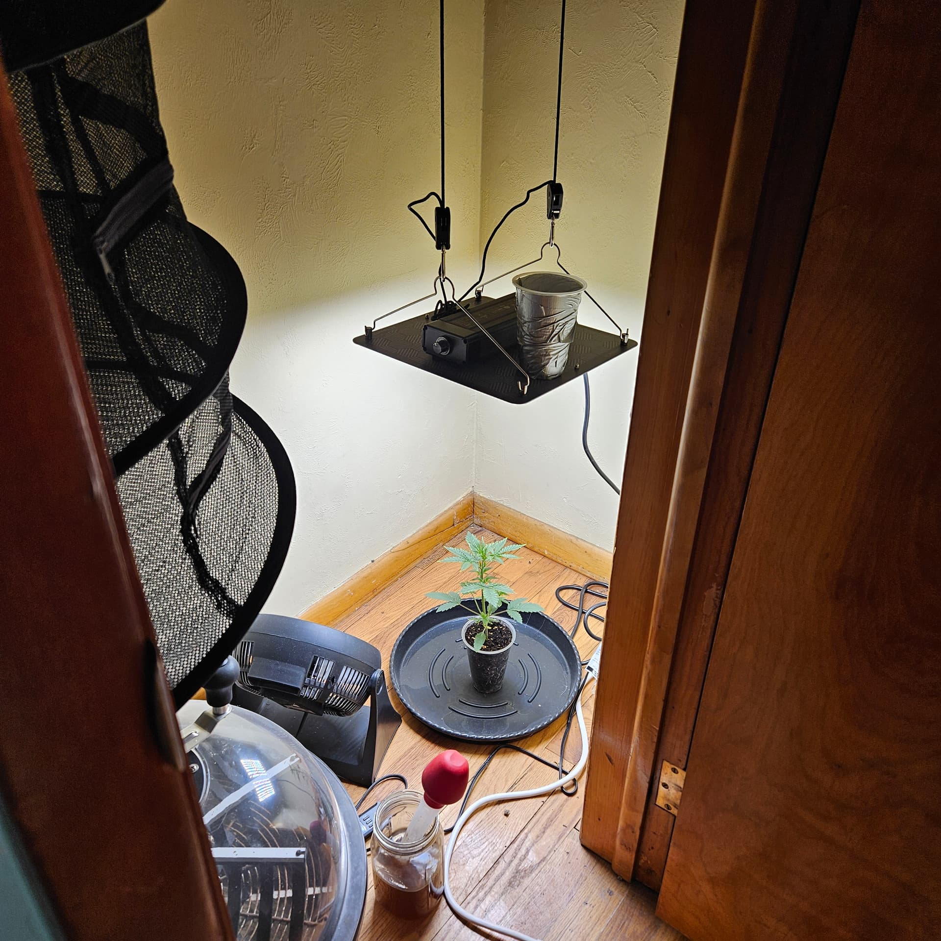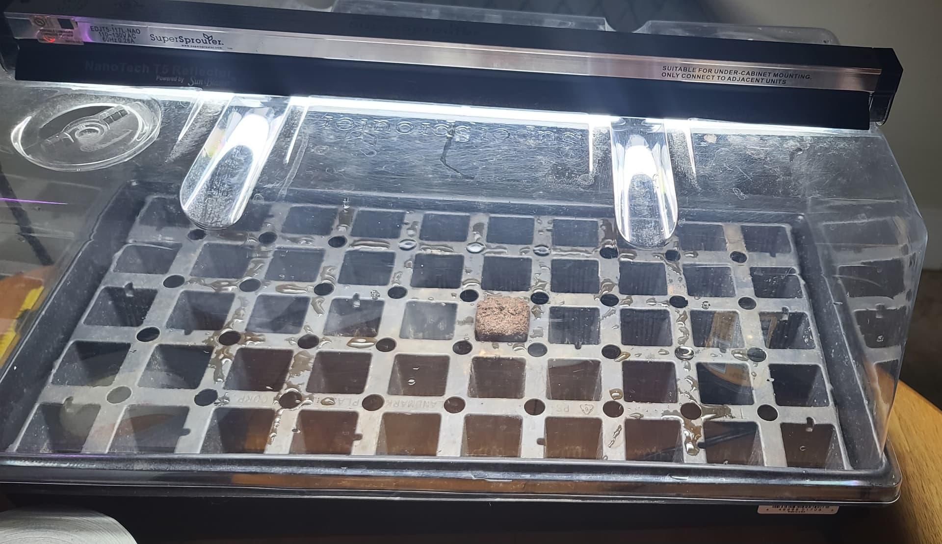 I’m using a Blue Dream photo from NukeHeads. Soaked for about 12 hours in cloning powder solution then into a rooting cube in my humidity dome