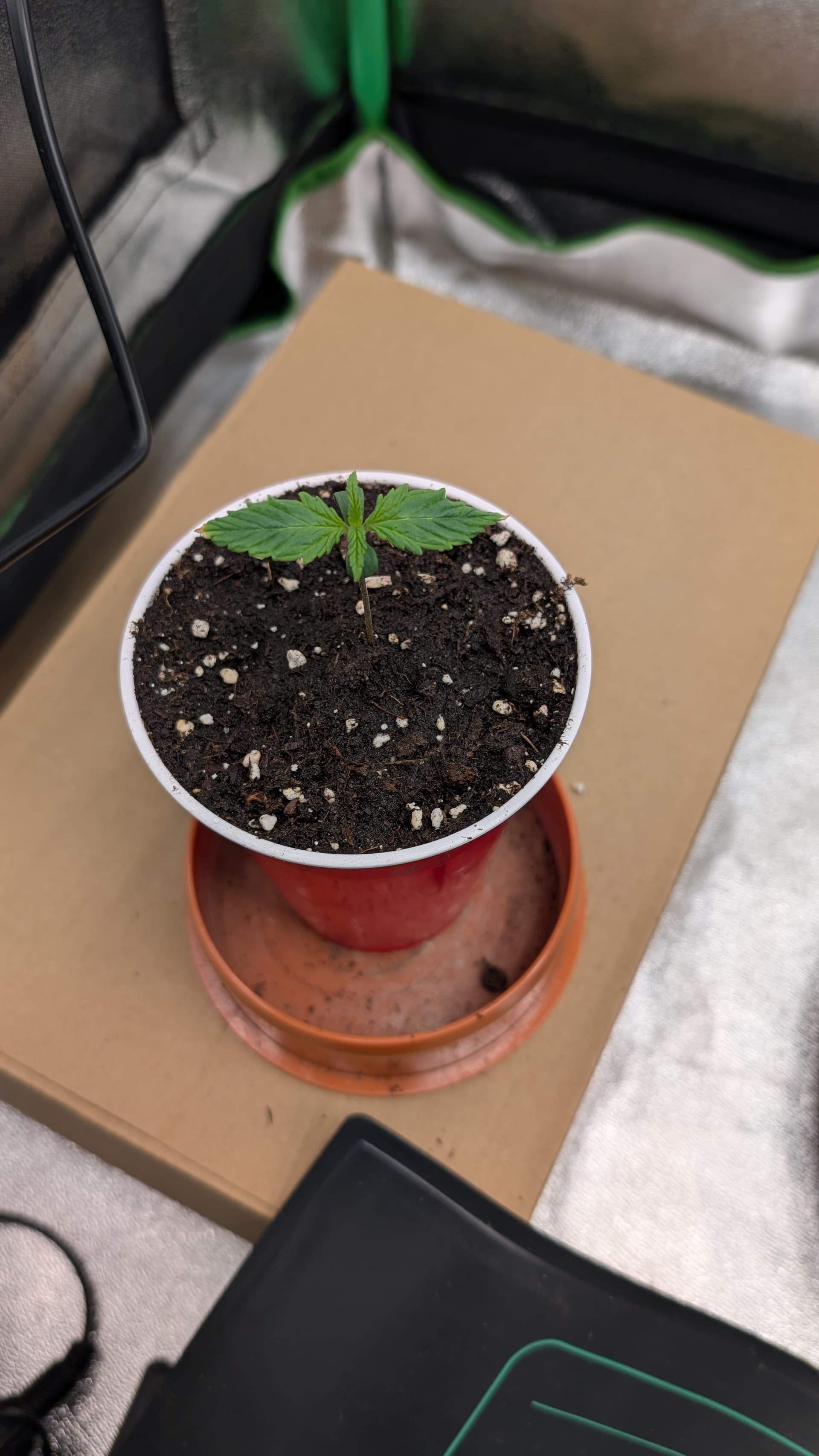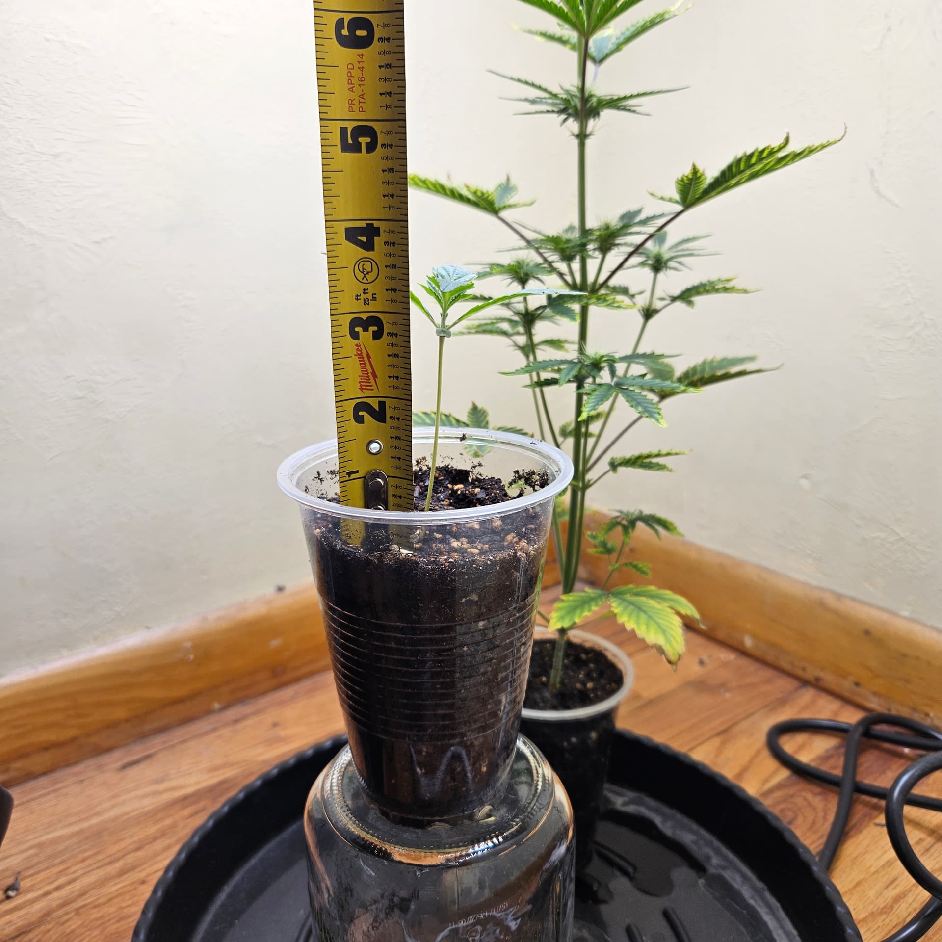 Here’s where I’m at after a super late start. She is stretching a bit, usually I would transplant to another pot and bury up to the first set of leaves. But I’m not sure for this one ![]()