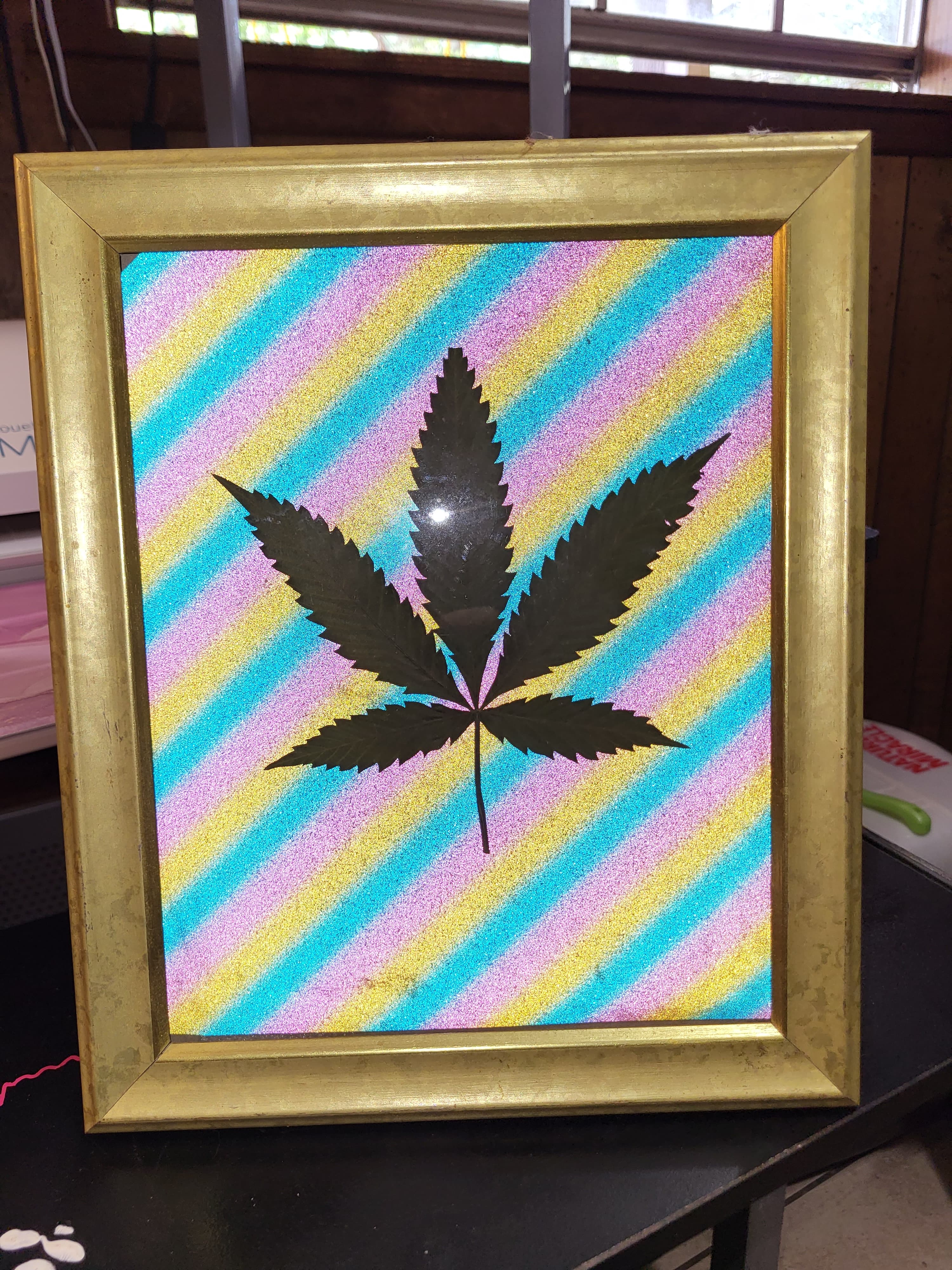 Wow mate, that is very cool! I will show my wife later tonight. She has pressed flowers and leaves and put them in frames. I never thought of doing it with one of my cannabis plant leaves.