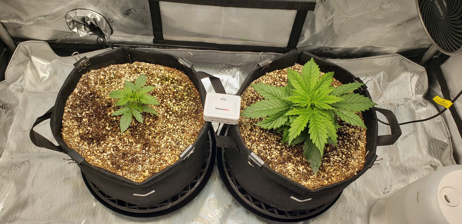 The NL is my concern, much bigger and bushier. Looks healthy to me but im wondering if it’s time to do some defoliating. The fan leaves and thier stems are huge so im leary to take too much off, but theres alot of growth starting under the top two leaves.