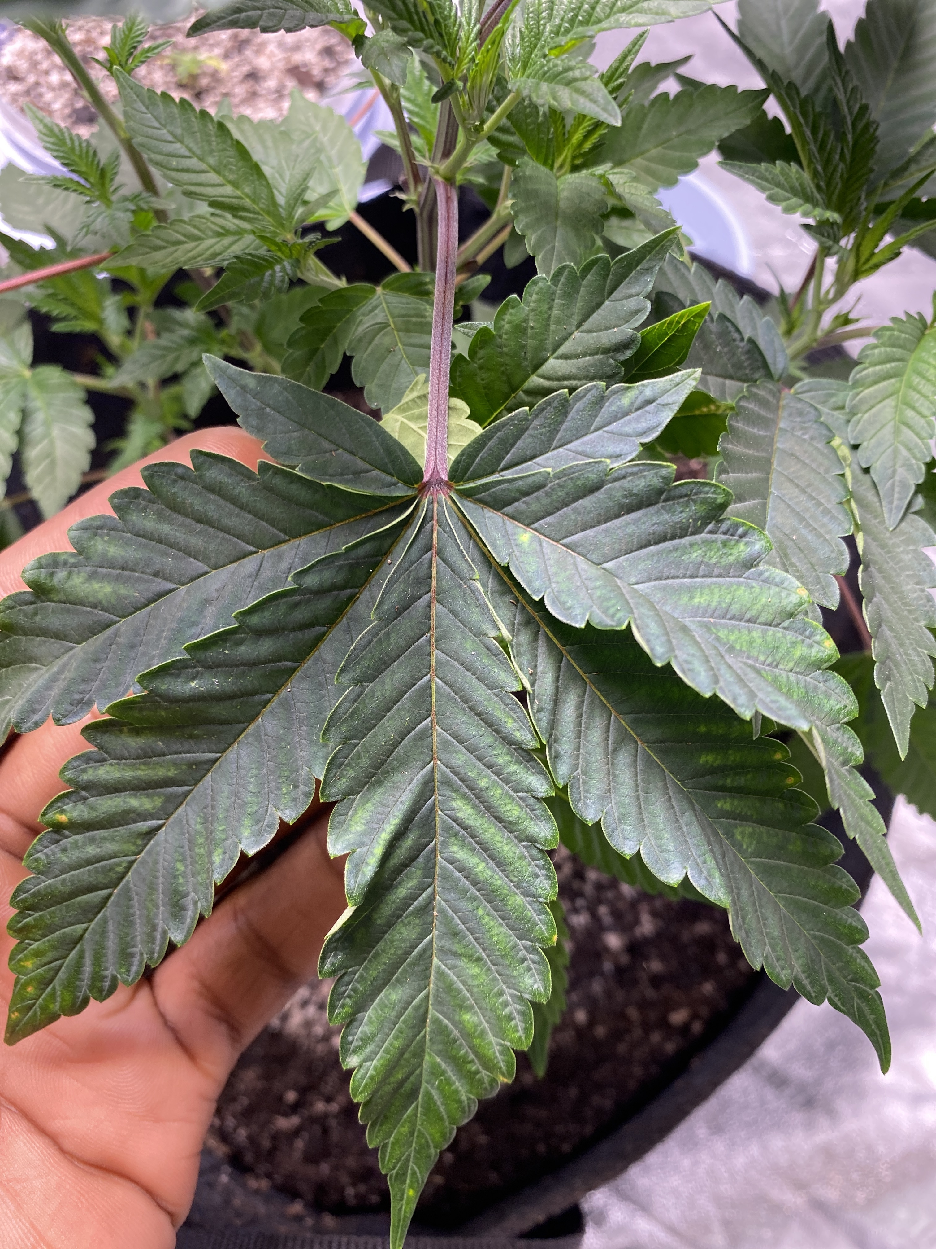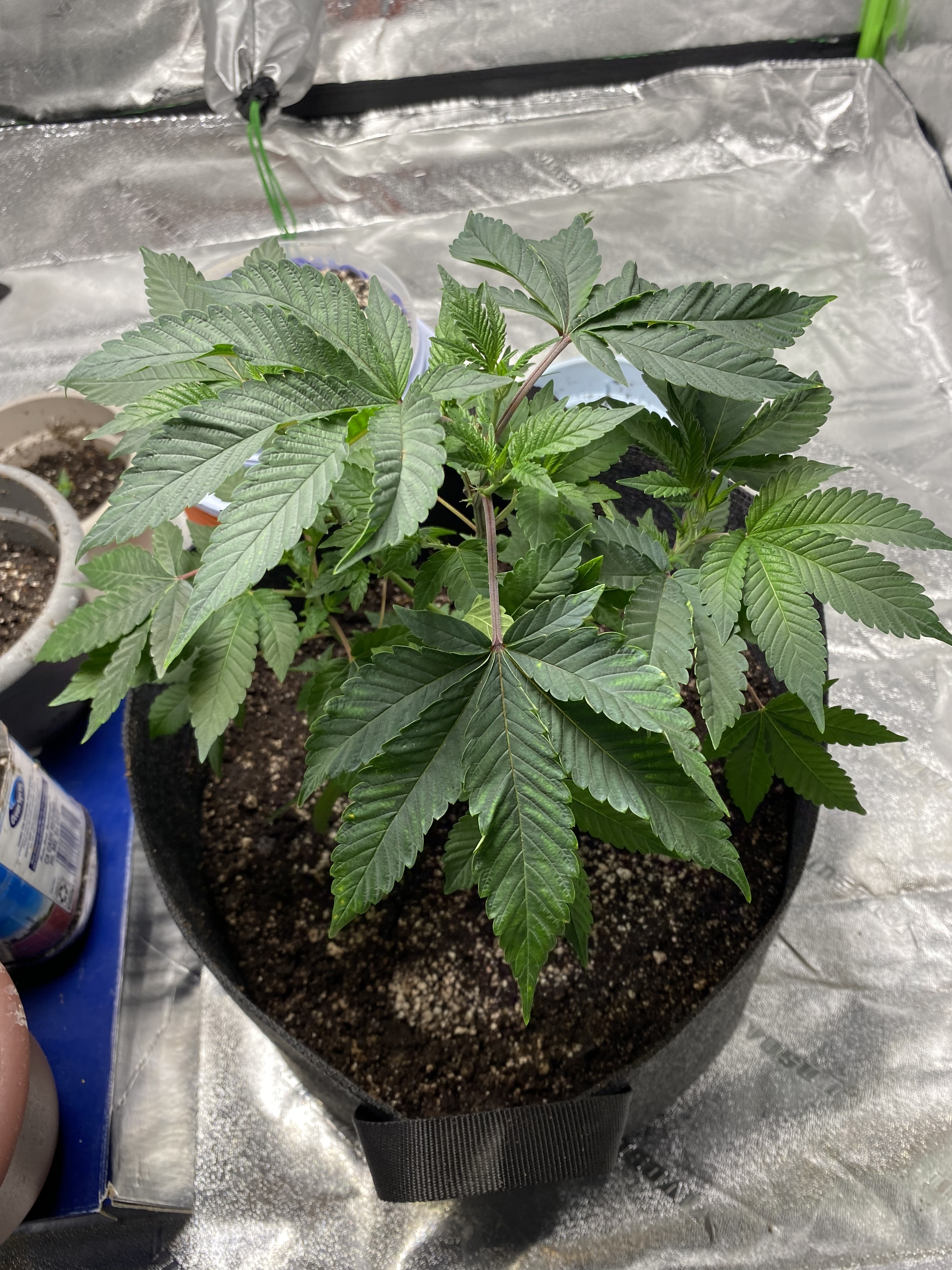 I think I added too much nutrients and or my plant was root bound and my leaves turned dark green. I just went brought some happy frog potting soil and did the final repotting. I topped it as well. It’s 13 weeks old.