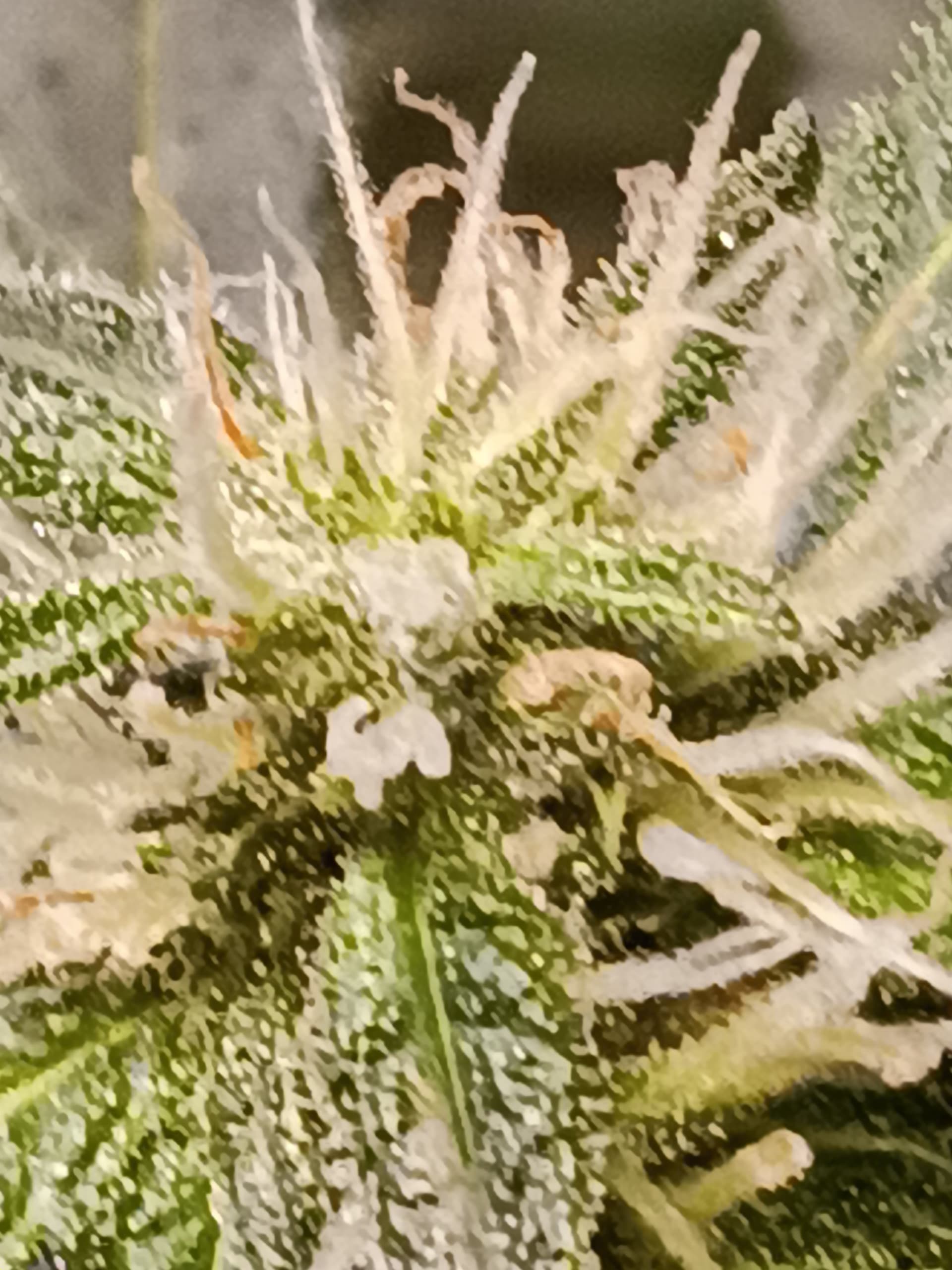 I bought a microscope and have been looking at the trichomes the still look very clear amd some milky white I read to wait until they are amber in color and if the white pistols are still pointing outwards then its isnt close at all wait until they have all curved inwards and turning brown before its ready then look at the trichomes and they should start to look amber in color. Here aee some pics of my flowers where you can clearly see the white hairs are still sticking upProcessing: 1000000137.jpg… Uploading: 1000000127.jpg… Uploading: 1000000142.jpg… Uploading: 1000000143.jpg…