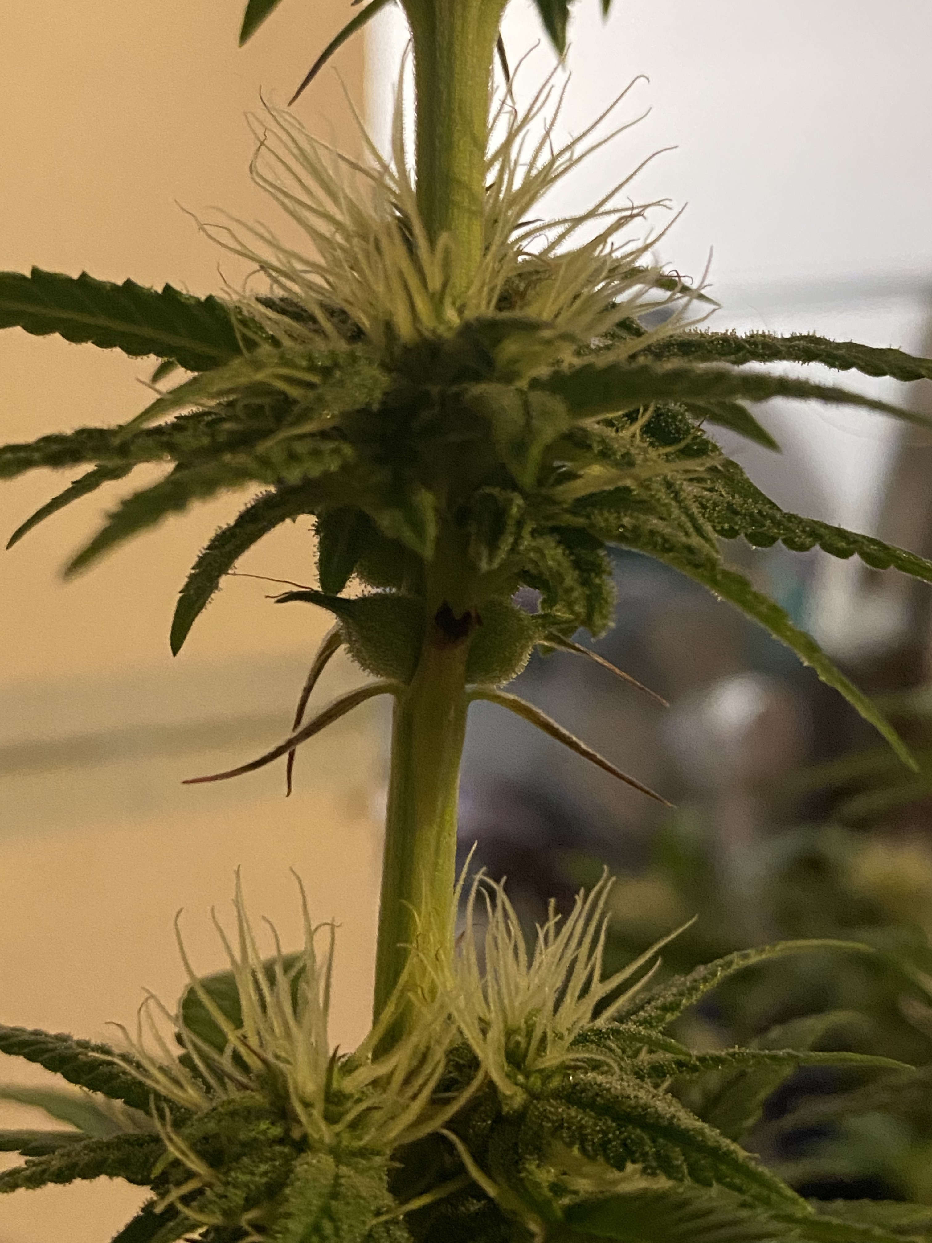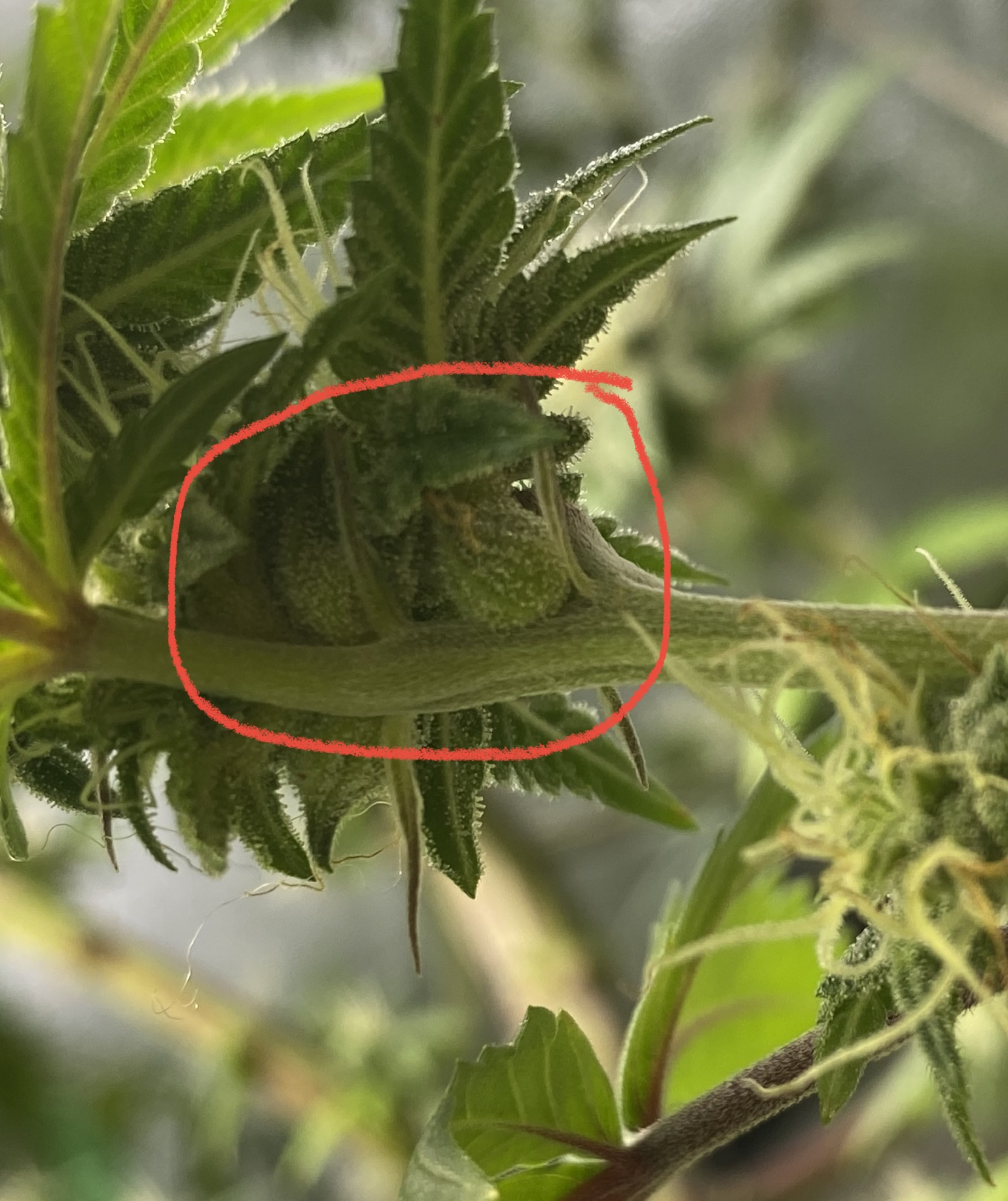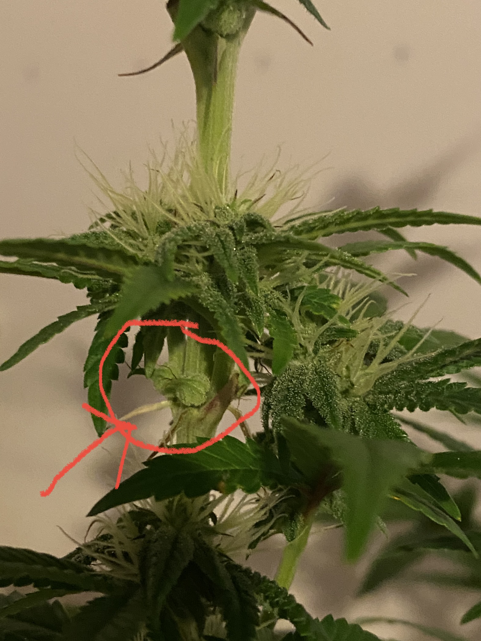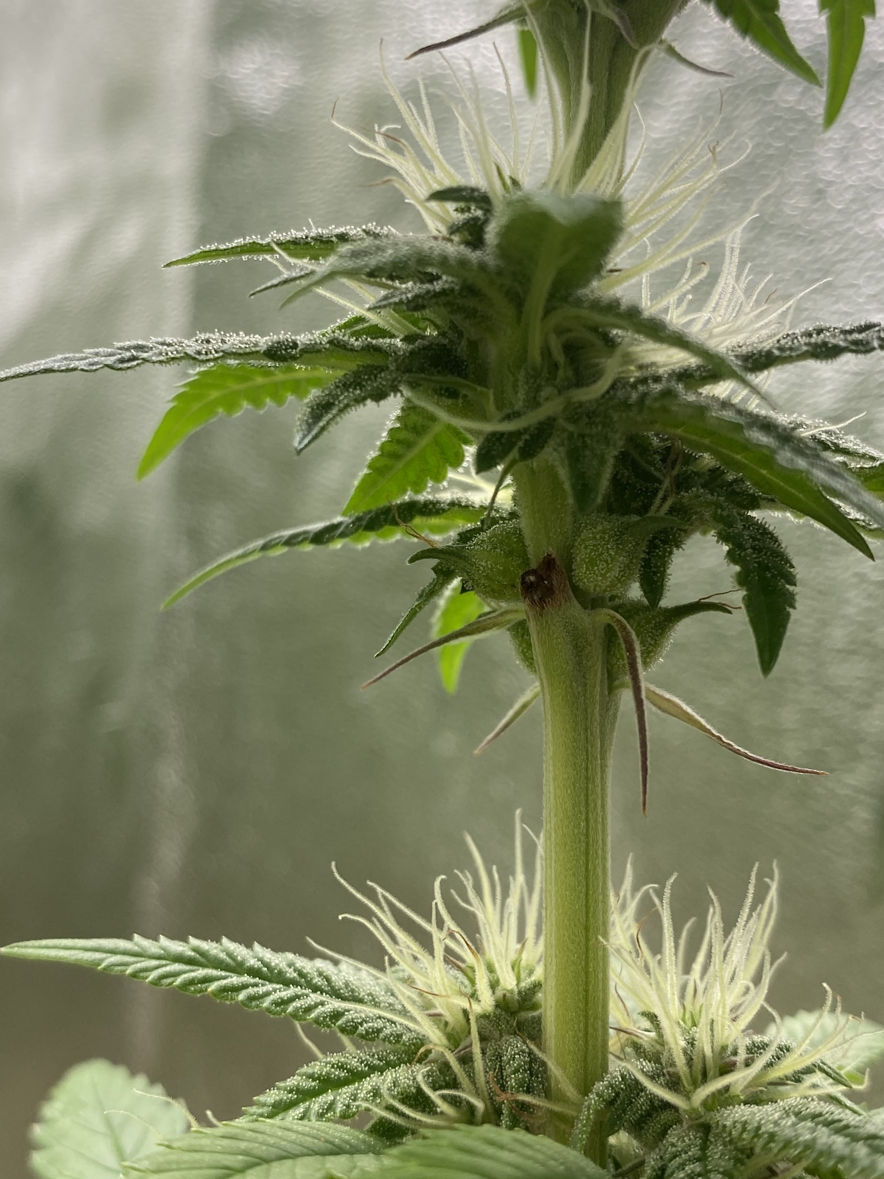 I’m certain its stress hermi from the environment. I direct planted it outside, last week we hit frost and I did my best to protect it. Poor thing has seen a tornado (within 10K), multiple thunderstorms, highs near 80F (26C) and near freezing temps 35F (1.6C). If so, all seed should be fem right? I’ll take a plant of sour diesel seed. Yes please.