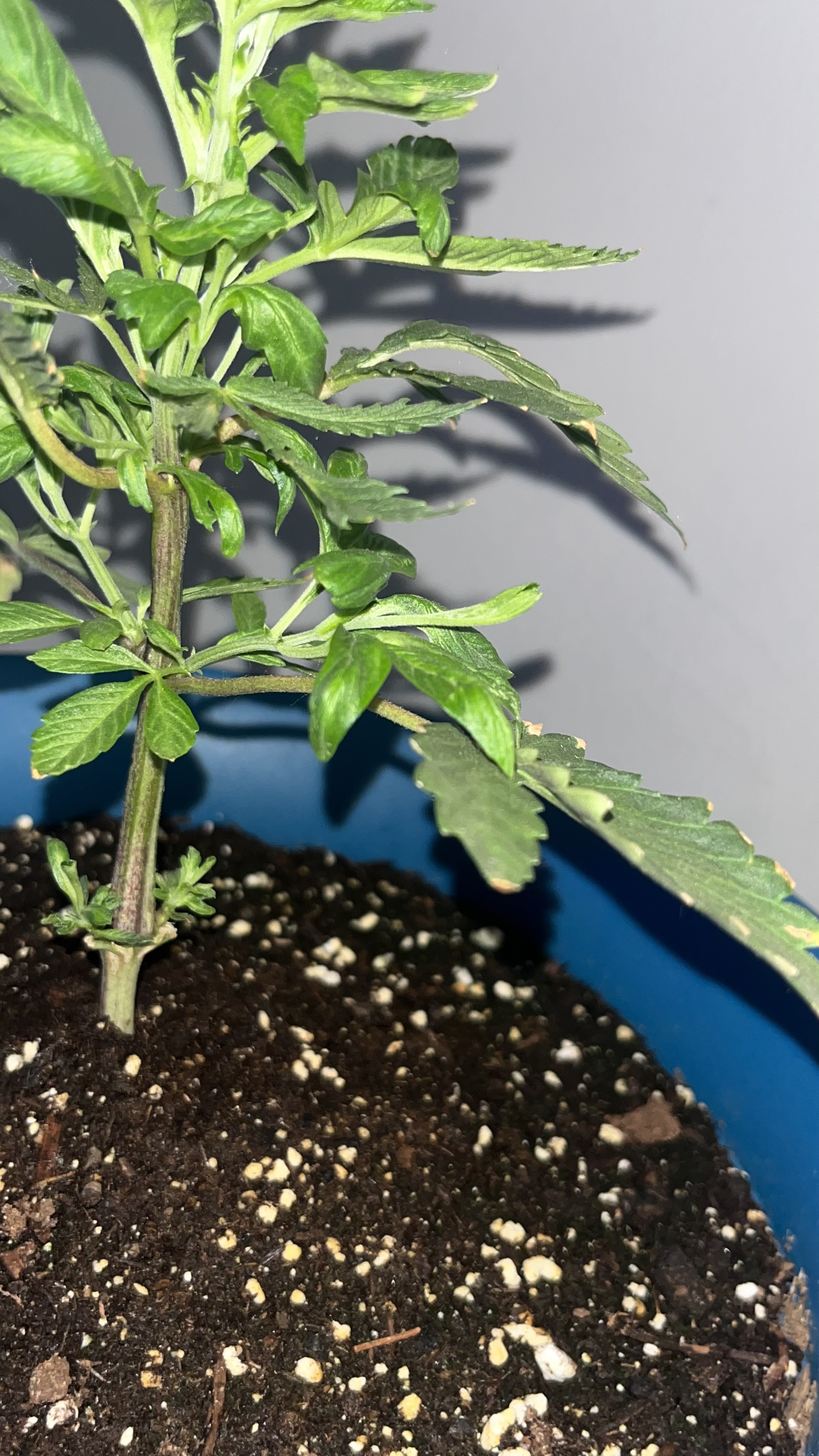 Stressed from heat and nutrition burnt all in the same day my mom put my plant from the shadow into the sun after showing my uncle my plant and it got stressed and the day before i put some shitty miracle grow fertilizer on it and it burnt it alot