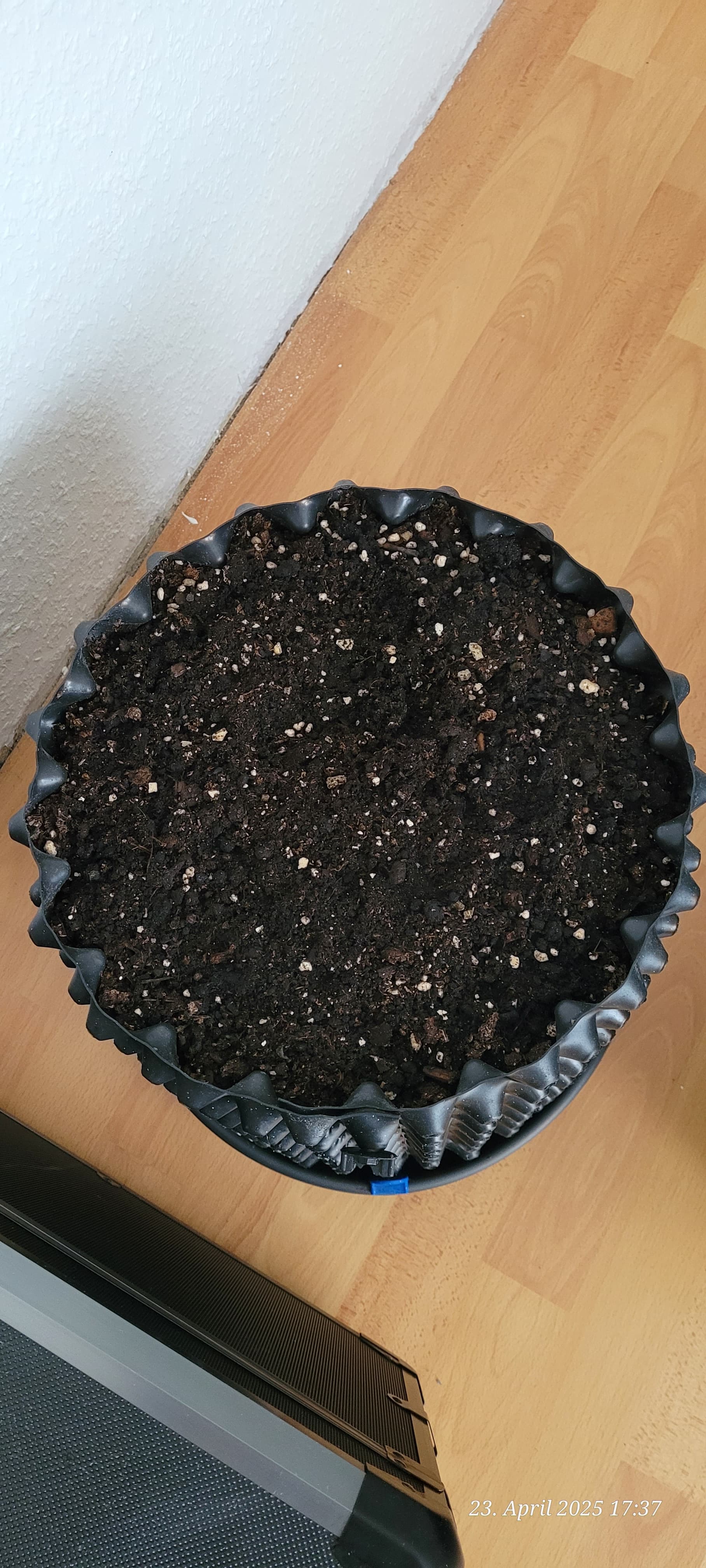 Dann kam die Überraschung als ich den 20 liter Topf auf machte und die Erde auch noch dazu .