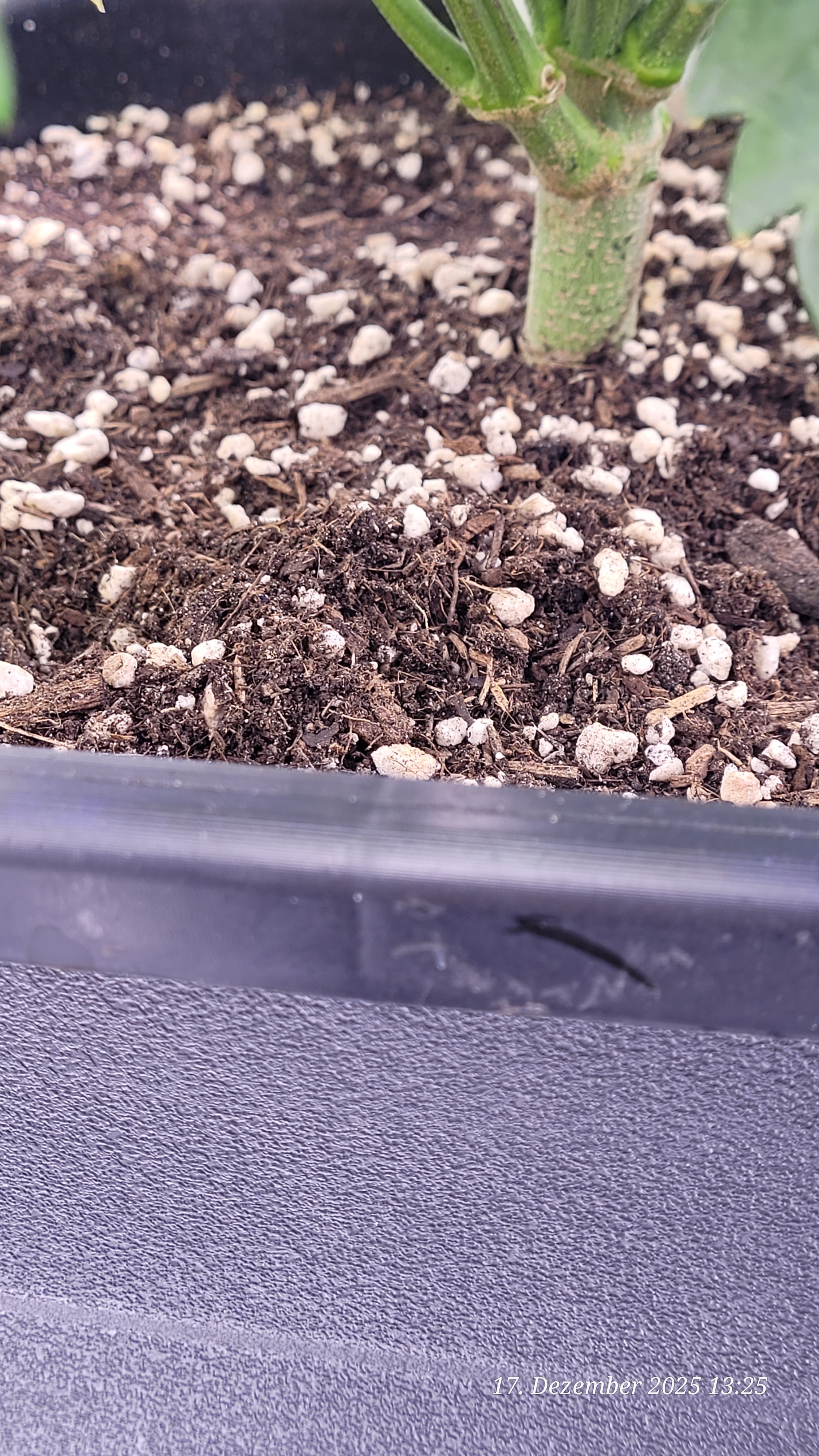 In the propagation temple, I had to check today because the Living Soil here was slowly drying out. The digital Blumat showed 135 Kbar, which indicates dry conditions. Optimal should be 90-110.