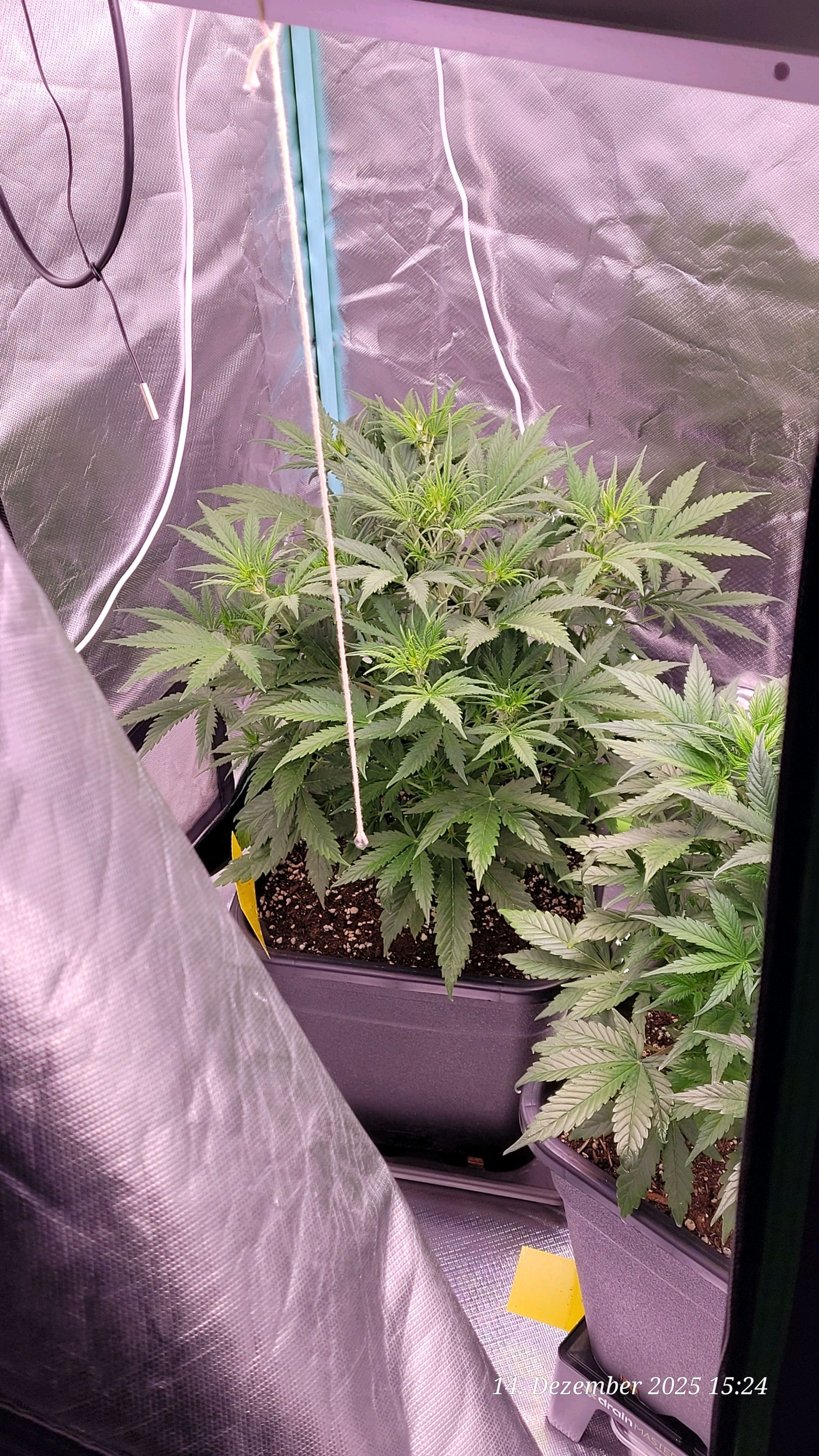Meanwhile, the plants were too dry, showing deficiencies. The RH was even only 43%. So today I gave each pot one liter of water into the soil and half a liter from below, which was absorbed in no time. It’s good here that the drain openings are covered with coco, but water can flow in and out.