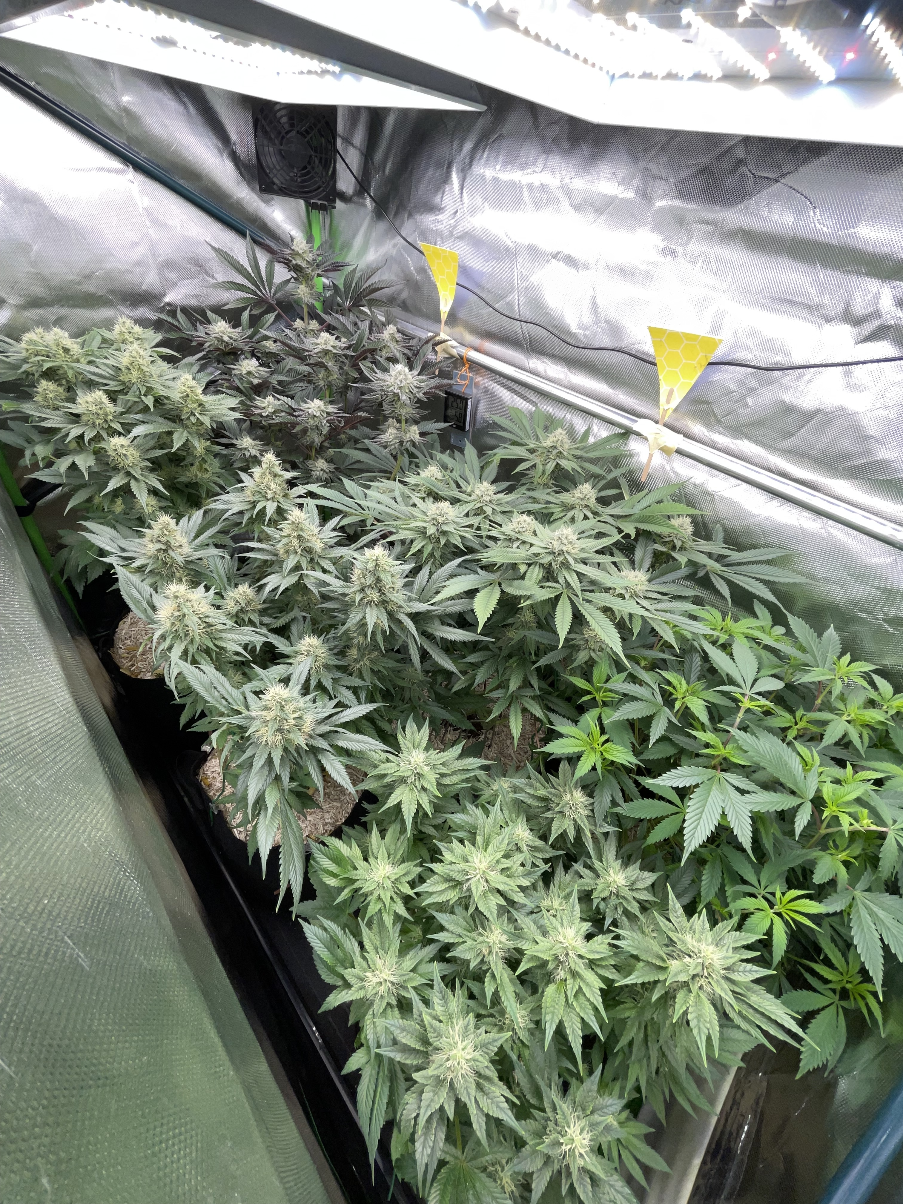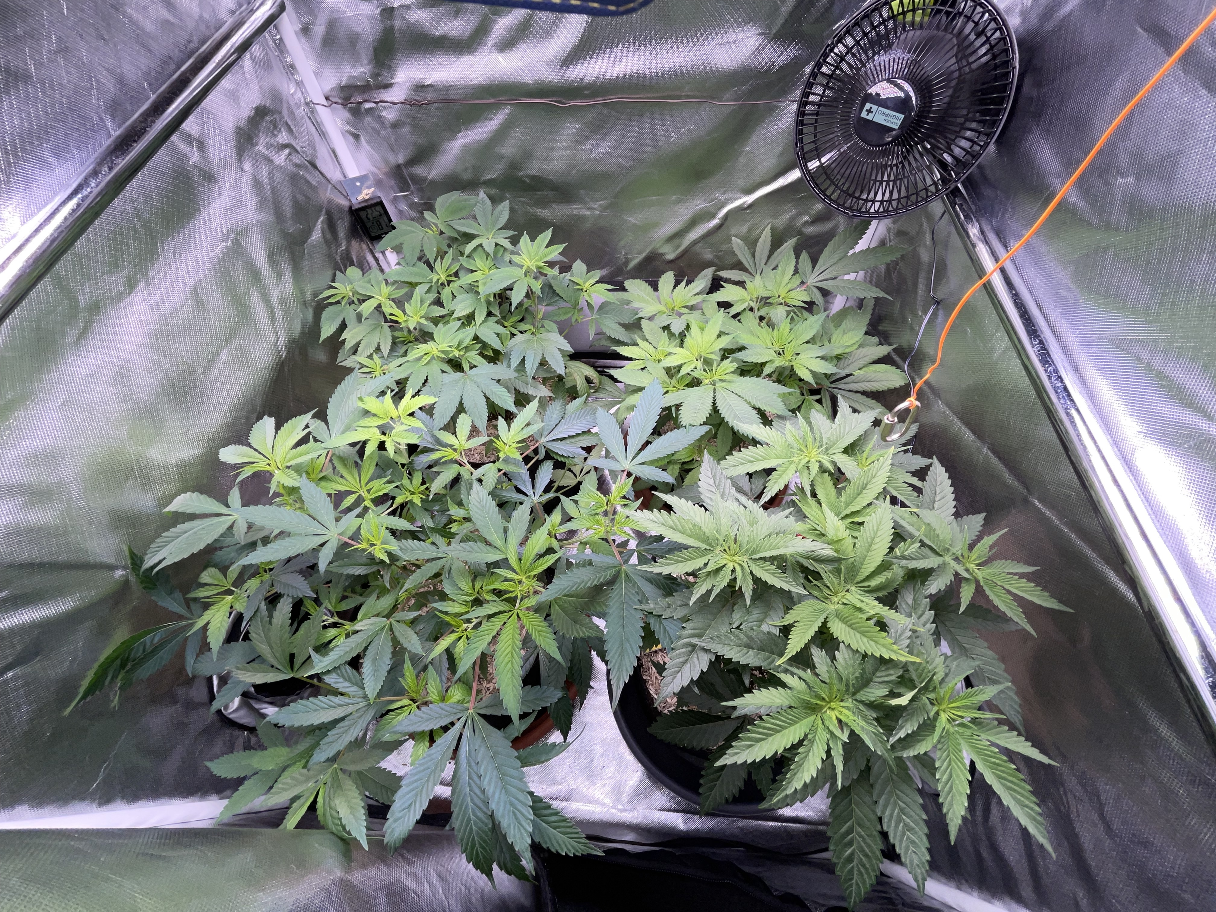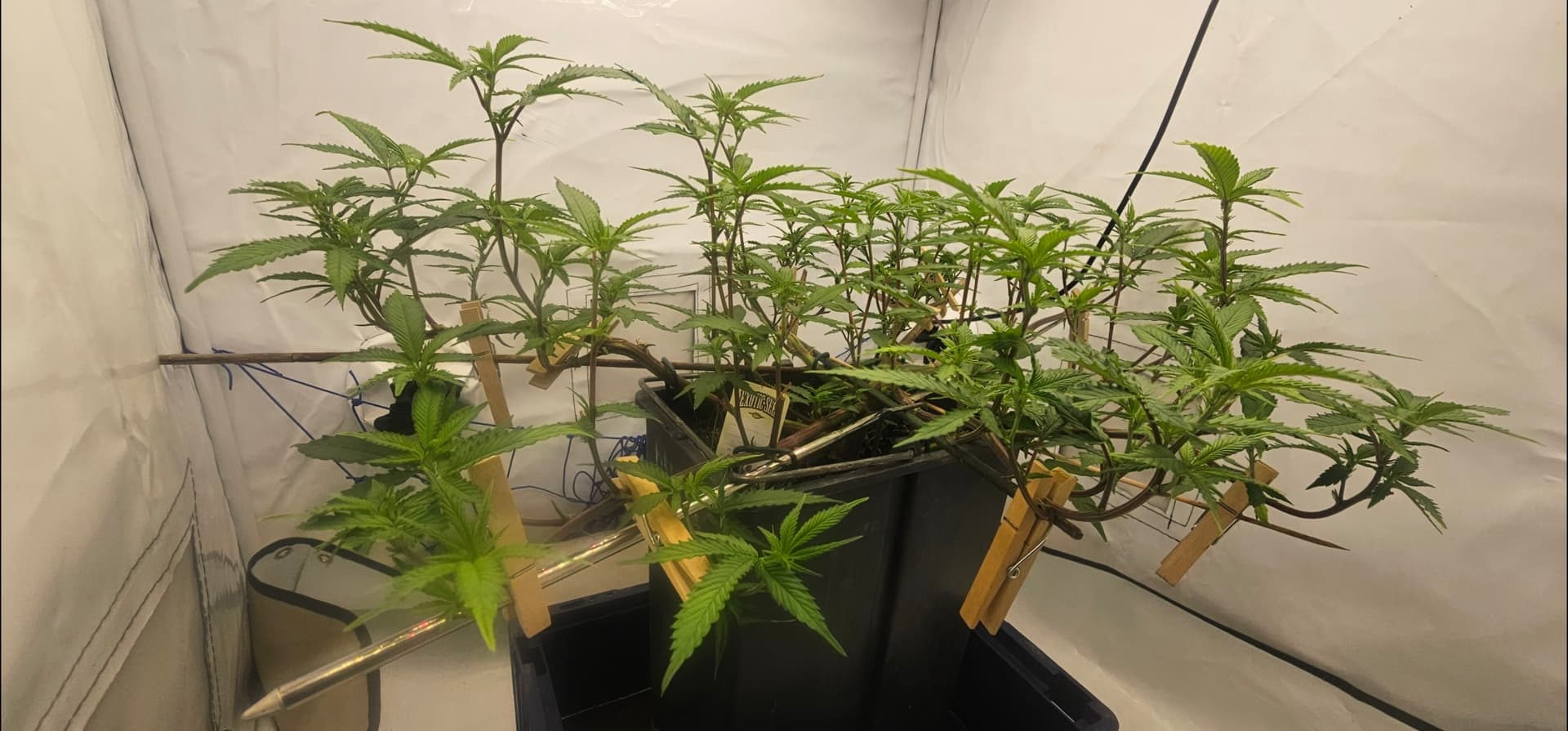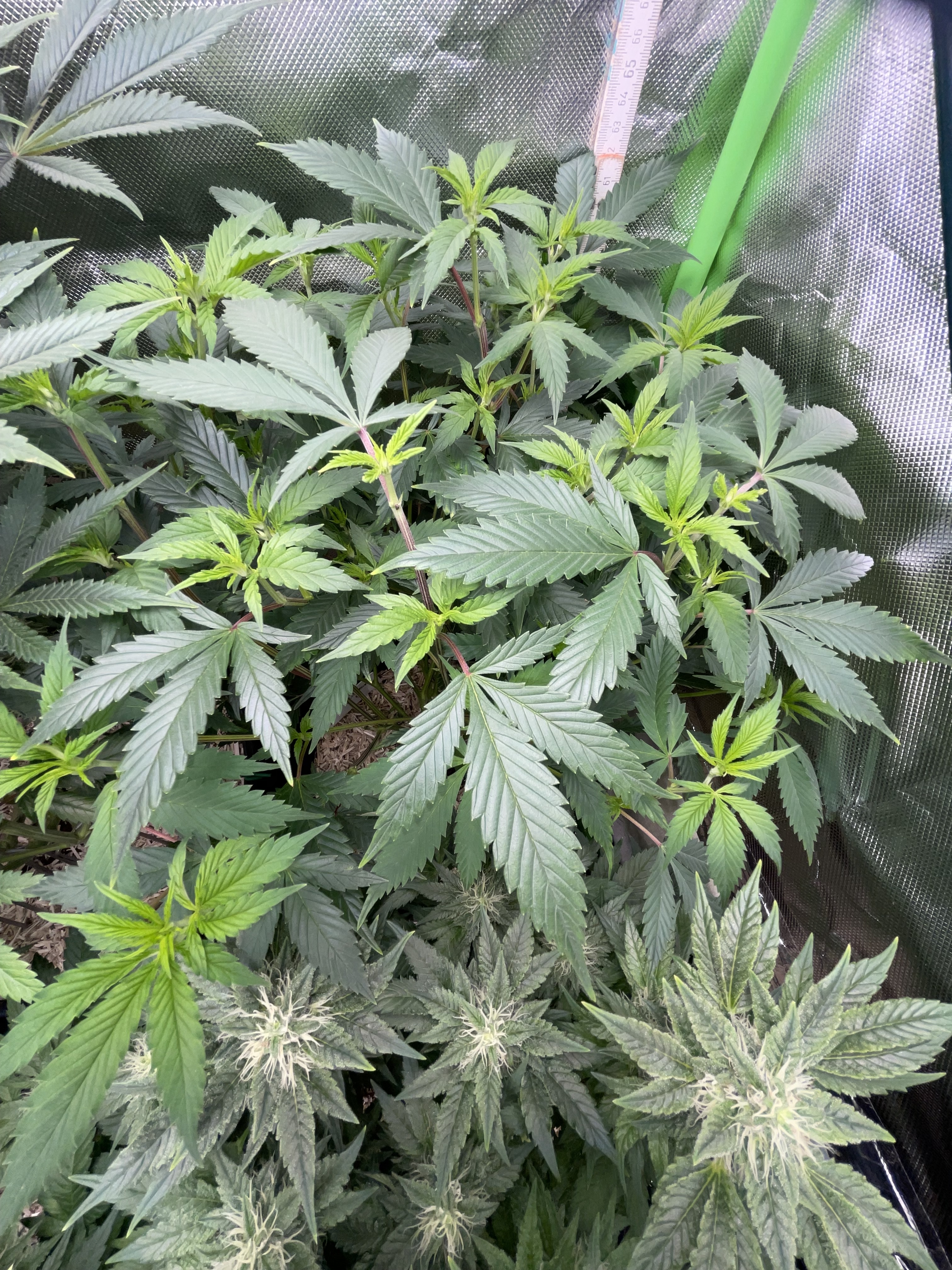 Both were defoliated very little today, and next week, in the third week of flowering, they will be stripped from the bottom up and thinned out again.