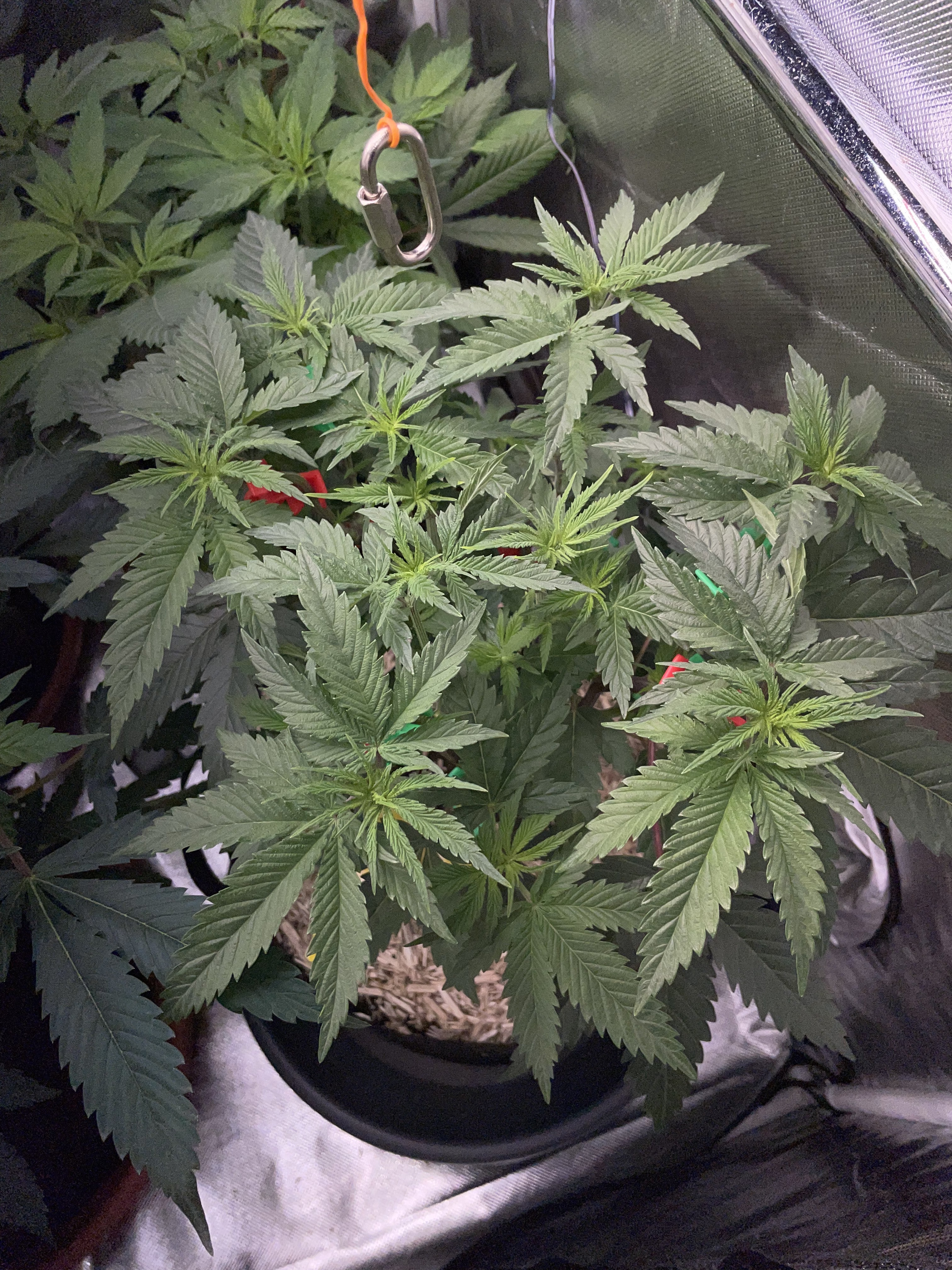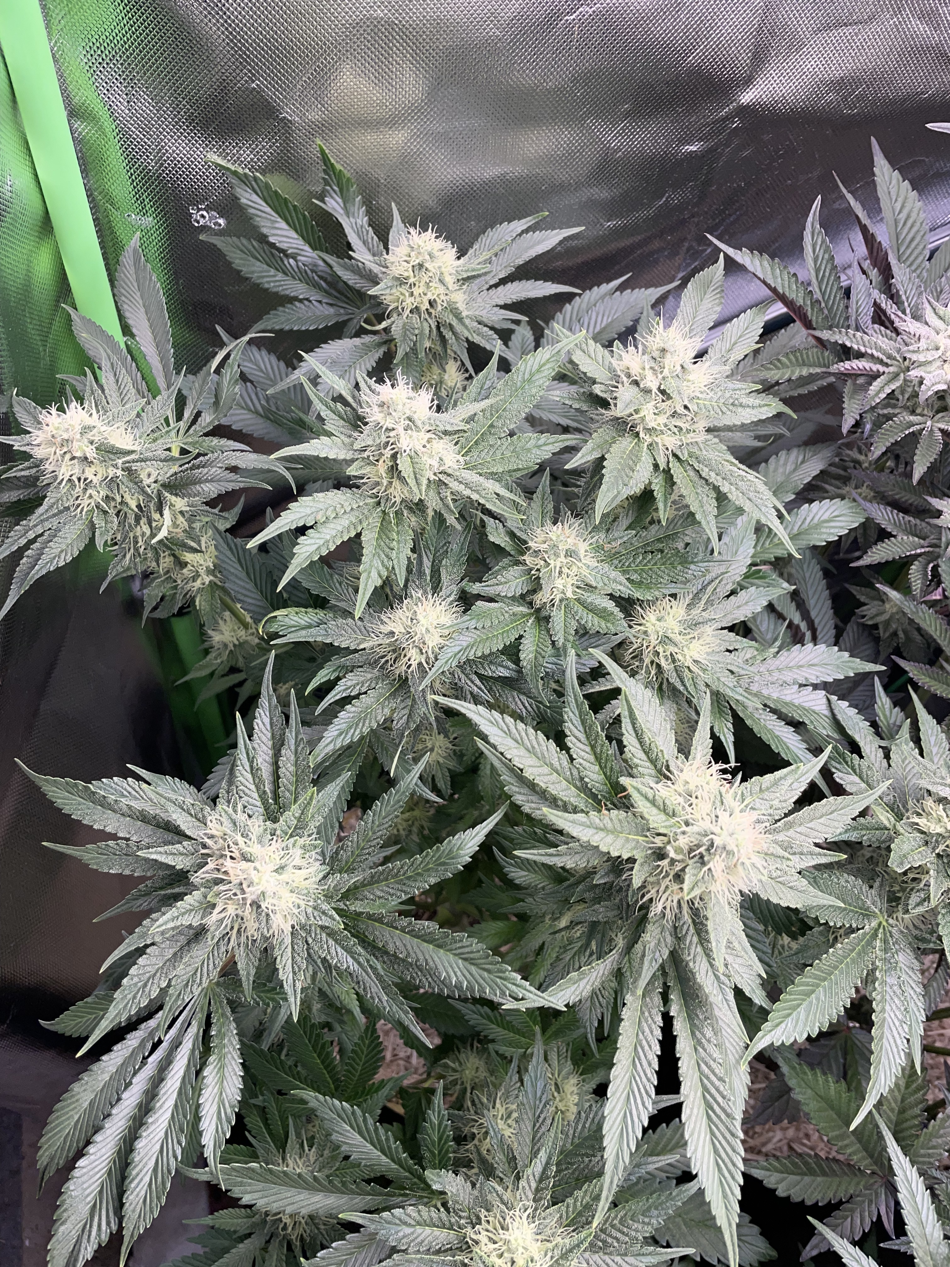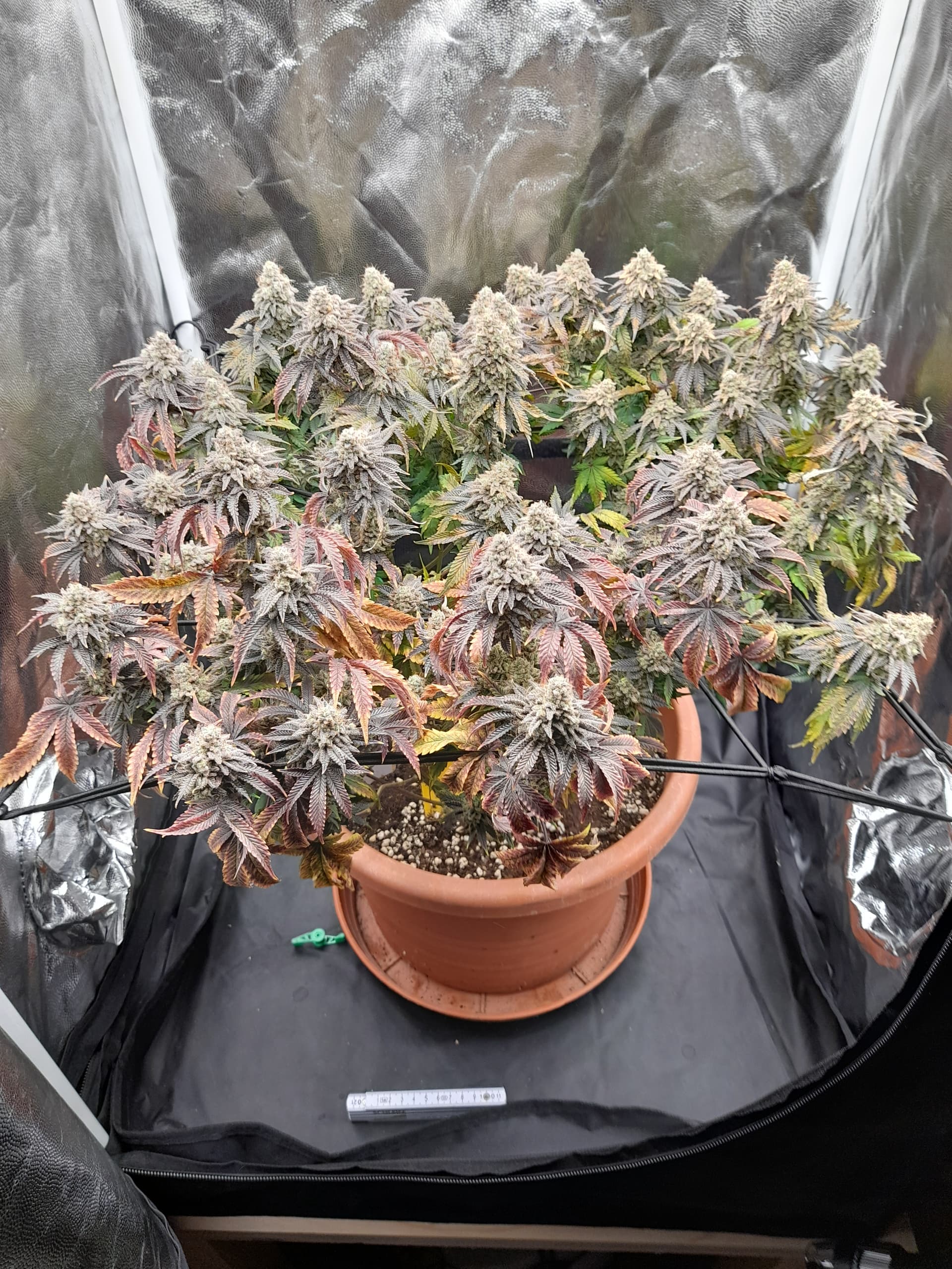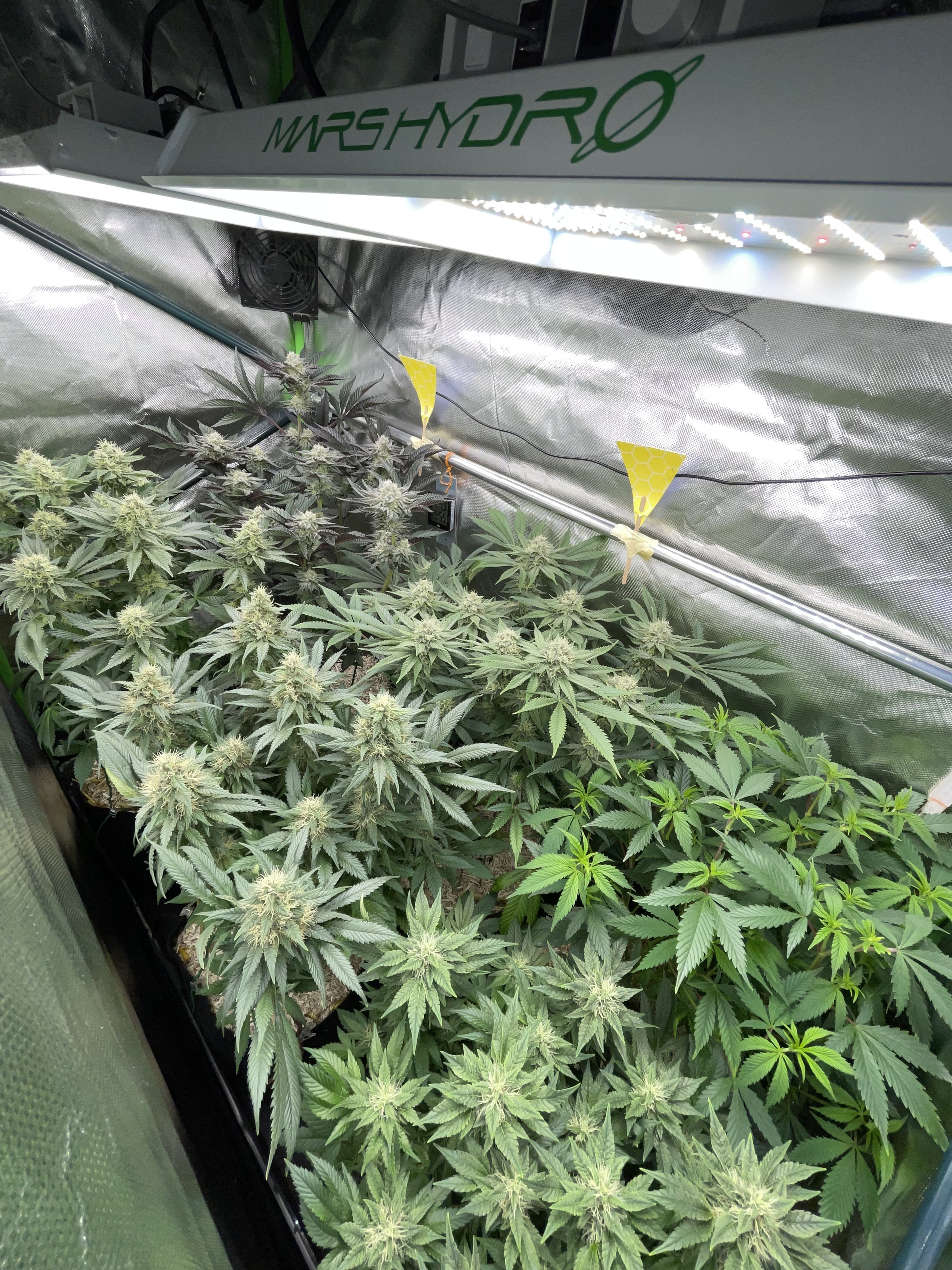 Both were defoliated very little today, and next week, in the third week of flowering, they will be stripped from the bottom up and thinned out again.