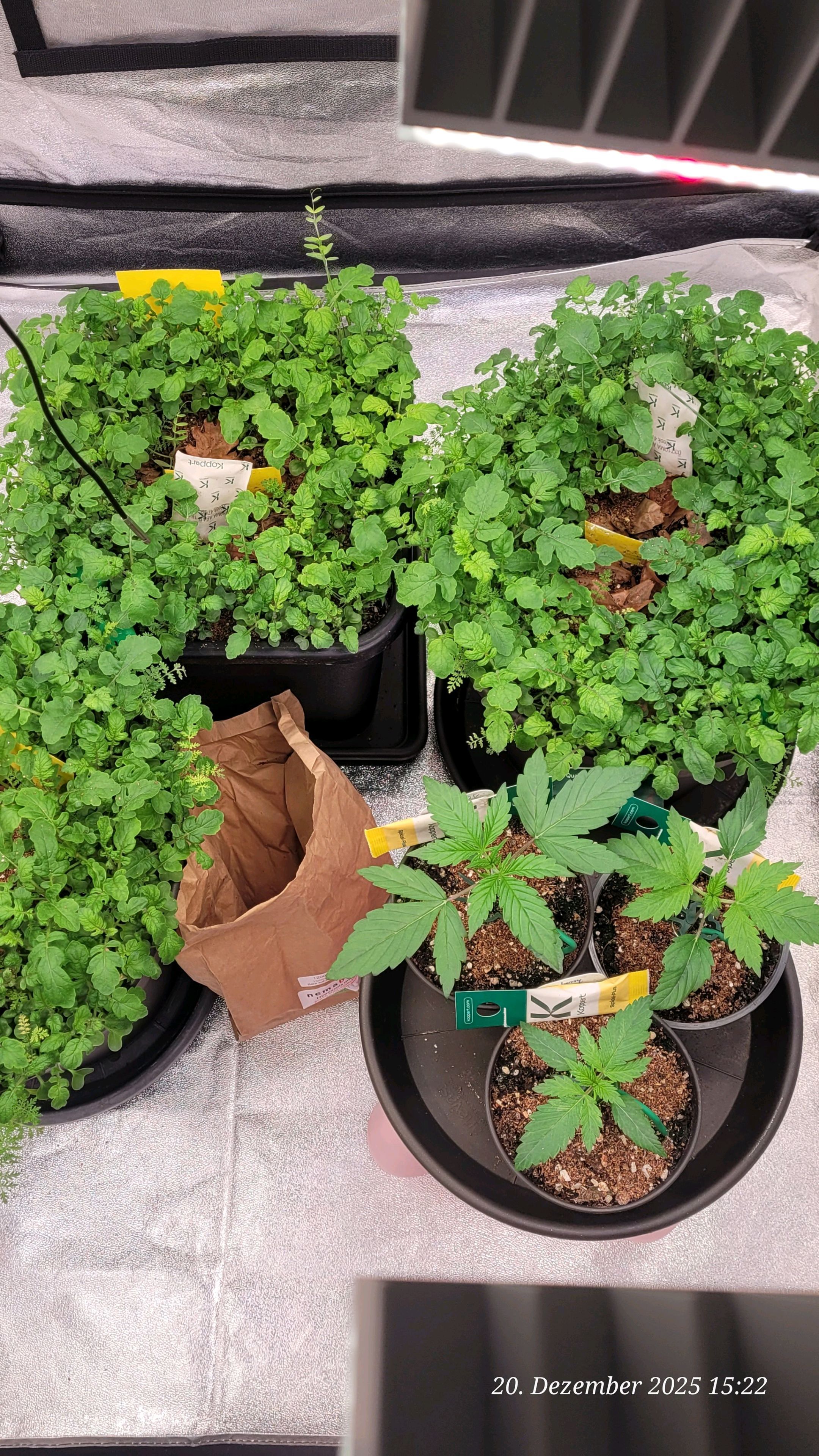 Now that I quickly brought out the bag of predatory mite friends yesterday evening, I was also able to properly water the 2 Autos today, as both were quite affected by the dry spell.