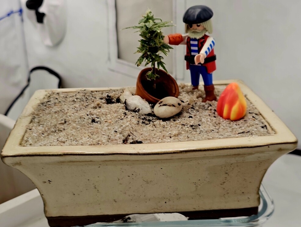is increasingly taking the shape of a small Christmas tree. I initially wanted to tie down and pull the lower branches outwards a bit. But somehow I like the shape. It’s probably just its way of growing.