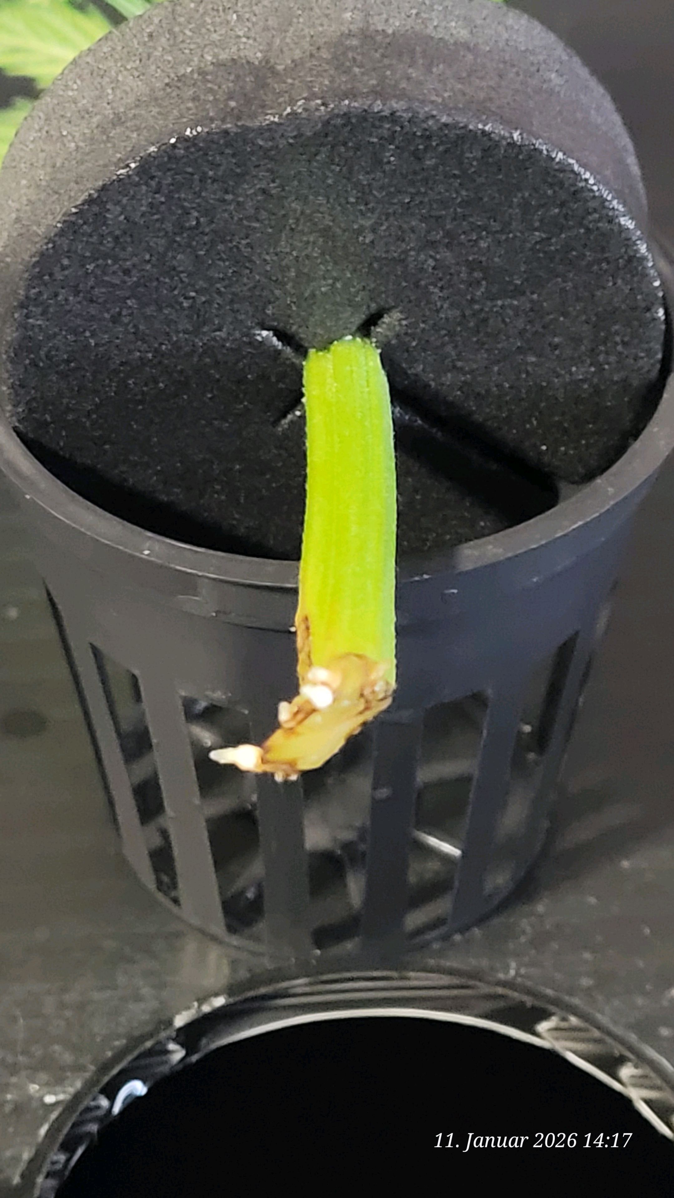 The three Cookie OG clones still look alive today, on day 9 of rooting. Three days ago, I peeked into the lower part of the stems, and unfortunately, there were no roots visible yet.