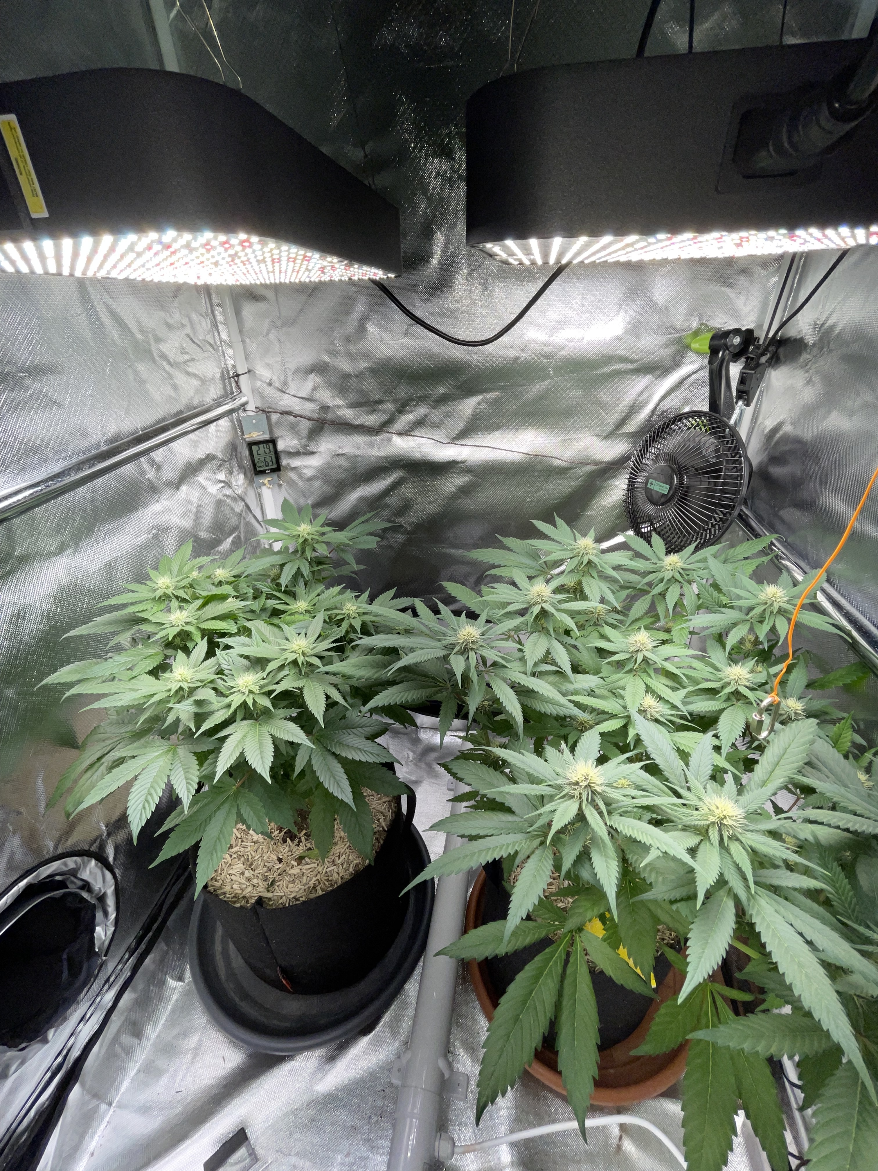 The lamp distance was readjusted and reduced to 45 cm from the light, and the dimmers are at 50%, which should now be sufficient for the last days of vegetation.