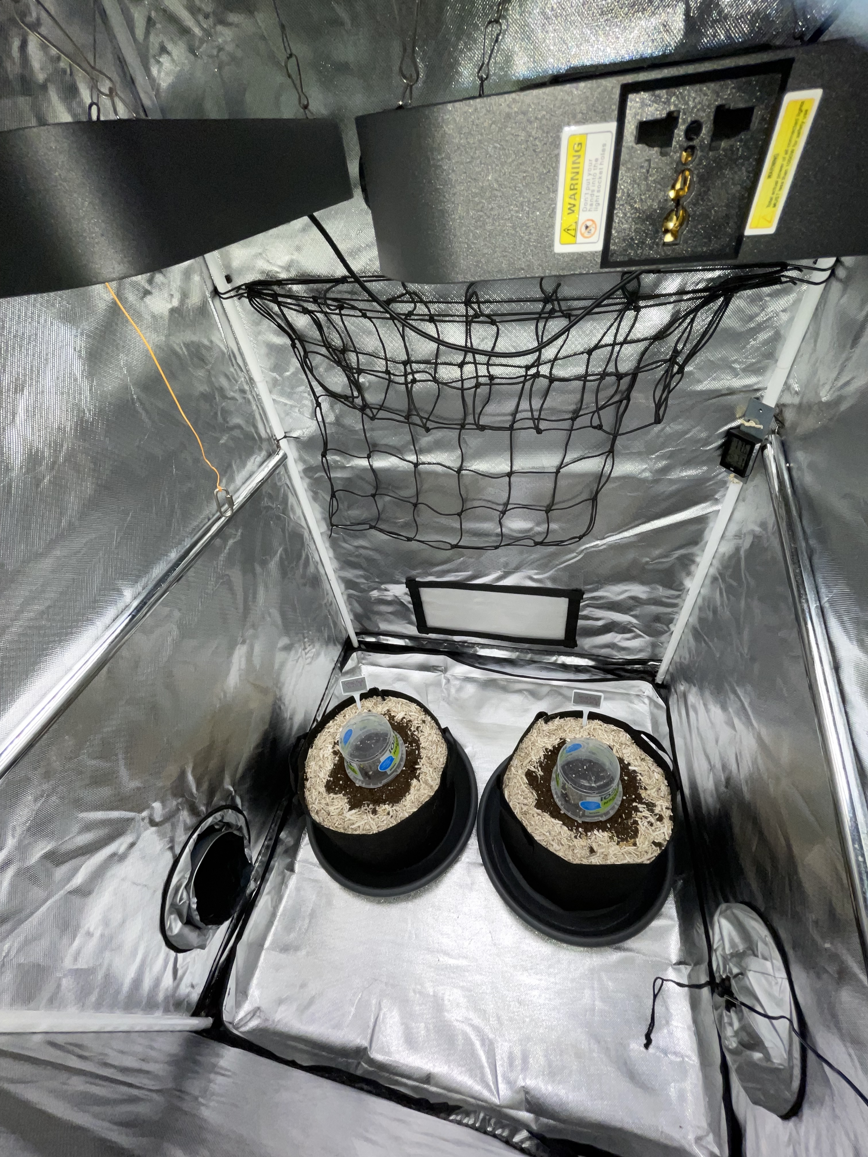 Once everything is done in the tent, I have to realign the lamps to a light distance of 45 cm for now and raise the dimmers to 60%.