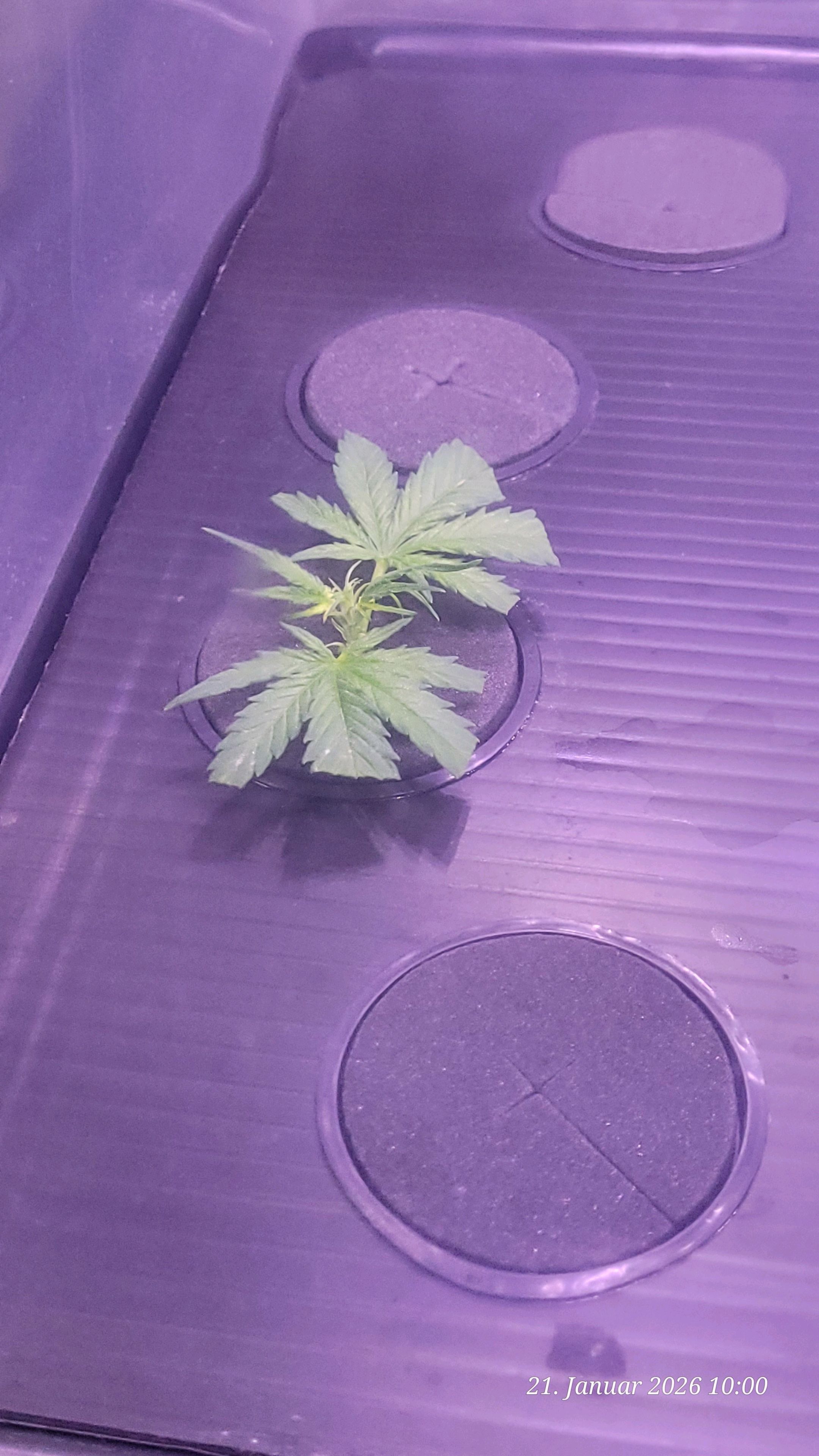 Finally, the propagator also had to be emptied, cleaned, and refilled. For the three clones, today is day 20 of rooting, and fresh water every 10 days. The pH brought to 6.3, the water temp. to 25 degrees, a dosing cap of Clonex Gel dissolved wonderfully in the water with stirring. At least since I started using Clonex 10 days ago, instead of Hesi Wurzel Complex.