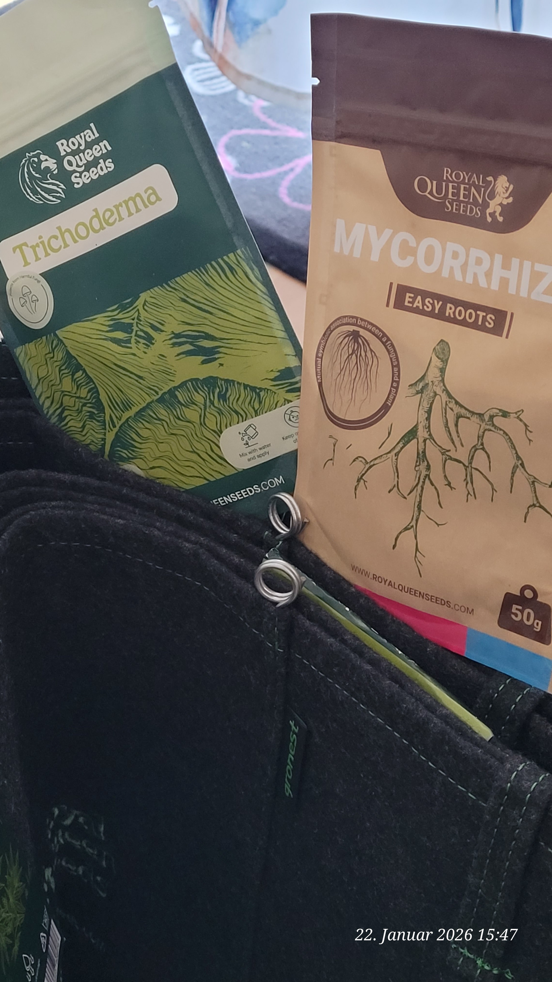 Then, today, a watering in small increments until minimal drain shows at the bottom, to ensure that water also reaches the roots, and in addition, FS nematodes – I still have 10 million. A large part of them should go into the water to activate the Dope Soil, which will also follow soon for the clones.