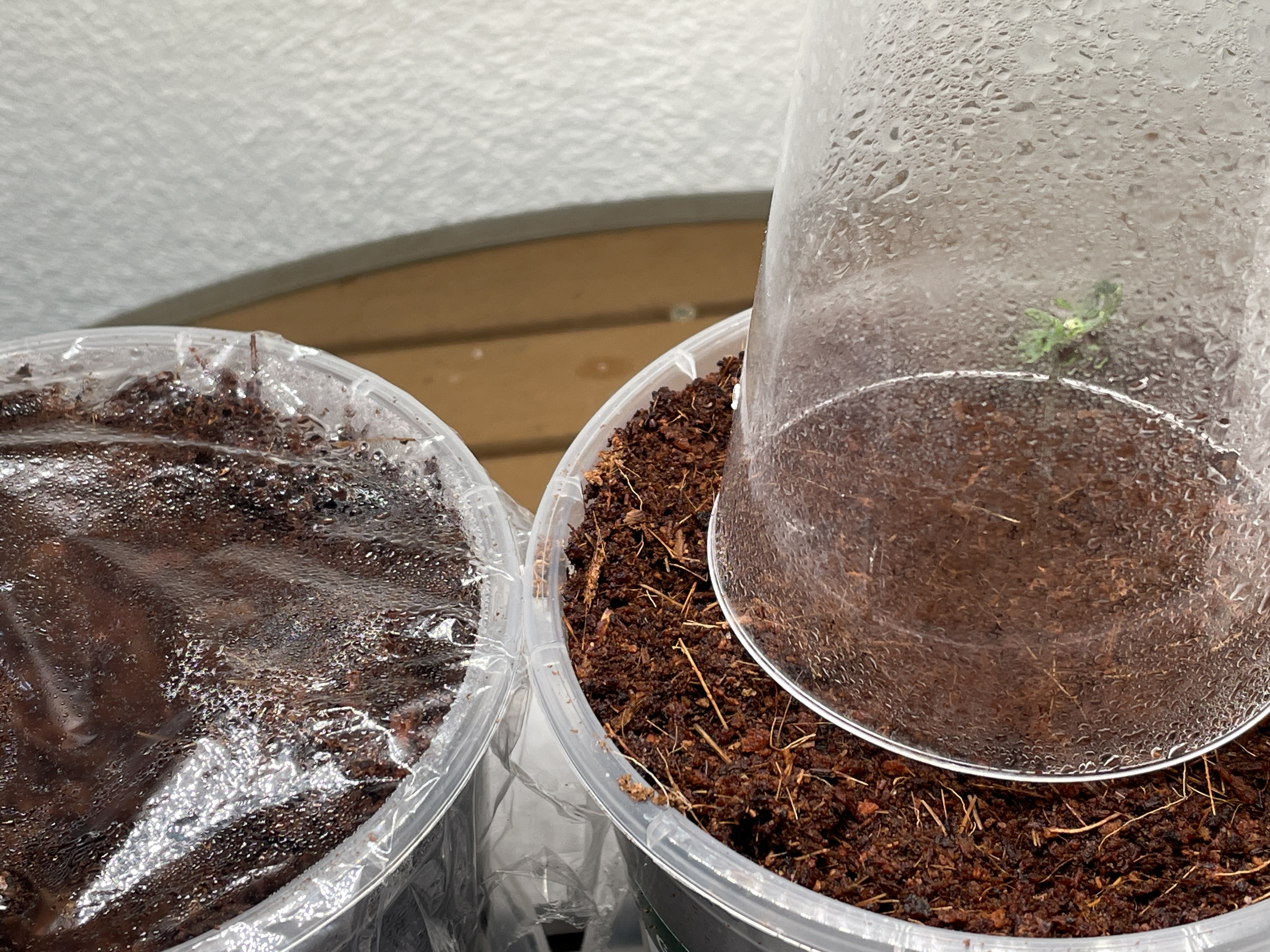 Today, the little ones each got 100ml of water. Yesterday, I made them a stylish support, inspired by @Pflanzenpaul, until I can mound up some soil in the coming days.