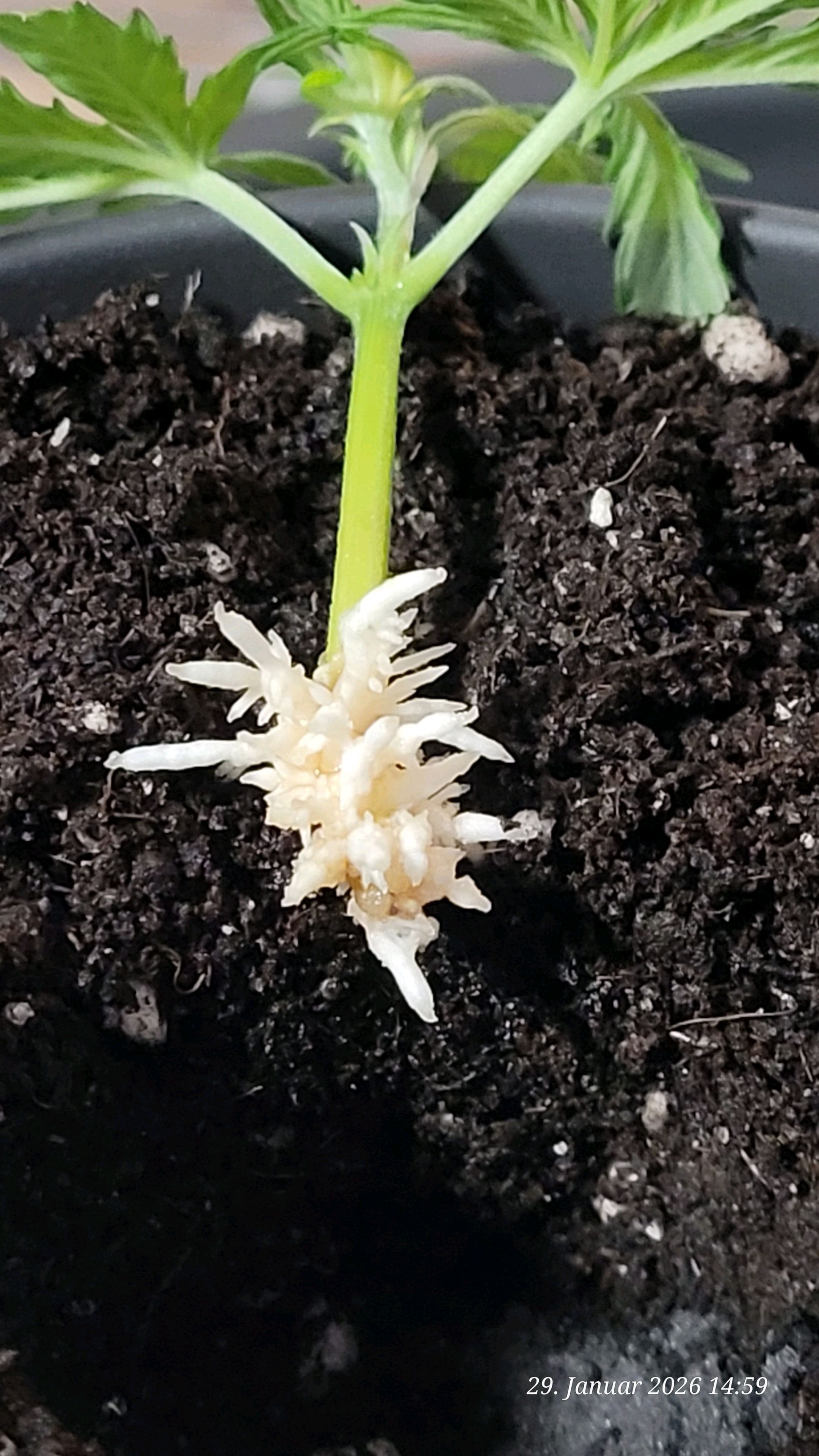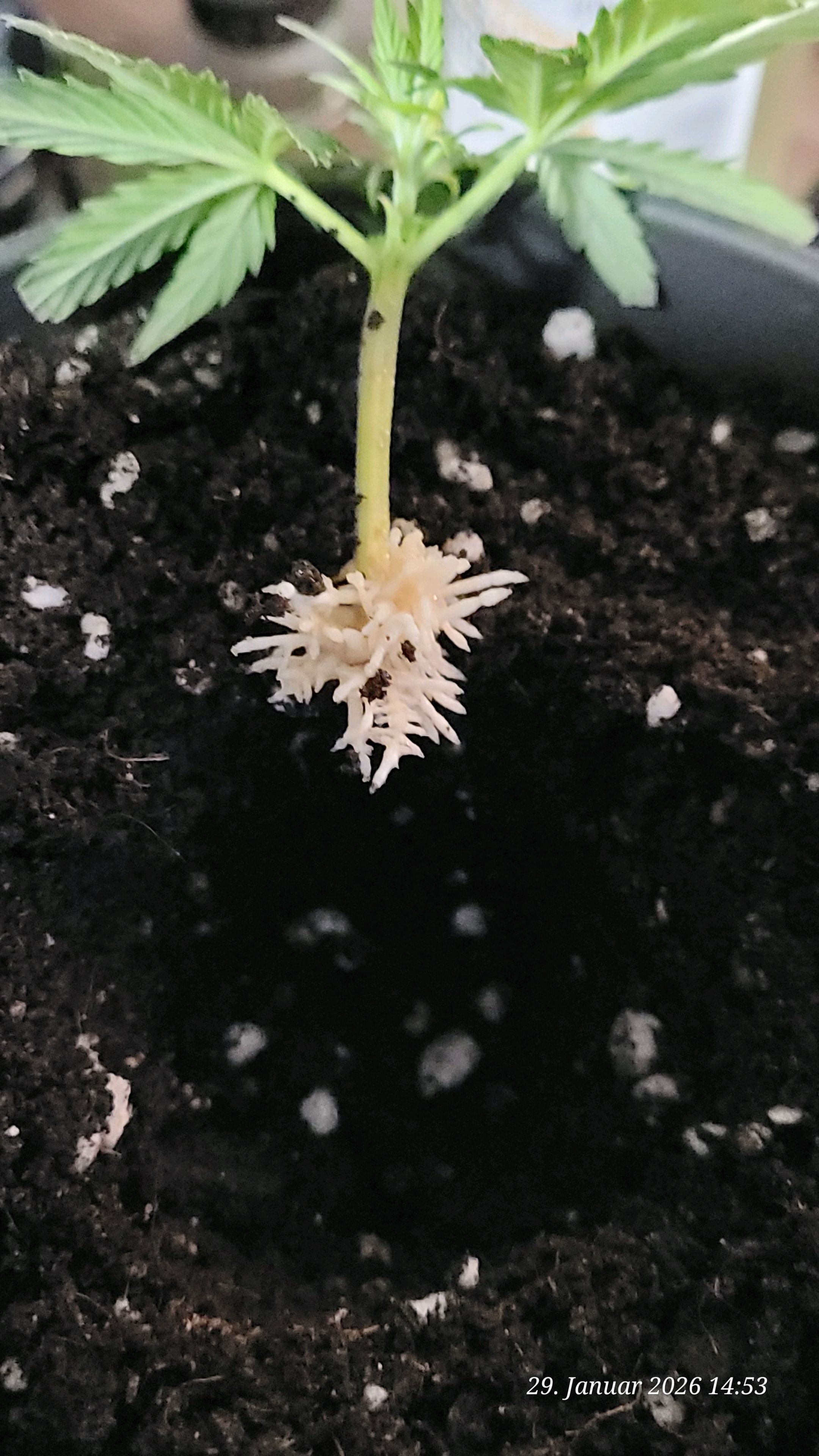 Since yesterday, they are out of the sprinkler system and in soil. There is Trichoderma / Mycorrhiza in it. That’s why the temperature is a bit higher now.