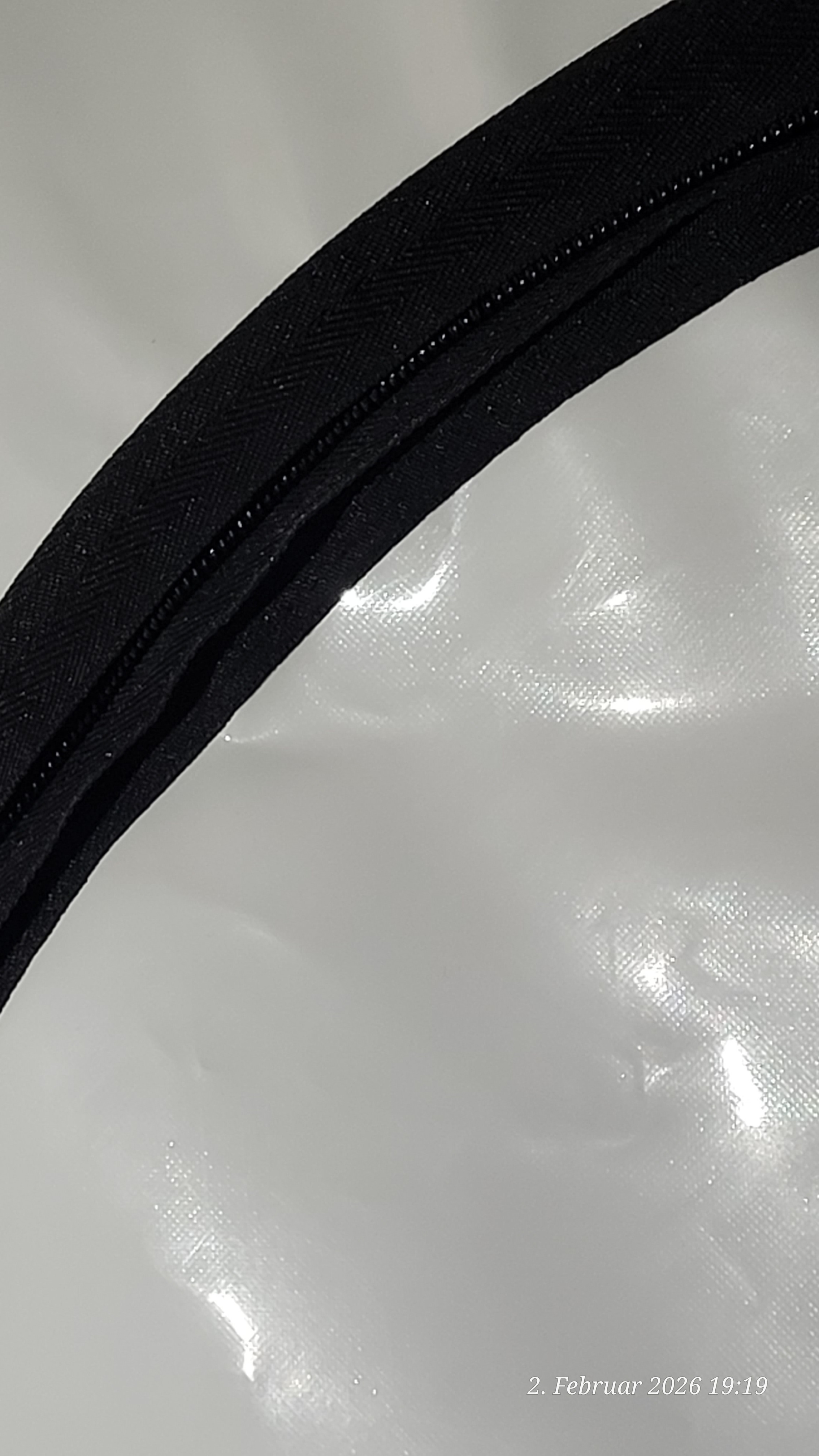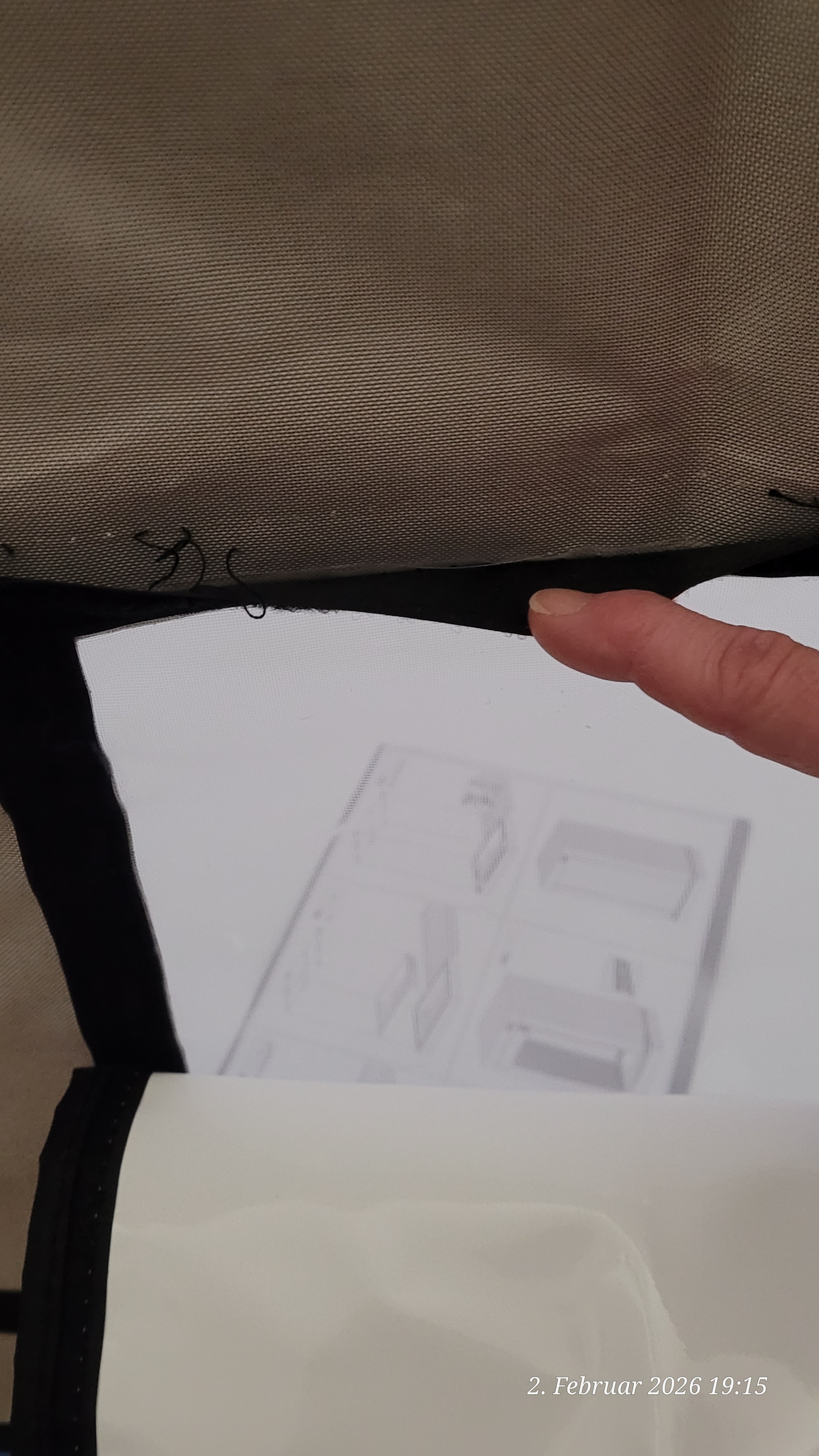 The fabric inside, which is supposed to make the zippers light-tight, bulges downwards into the window arch, instead of lying under the upper fabric. Because it’s sewn incorrectly, crooked, or not sewn at all.