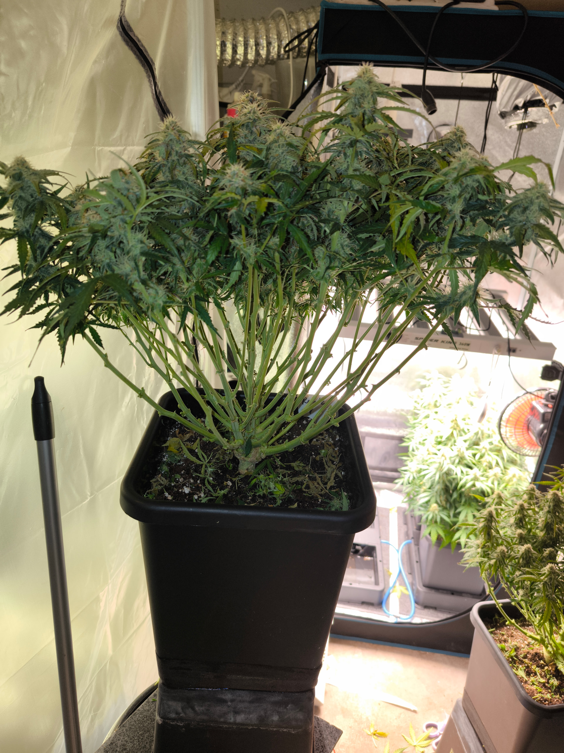 Bubble Gum 2 was relieved of her severe suffering today. And now she lies at my feet for me to remove her last leaves, and I’m performing a wet trim and detaching from the branches directly.