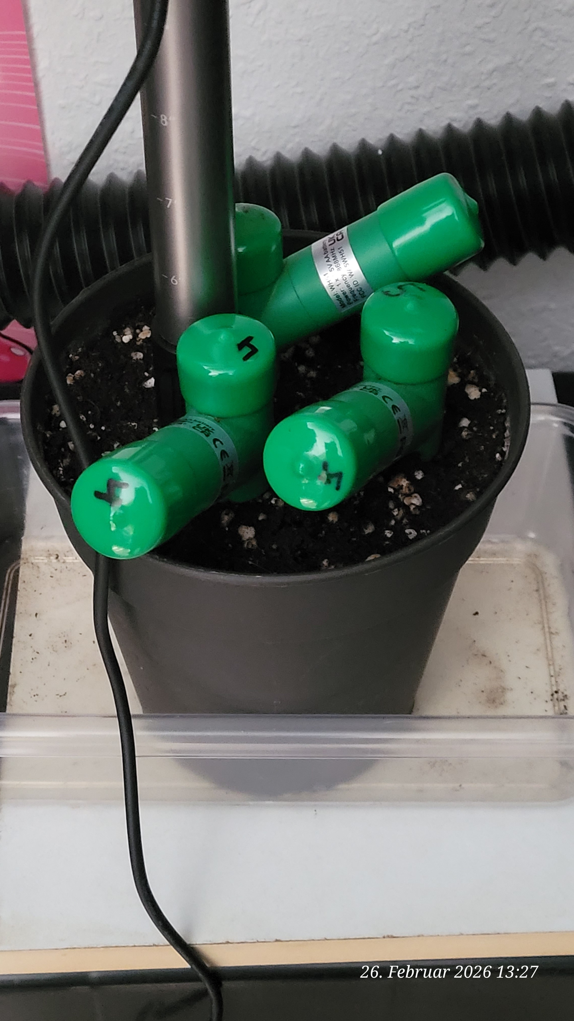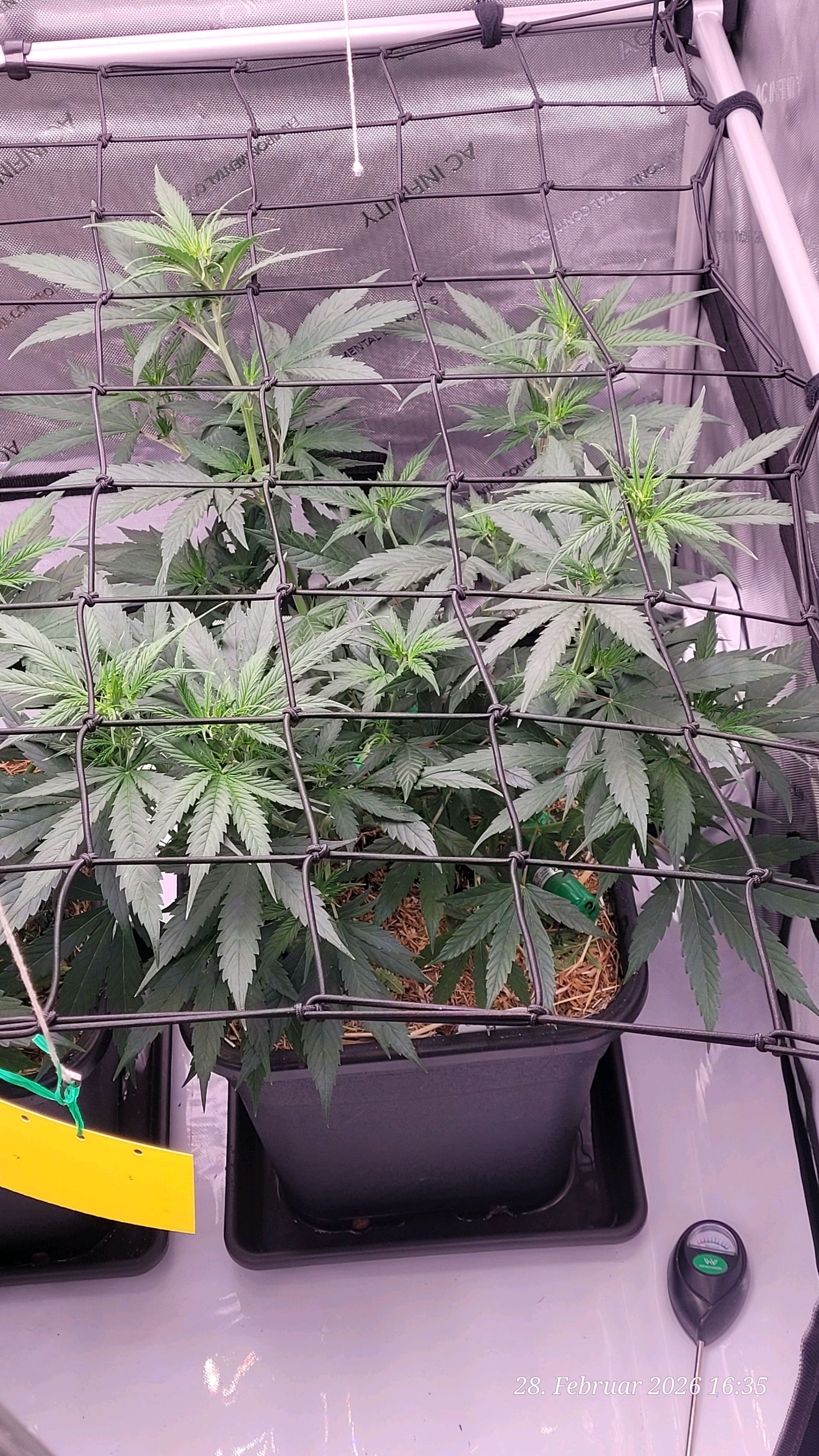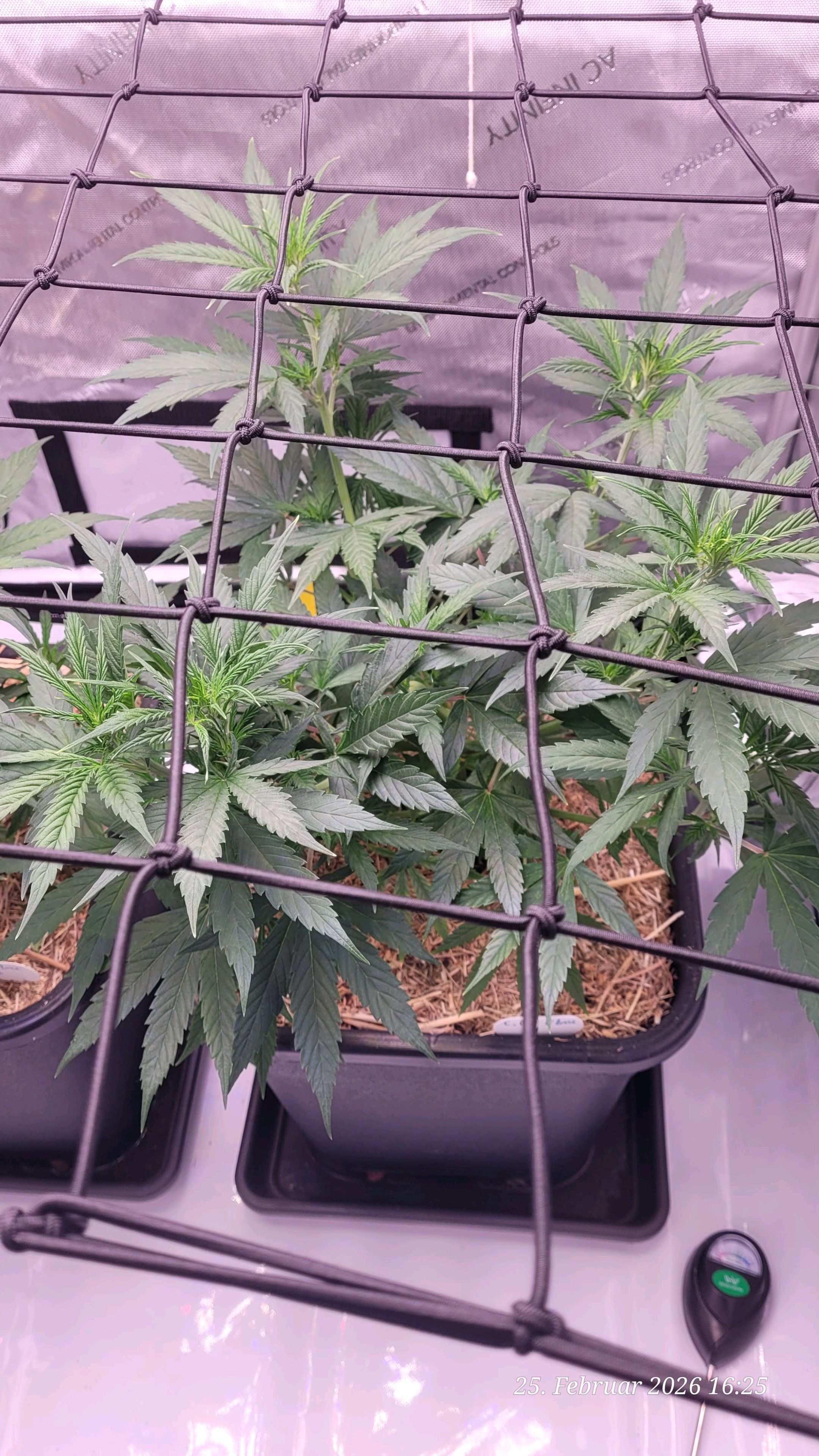 Today there will be some water again and I will place soil sensors in the earth to better monitor the soil moisture. The light will also go out an hour earlier today, and with that, I’m slowly starting to gently transition them into the flowering period, as their mother had stretched quite a bit.