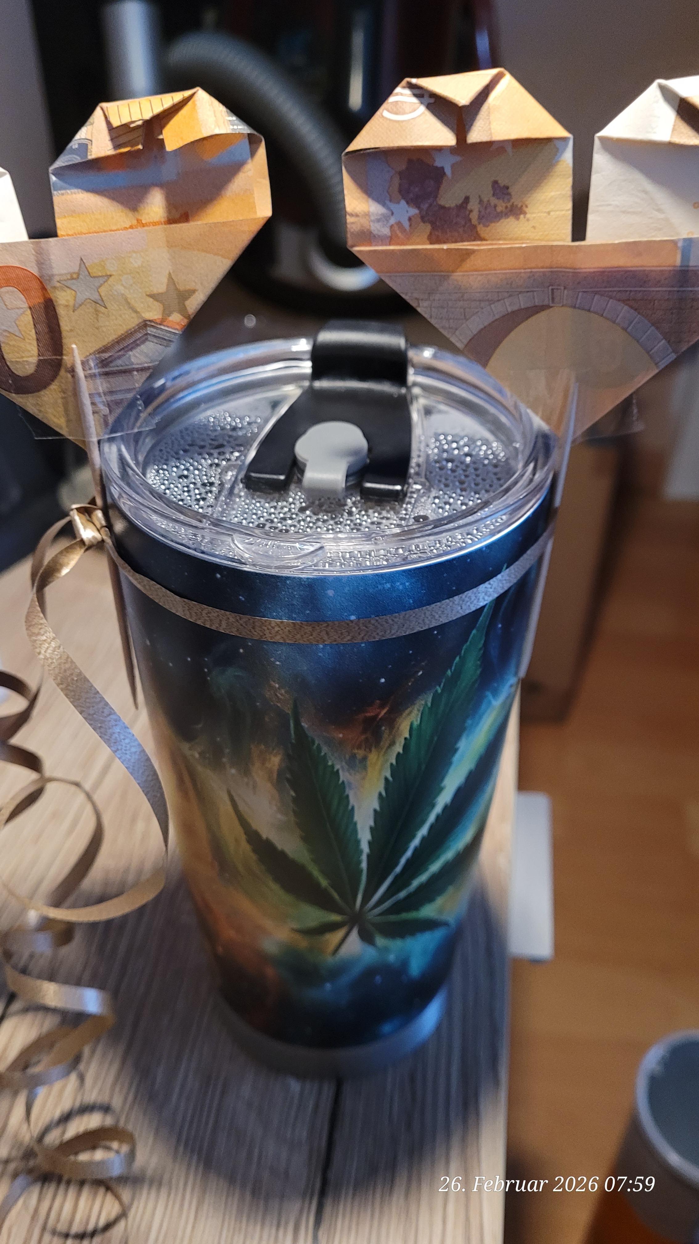 With a banknote heart!