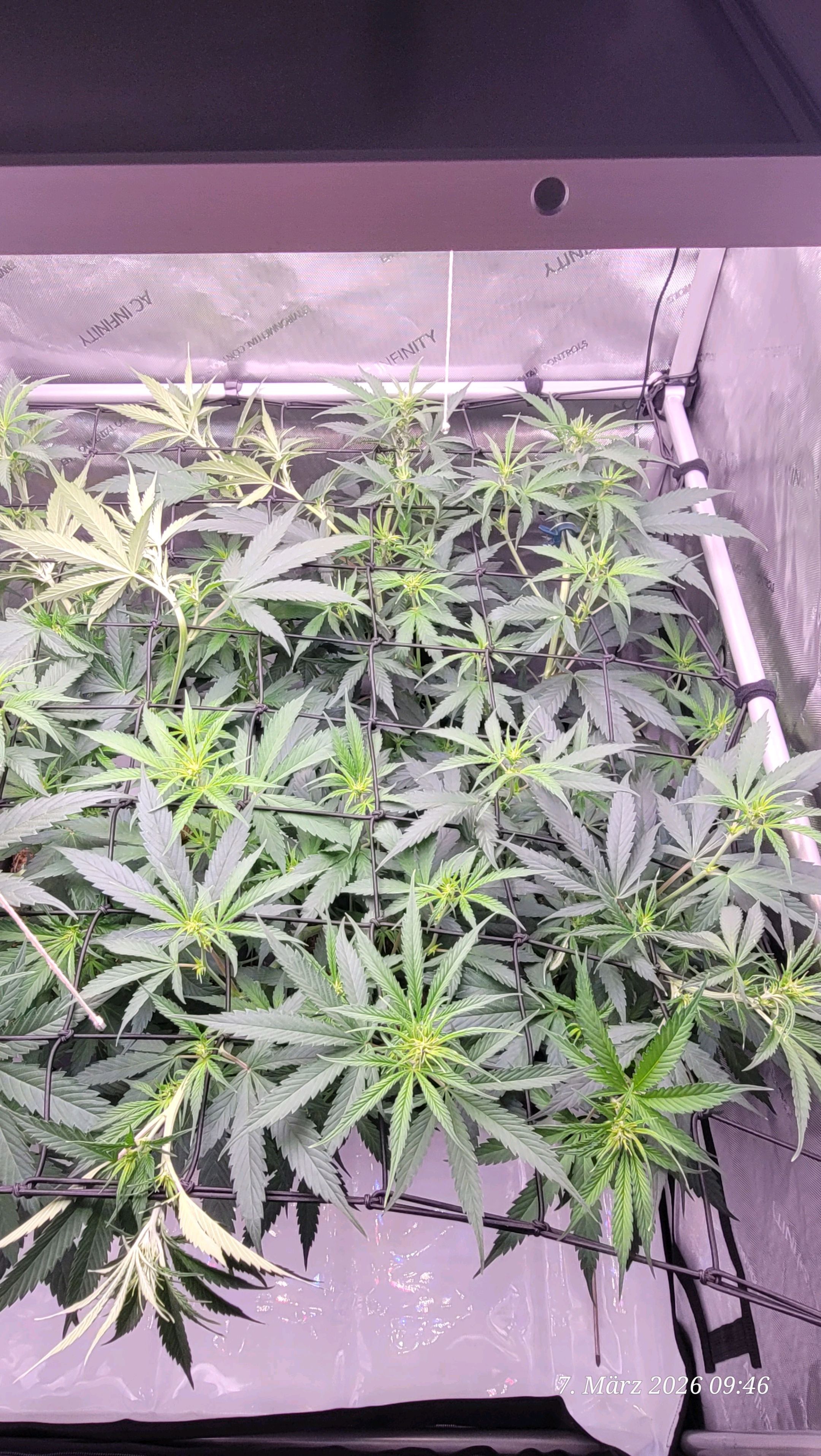 You can already see roughly what kind of branching, diagonally, there is under the Scrog.