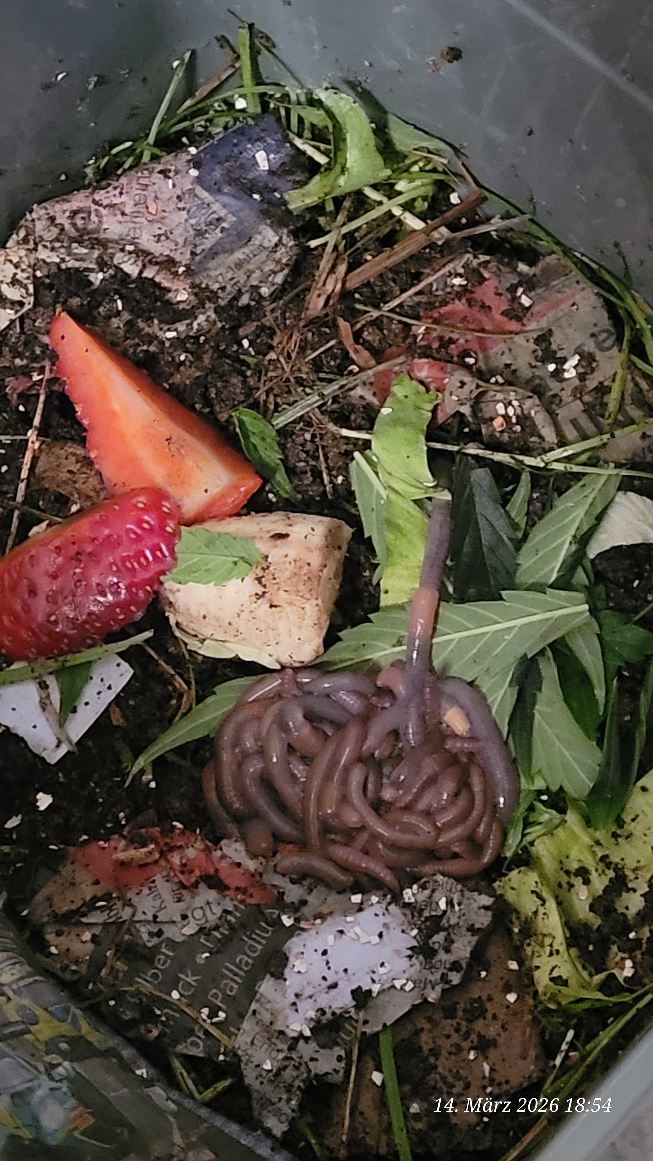 Coffee grounds are already secured. Then the worms will follow, and with a bit of luck, I’ll always have fresh ones available soon.