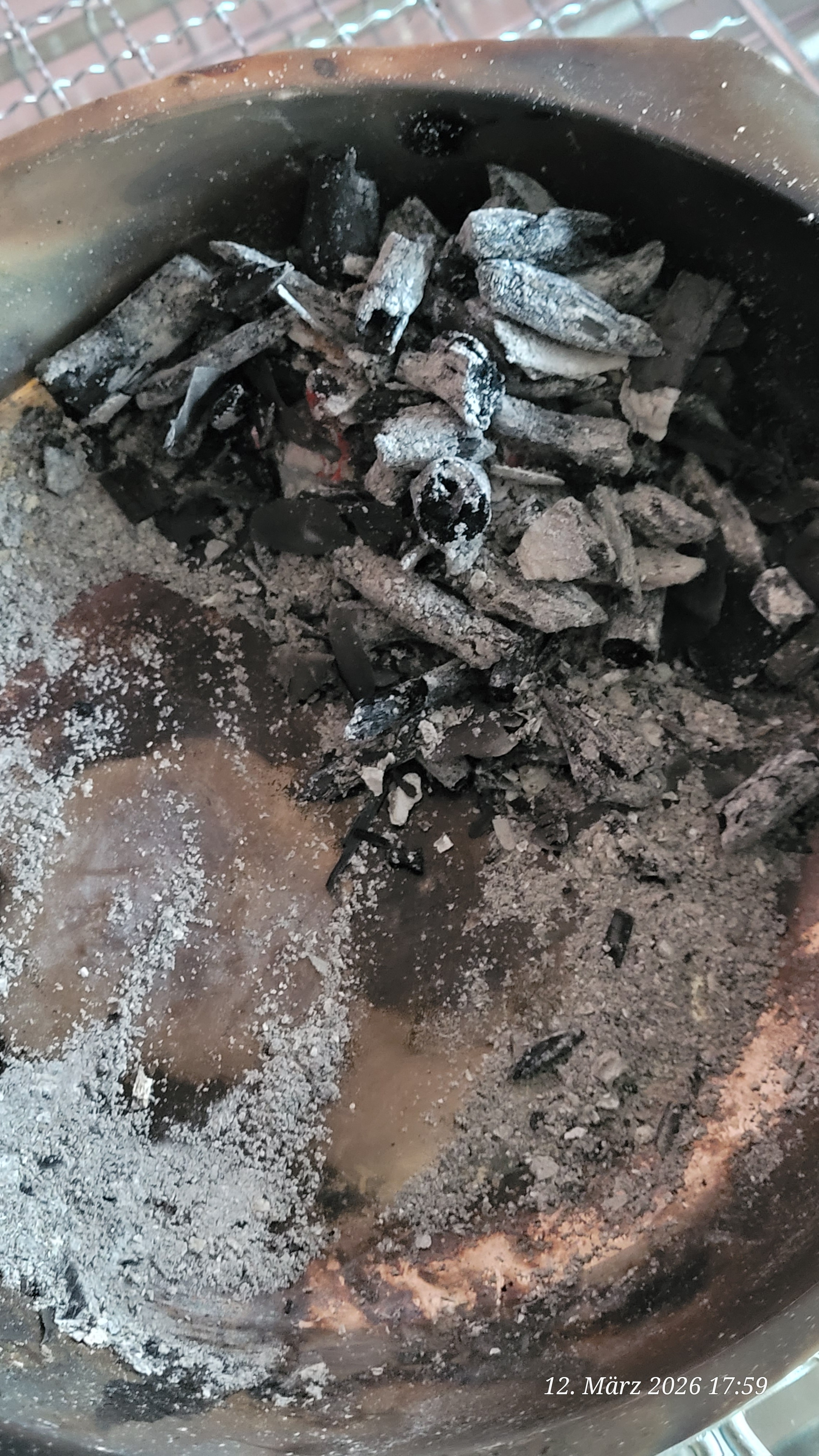 The ash is now also cooling down. Some untreated wood burned with my grandson.