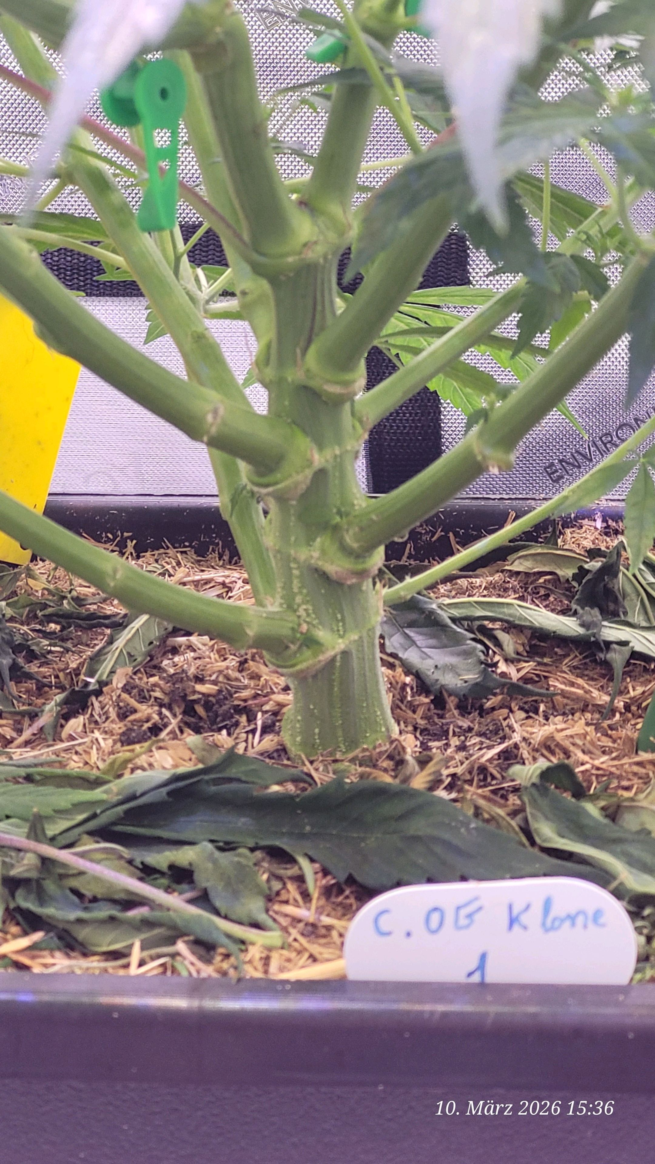 To avoid stressing the ladies too much, I removed only a very few leaves from each. Air movement is already good around them. And with the Cookies OG, I only removed dead leaves that almost fell off just by touching them. In the end, minor deficiencies are the result of high light intensity in living soil, which is typical. But as long as the ladies themselves are healthy and give me plenty, everything is fine in the end. In the future, I must remember to add 1gr of Magnesium Sulphate per liter of water in the 6th flowering week to perform even better with 80% light. I probably won’t dispose of the soil from all three pots after the harvest. Because the soil is still very active. But I’ll add plenty of new worm castings and coco, then fertilize freshly and store moist for a few weeks. Mmmh, actually, I also took new pictures of Cookies OG Clones 1 and 2. This development is amazing. Cool. They have reached flowering day 8 in the second flowering week today.