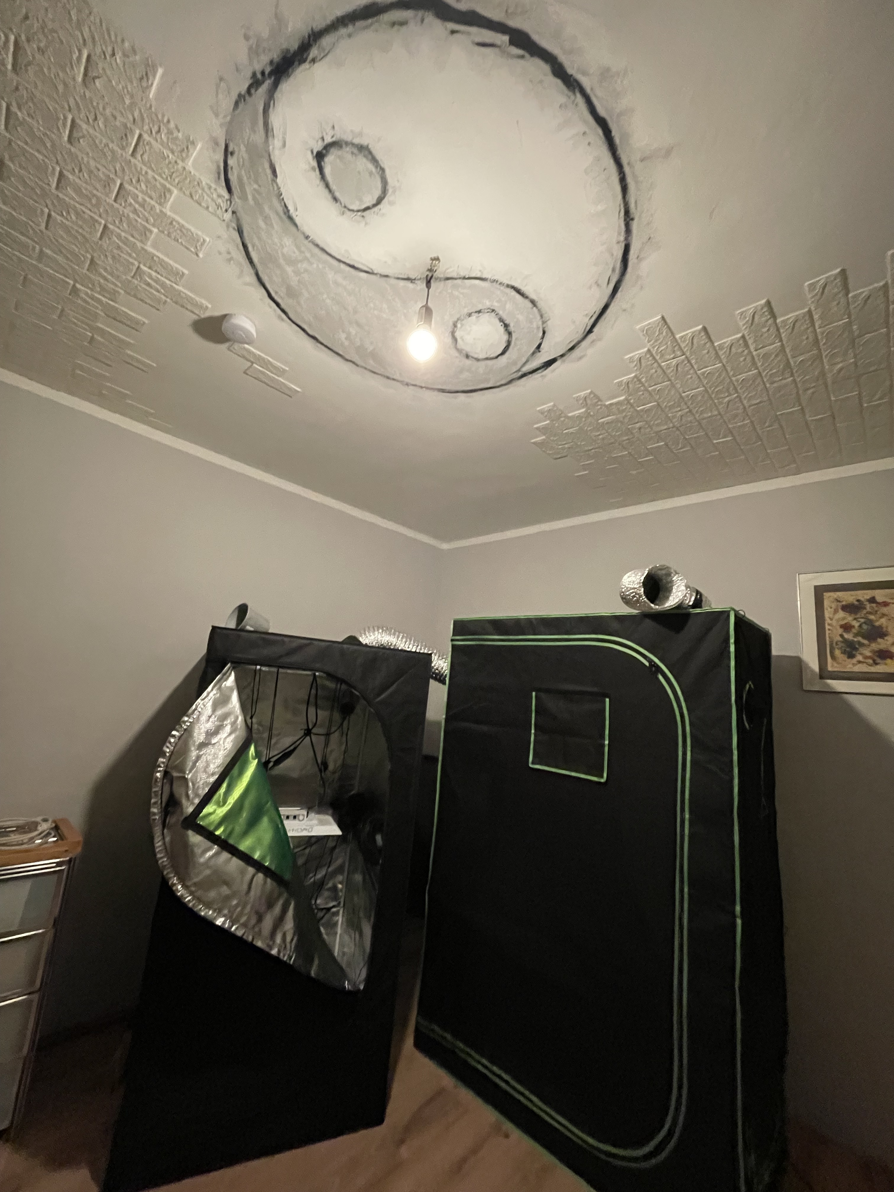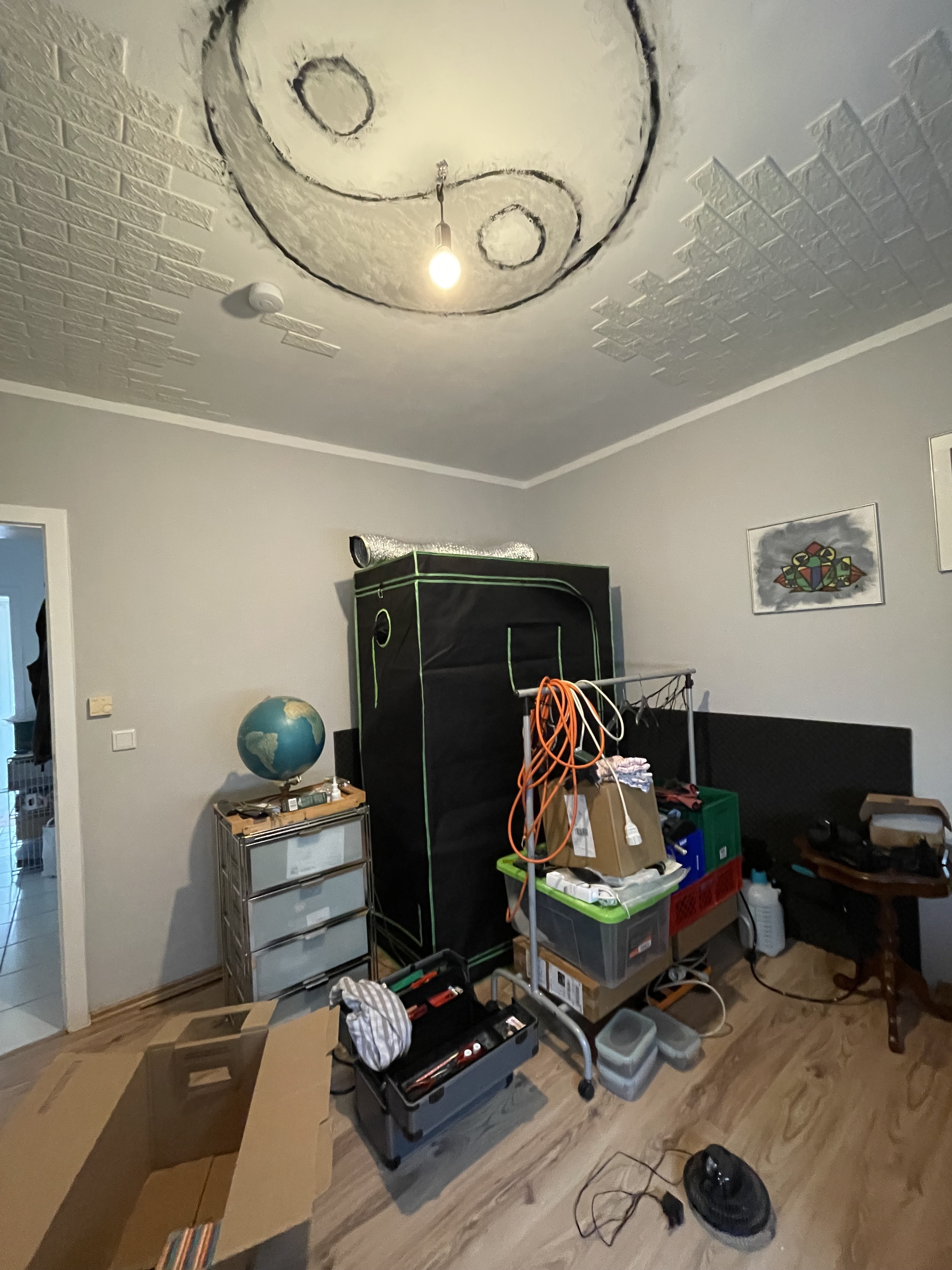 Chaos in the background, still being sorted out.. but everything is running again and the ventilation was connected to the tent with the fan.