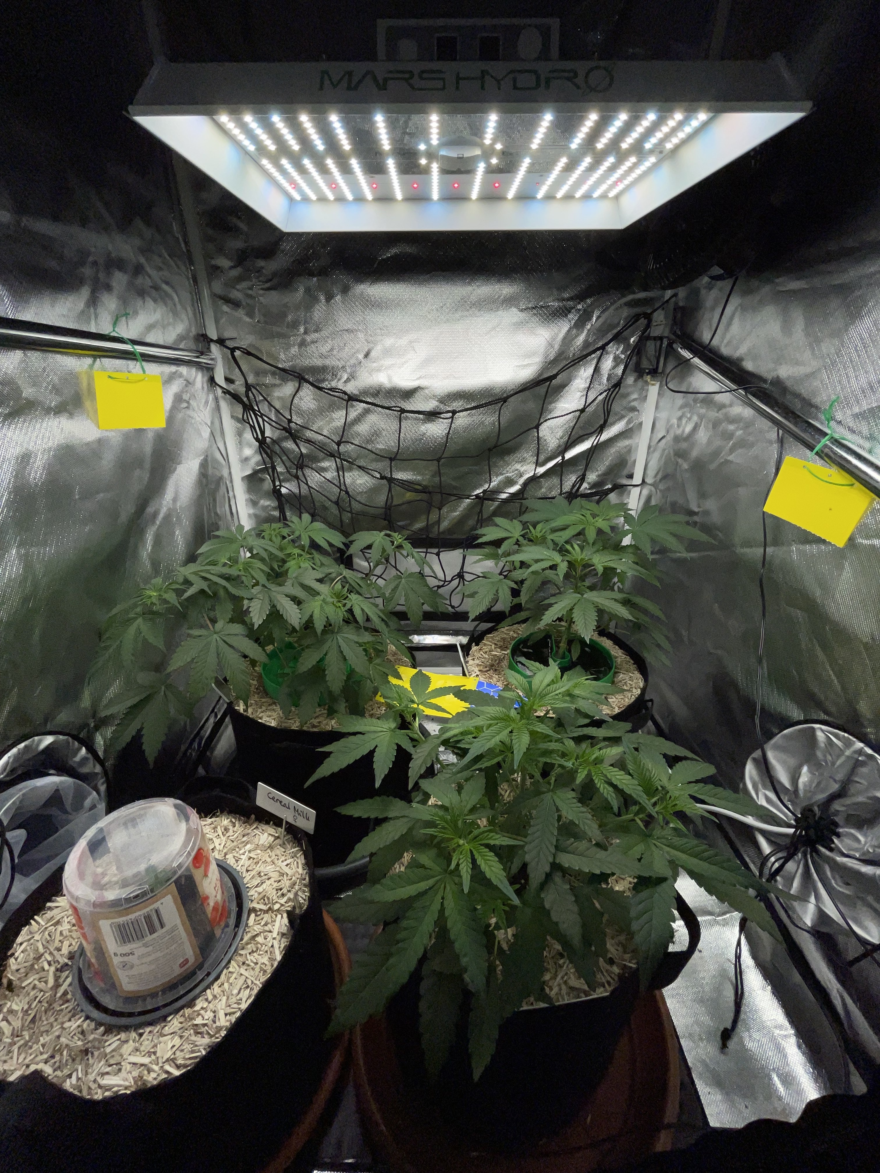 Here’s the smaller tent. The front two will soon move out, the back ones will move more to the center, and then it’s slowly heading towards the start of flowering. Maybe top all the shoots one more time. Let’s see ![]()