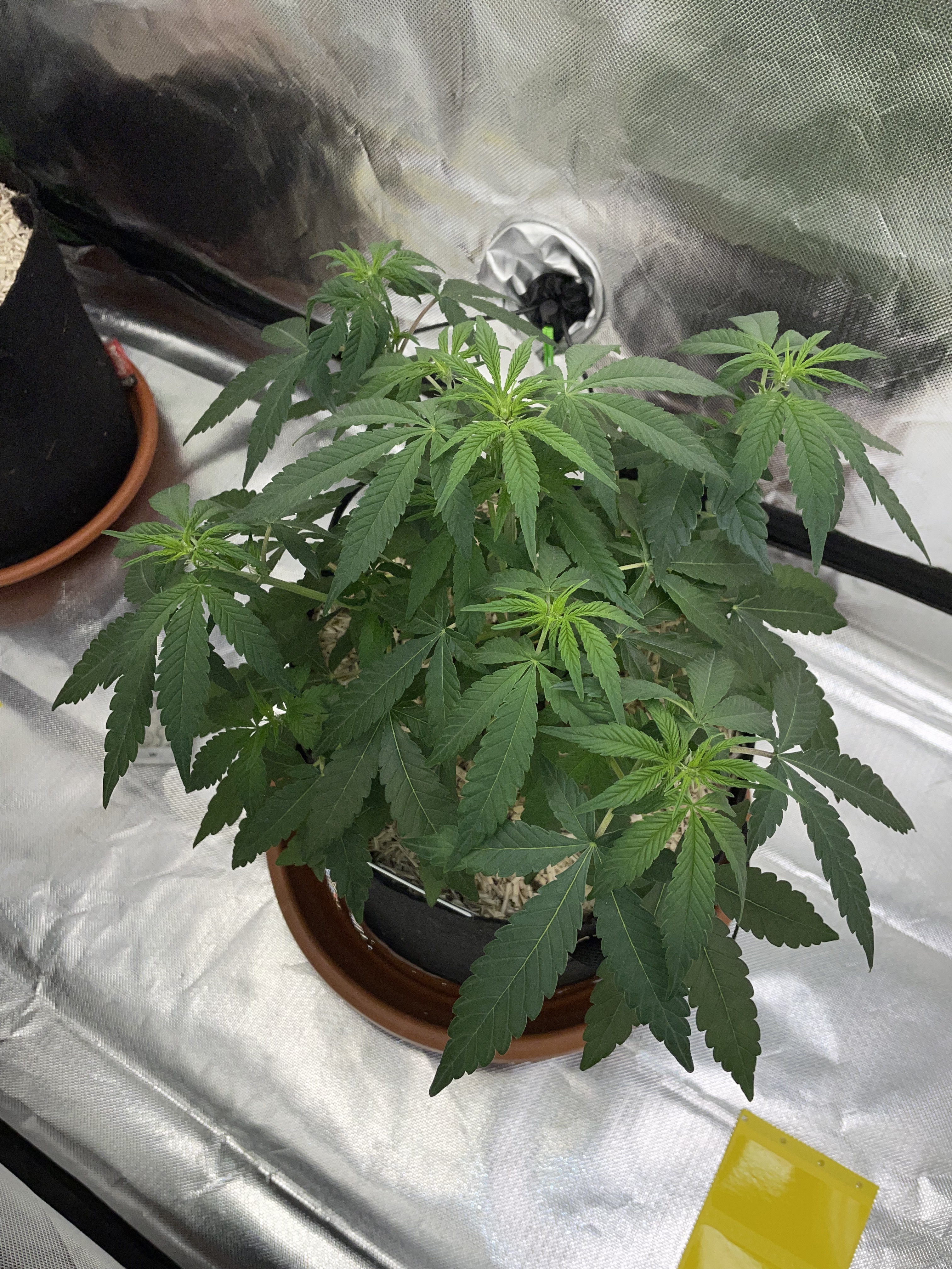 Here too, many new pistils are still coming, and with them many calyxes, which in turn will still thicken. A lot of girth will still be added, also quite a bit of resin which you can already see extending to the sugar leaves. Maybe I’ll even use a plant yo-yo so the lady doesn’t start to bend over.