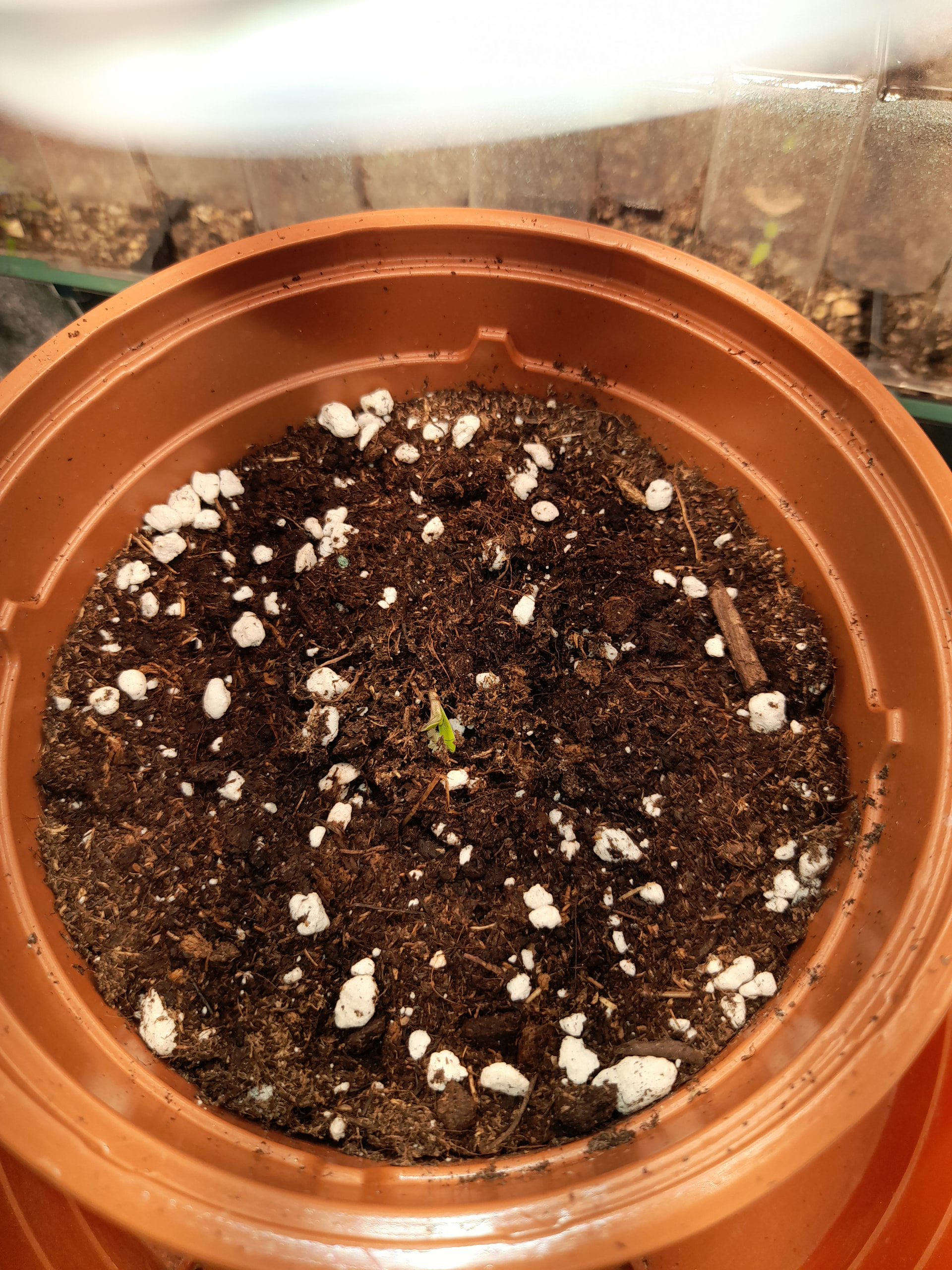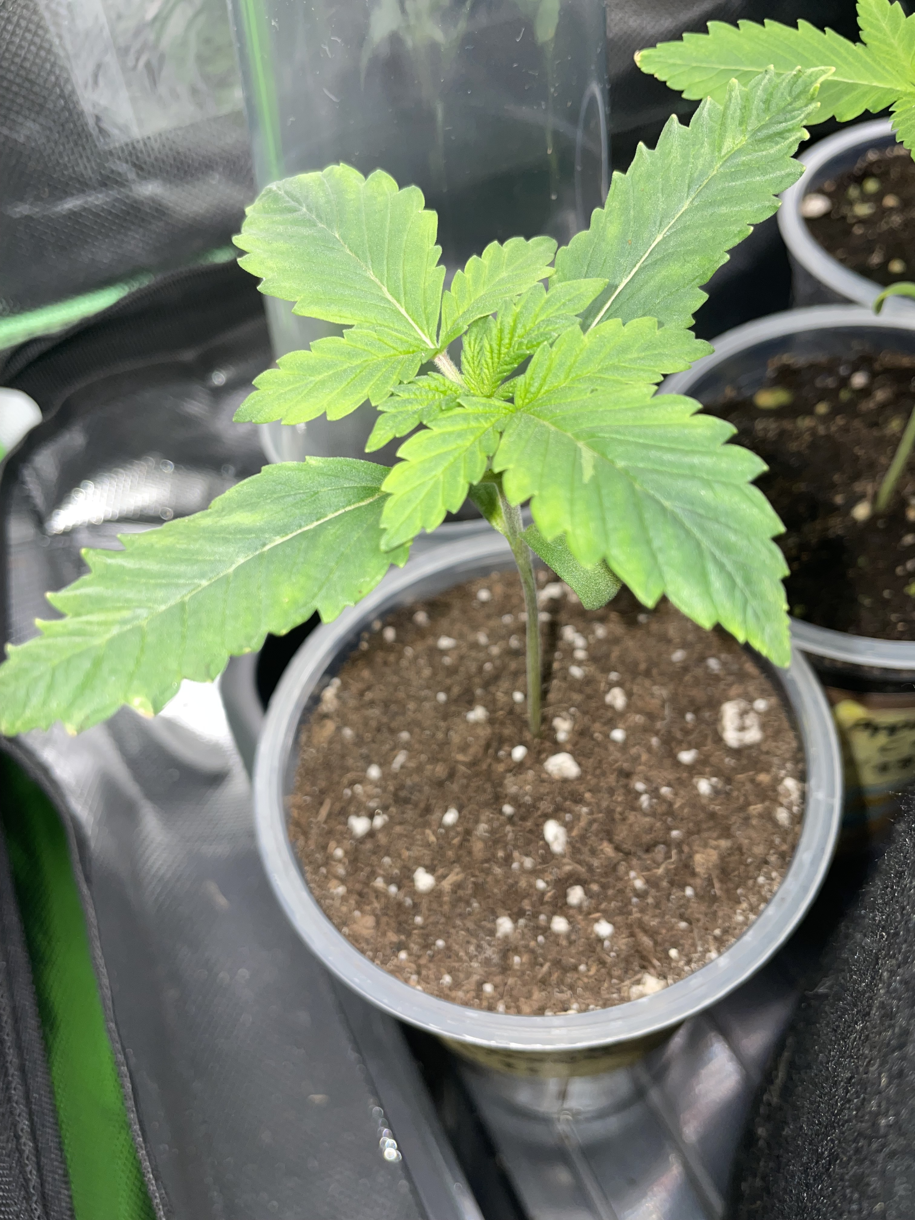 the Black Forest Lab is in the cabinet. The fertilizer assortment is stored in the compartment below. And this beauty is currently germinating in the tent. Like last time in the ice cube tray it proved itself last time. In the background, the parsley is still growing. Until the little one is ready for a bigger pot, the parsley will go into the garden in the recycled Grow earth.I’m already looking forward to your upcoming Cereal Milk harvest, that’s still a strain I’d like to try sometime.