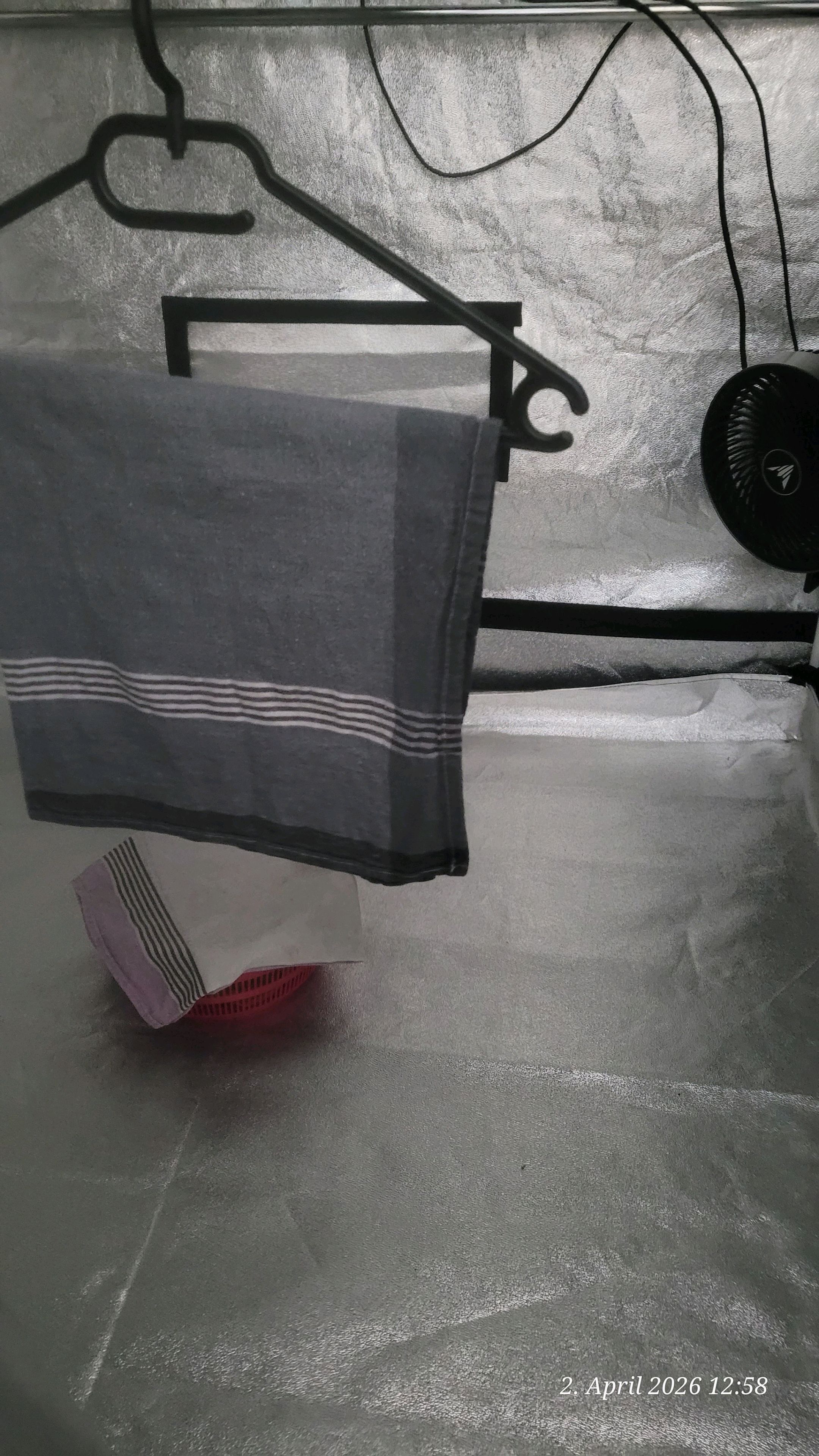 The fan on level 1 provides gentle air movement down below, and the exhaust fan runs on level 1 at over 60% humidity. This way, it only ramps up from time to time.