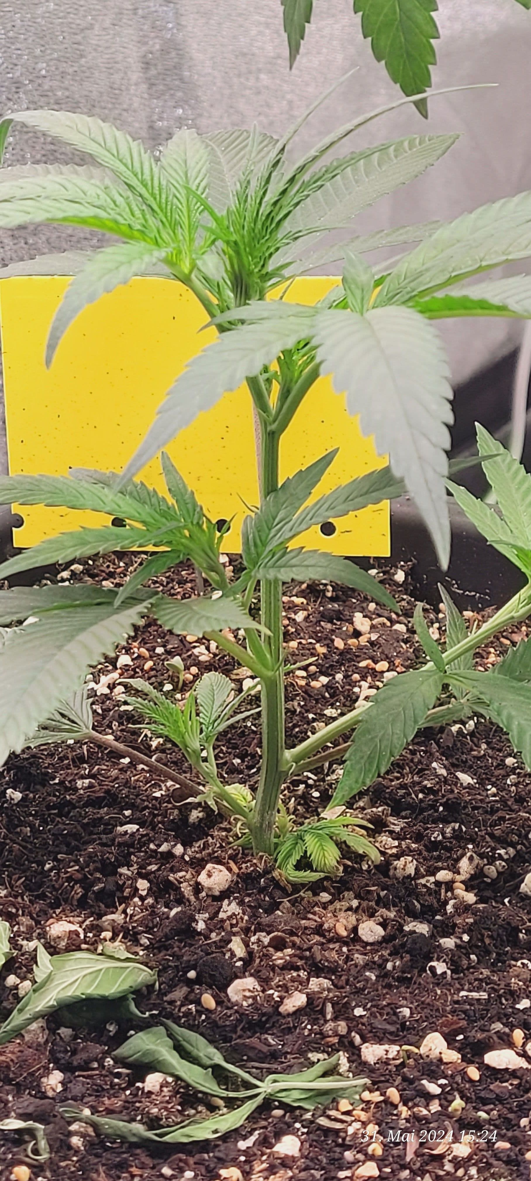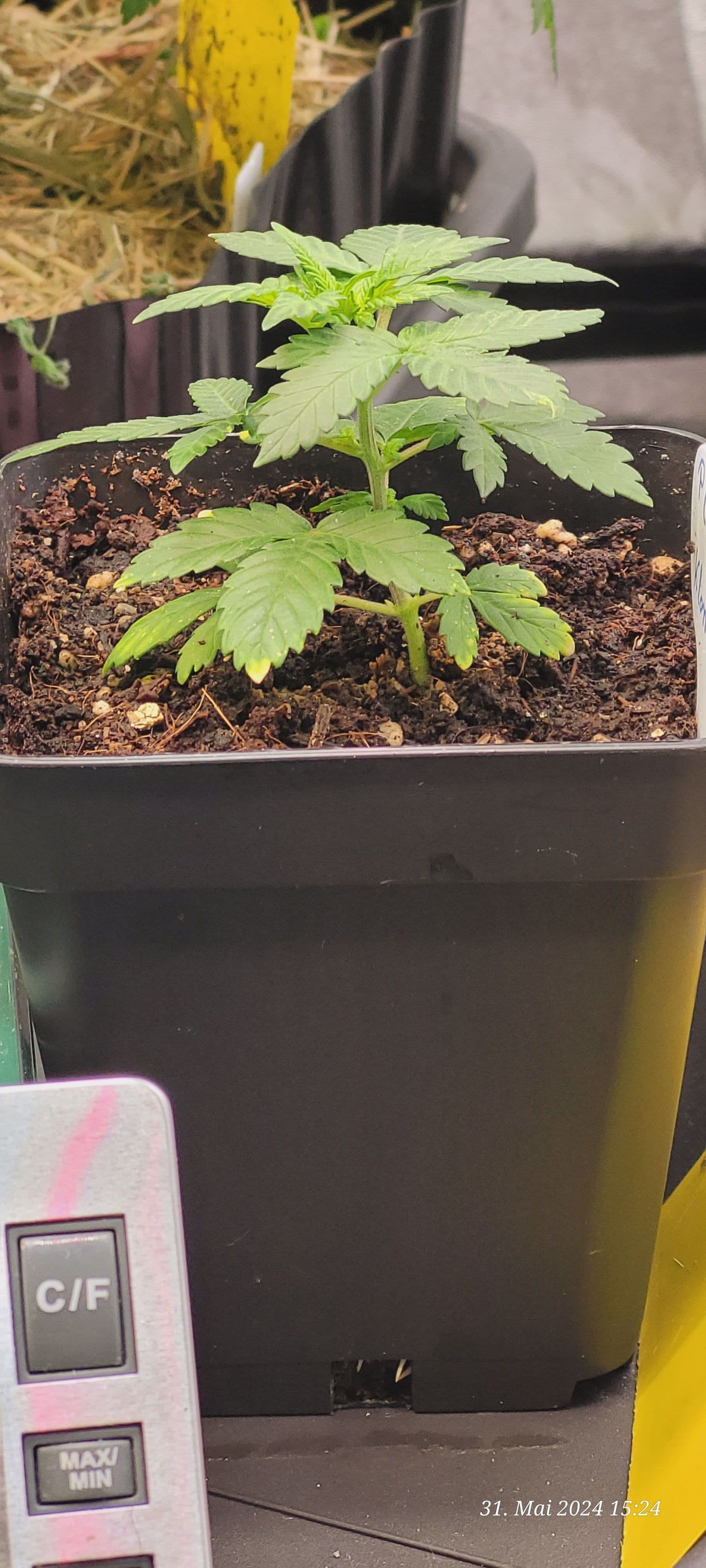 … und diese da wird sobald die Erde im Töpfchen getrocknet ist in den größeren Topf einwandern . Da es aber nicht mehr fern , die Blüte ein zu Leiten wird der Klon dann irgend wann im Juni auf den Balkon kommen . Das wird dann der erste Outdoor !