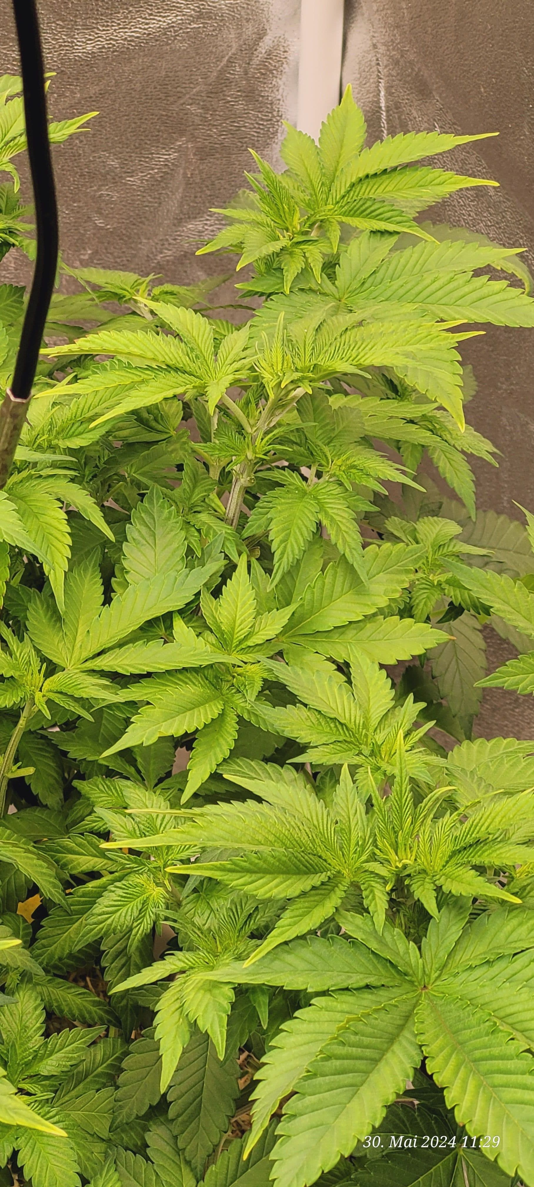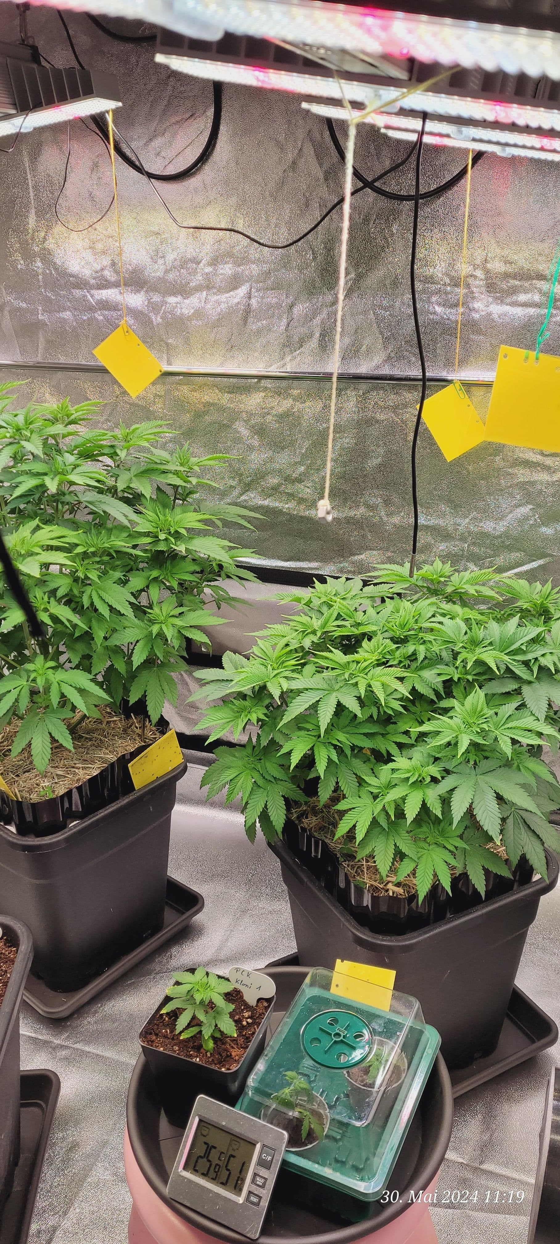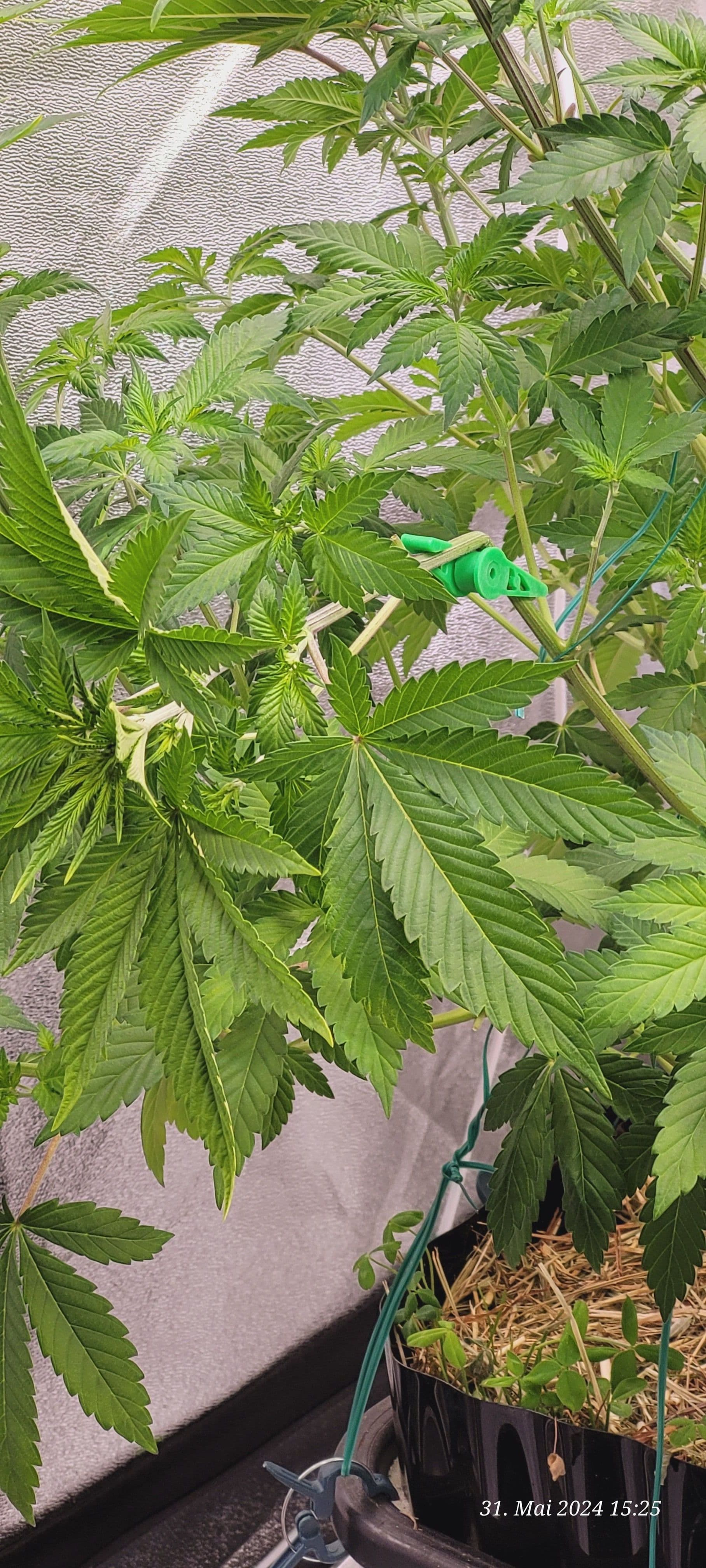 Heute noch mal etwas im Grow geschafft u die Cookie 1 etwas runter gebunden und noch mal die Pflanzen Clips nach justiert u einen weiteren rein gesetzt . Dann beide Cookie Entlaubt . Wächst wie Unkraut aber durch das aus einander ziehen kommt überall gut Licht hin .