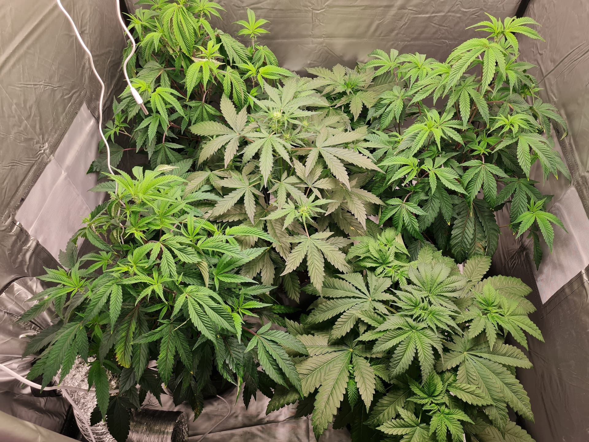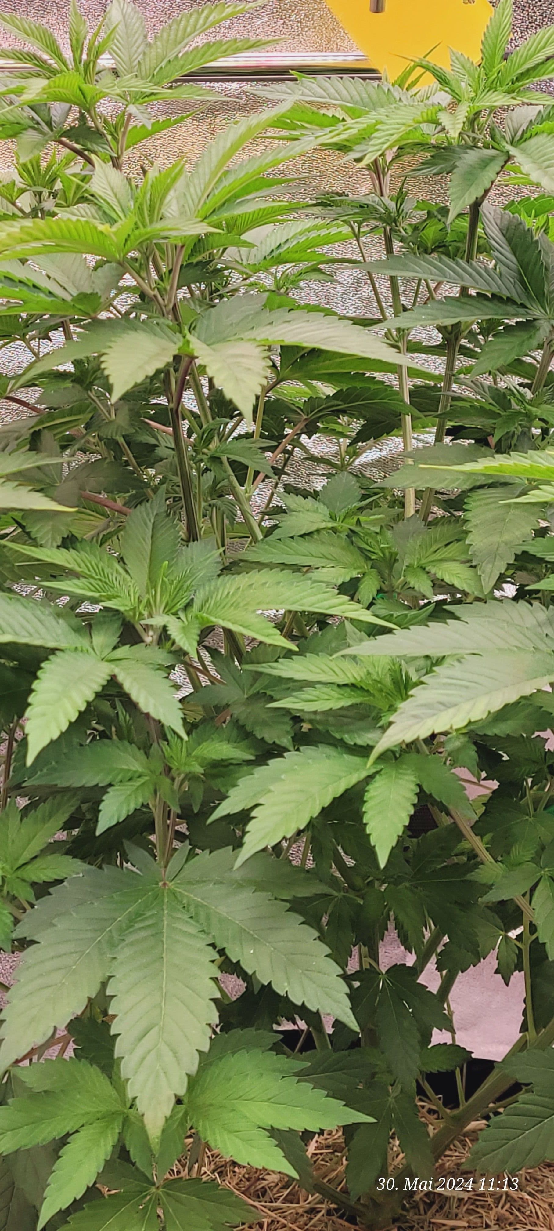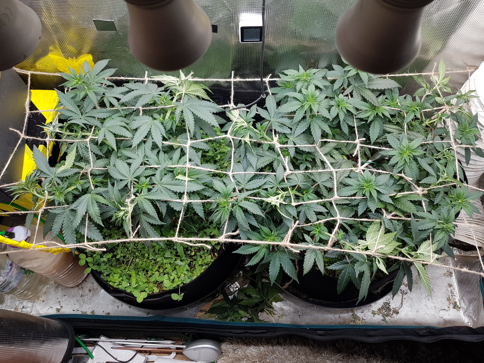 Heute noch mal etwas im Grow geschafft u die Cookie 1 etwas runter gebunden und noch mal die Pflanzen Clips nach justiert u einen weiteren rein gesetzt . Dann beide Cookie Entlaubt . Wächst wie Unkraut aber durch das aus einander ziehen kommt überall gut Licht hin .
