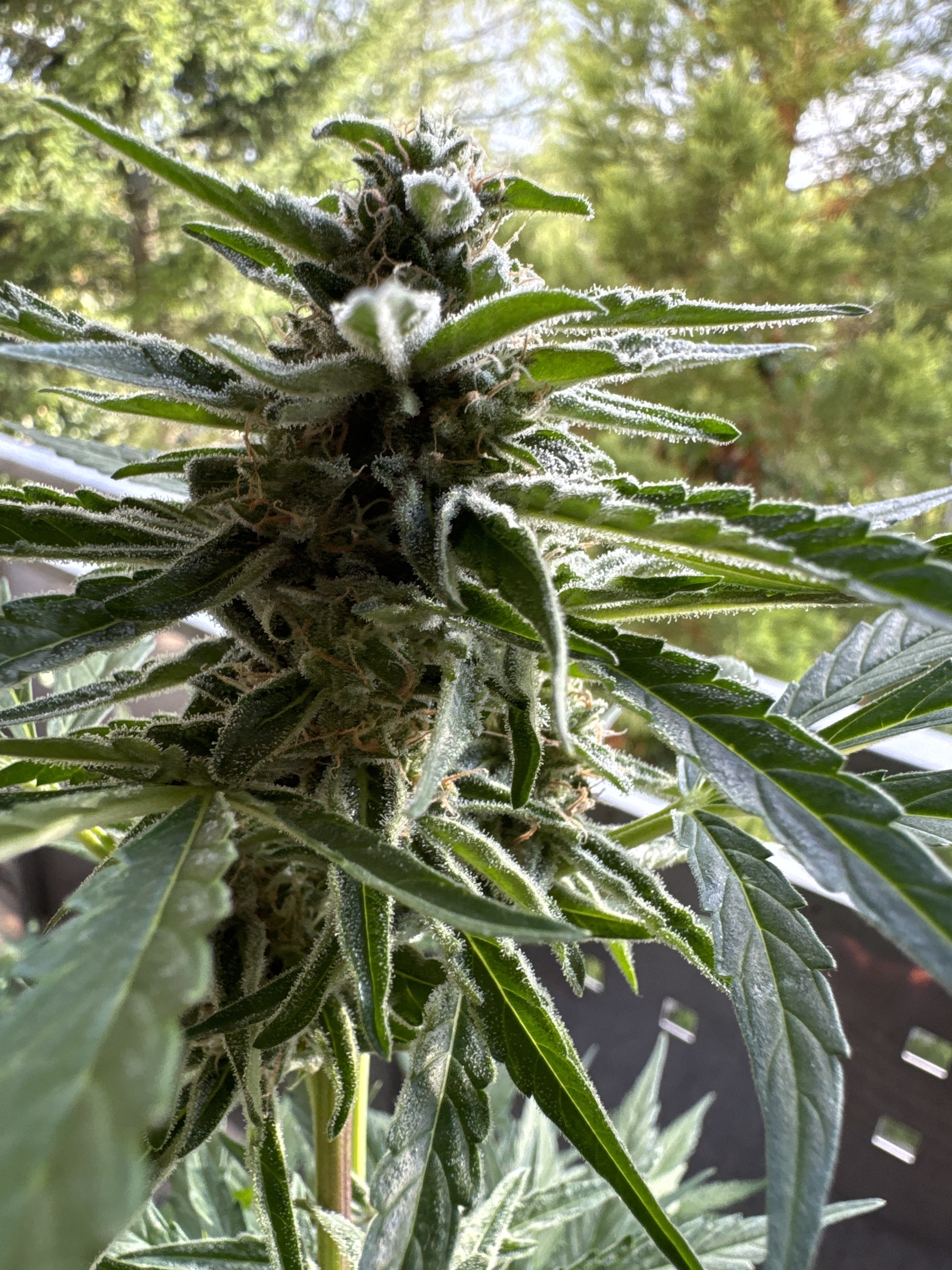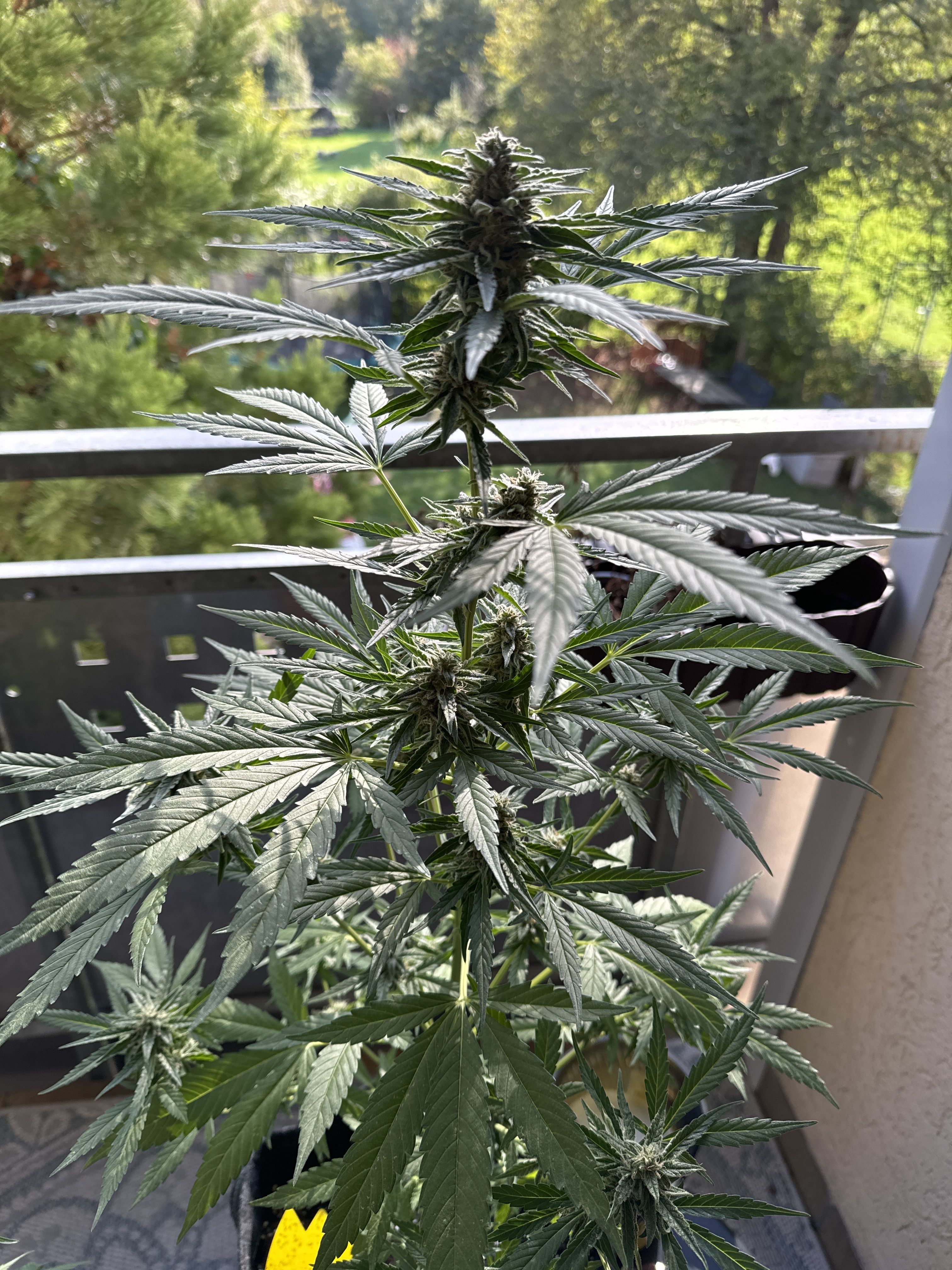 Ach ja, was ich noch erwähnen möchte. Ich habe noch eine F1 auf dem Balkon. Sie befindet sich nun in der letzten Blüte Woche. Die letzten Tage waren echt extrem mit Regen und Luftfeuchtigkeit. Bisher habe ich noch keinen Schimmel entdeckt.