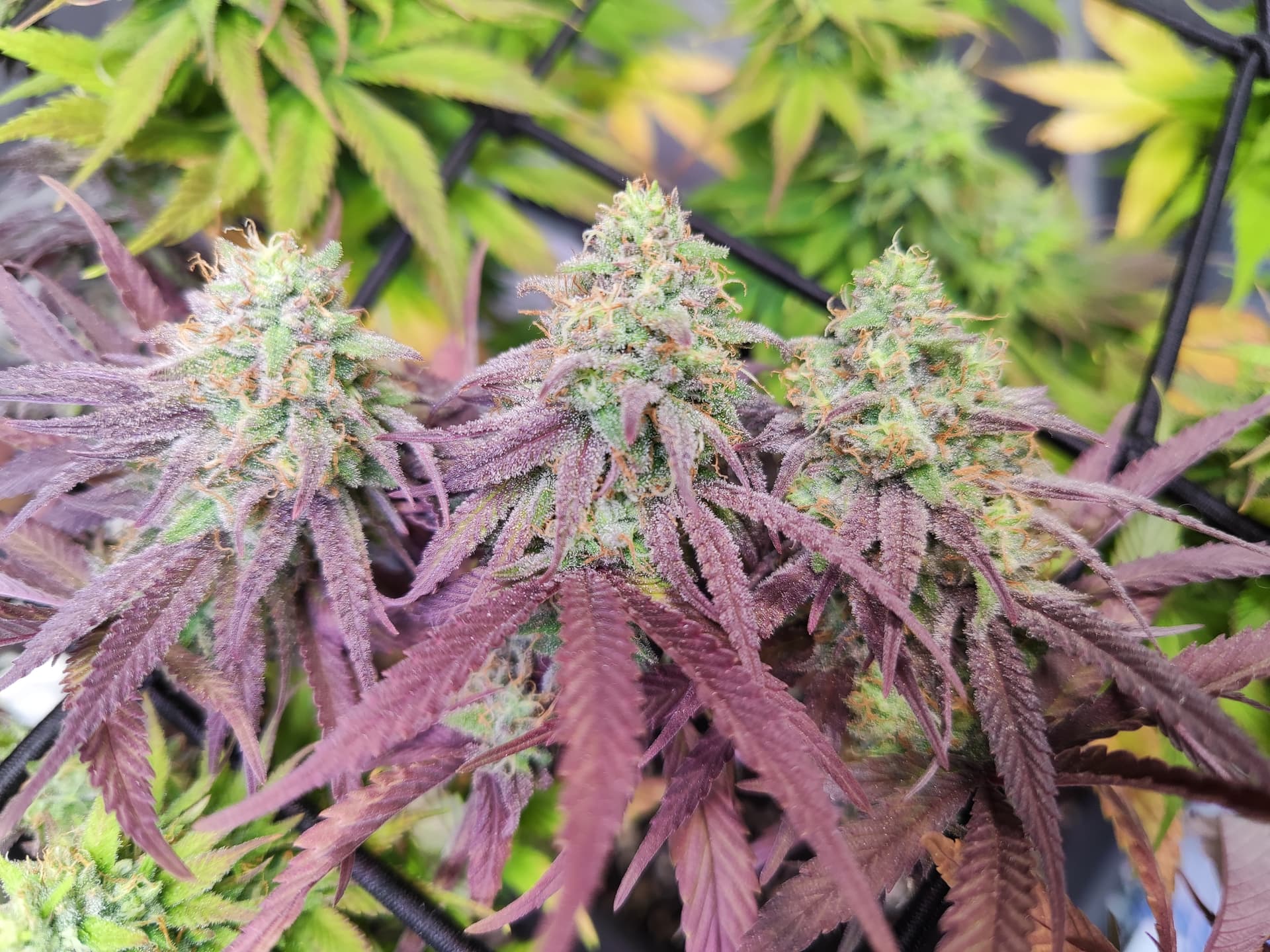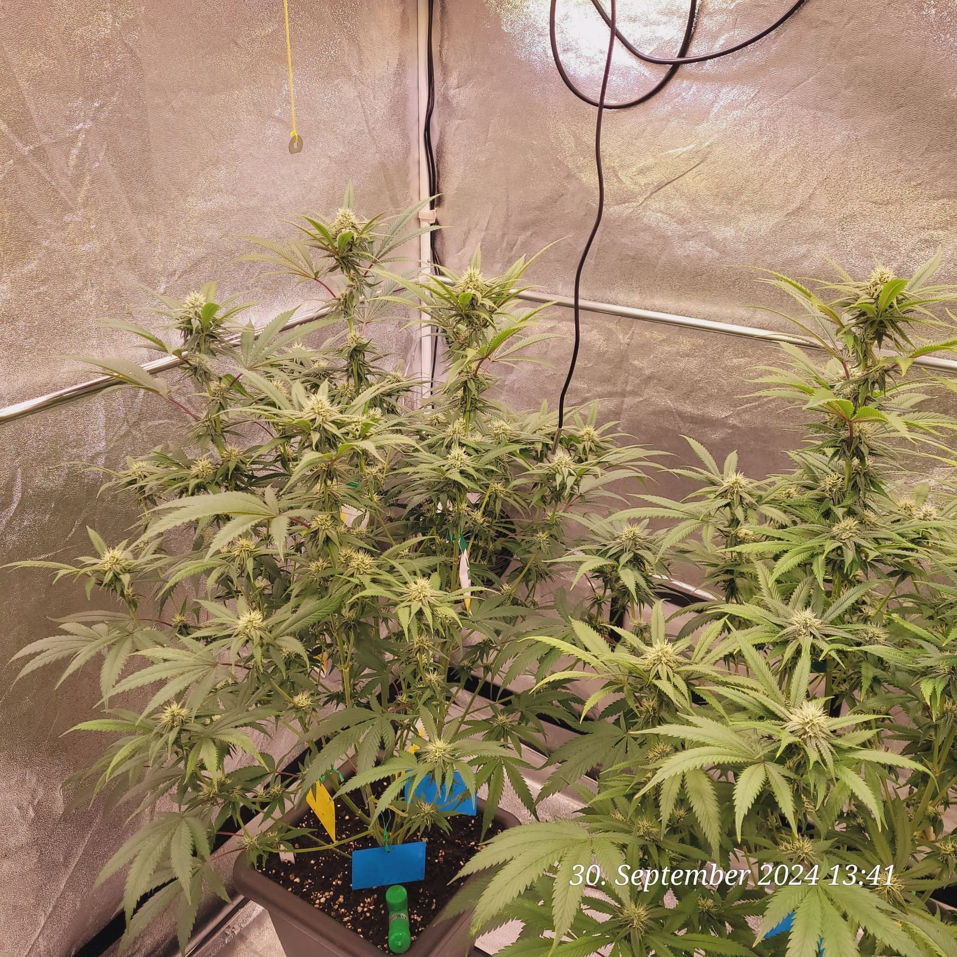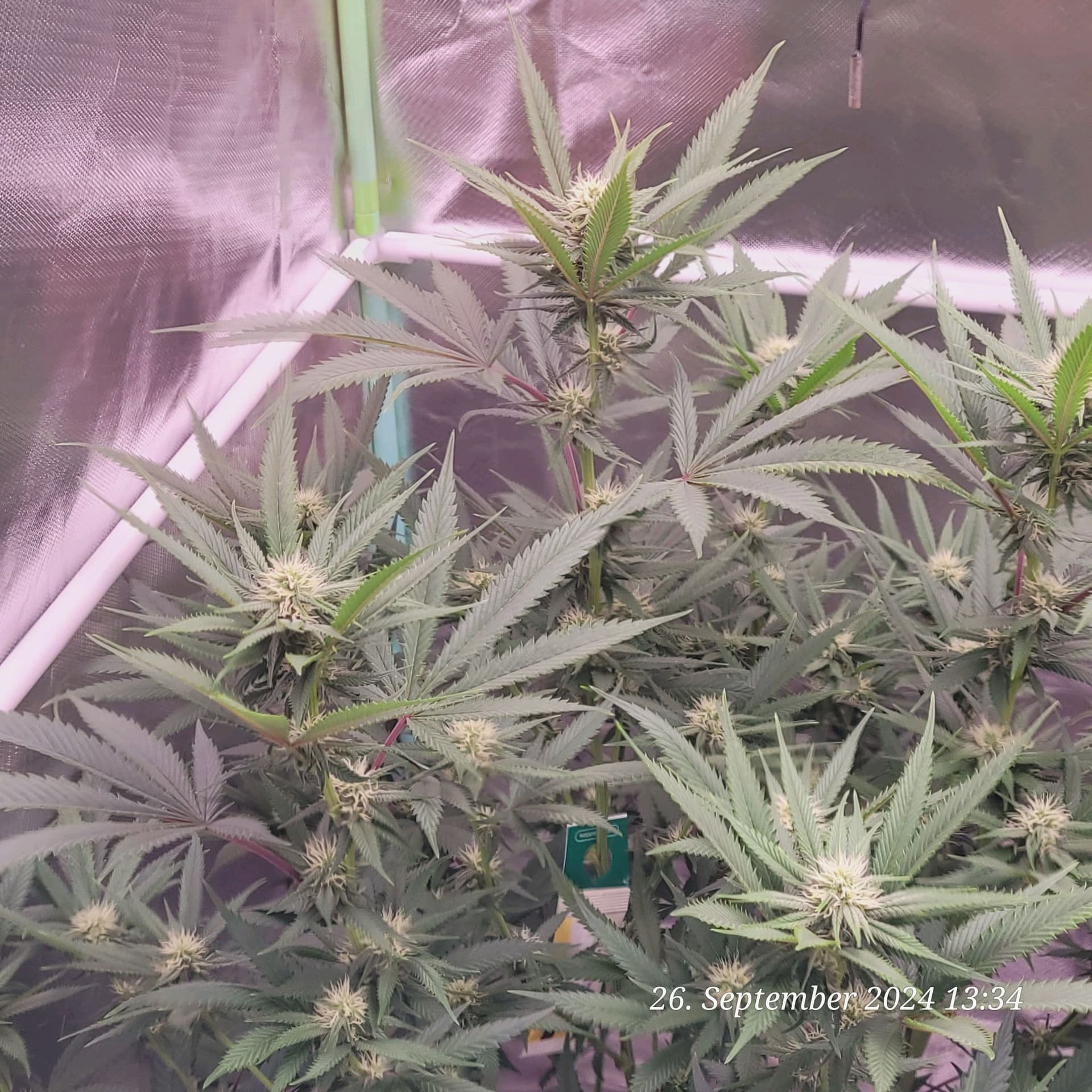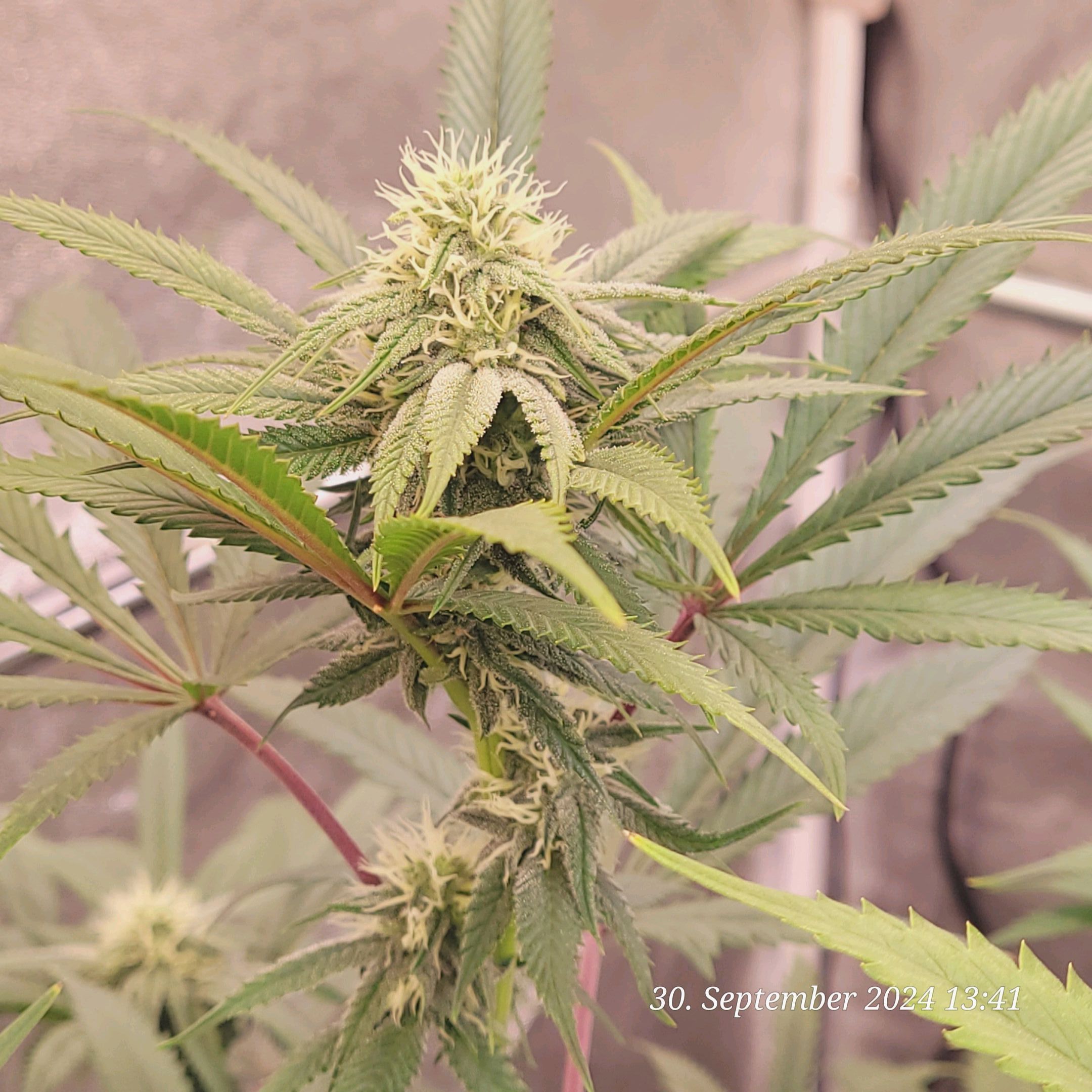 Lava Cake Klon 1 und 2 durch das Folien Fenster geknipst . Blüte Tag 21 am 26.9.24 .