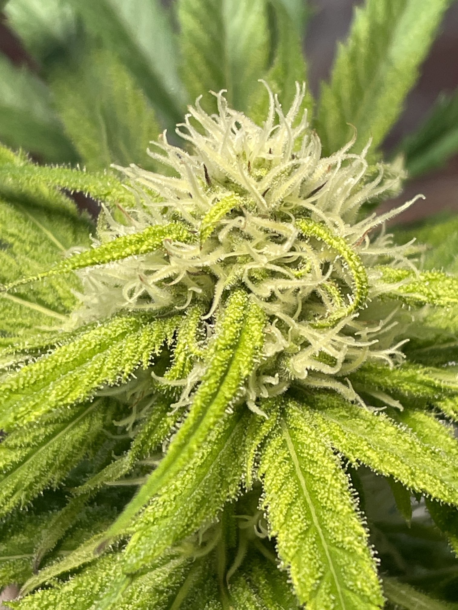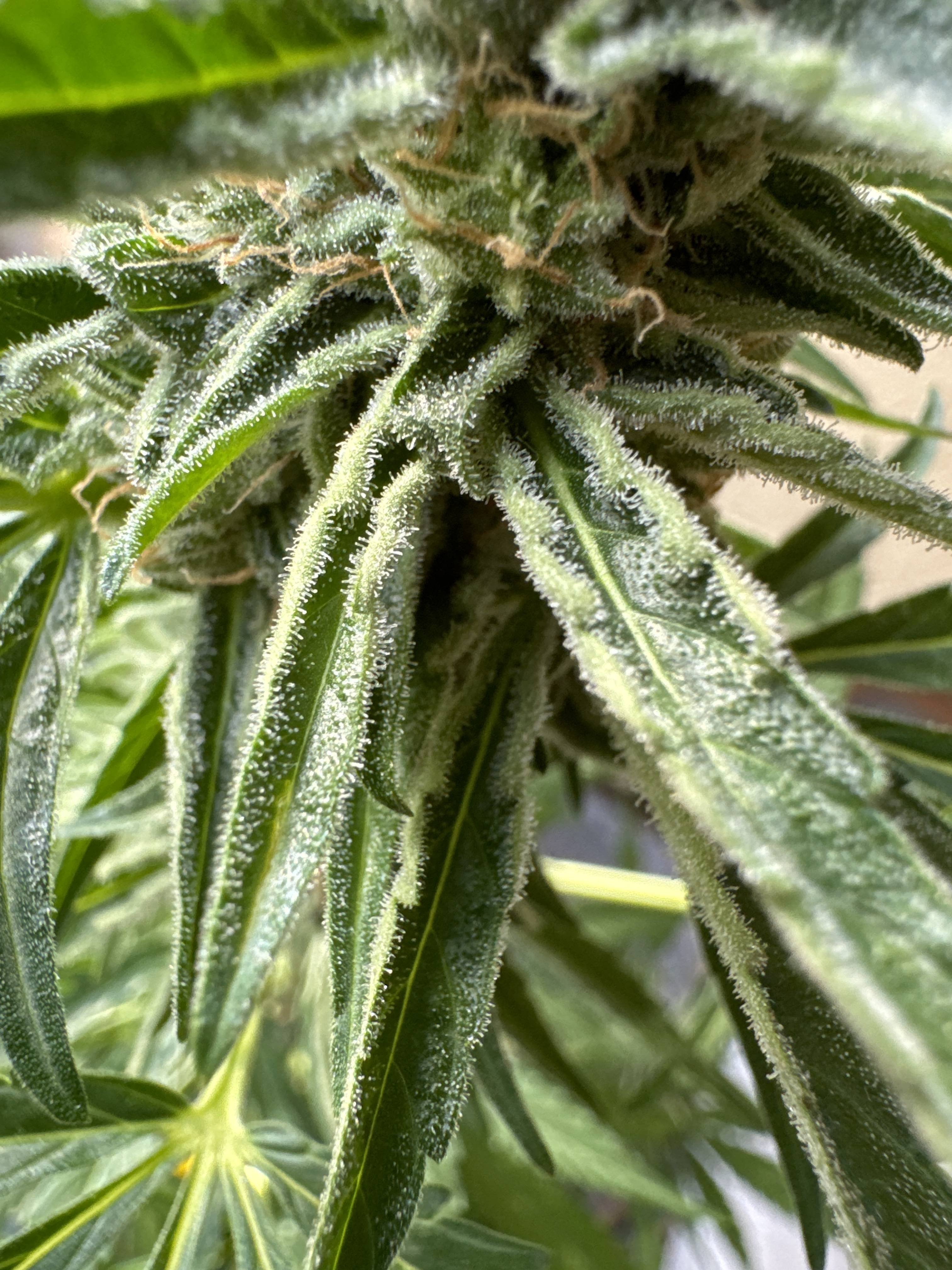 Hab mich Gestern schon ehrlich etwas gewundert was die Klon 4 in der 5ten Blüte Woche noch so schwach angehaucht mit Trichome war . Ich weiß es jetzt . Da kommt nicht mehr weil Samen im Gepäck die ich nicht will . Nicht von dem Strain .